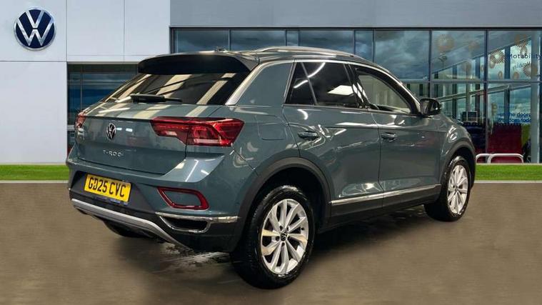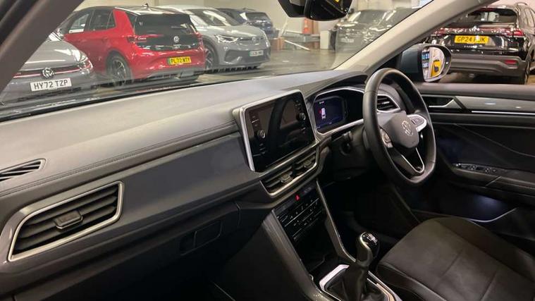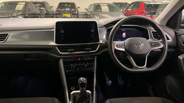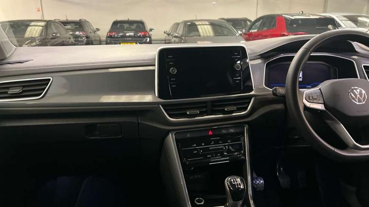 10.25" Digital cockpit pro, Advanced driver attention and drowsiness monitor, Emergency call service, Lane keeping system Lane Assist, Mobile phone interface, Modified key software - reduce switch off time for key status change to Long no motion, Online services, Park assist including front and rear parking sensors, Power assisted speed sensitive steering, Service interval indicator, Tailgate/trunk lid release from outside, Think blue trainer driver tips and journey analysis, Warning sound and light for front seatbelts unfastened, Wireless app connect, Battery regeneration during braking, Start/stop function with battery regeneration, DAB Digital radio, Diversity antenna for FM reception, Front and rear 6 speakers, Music playback - MP3, WMA and AAC files, Premium USB cable in choice of either Apple or Android smartphone compatibility, SD card slot, Simultaneous pairing of 2 compatible mobile devices, Title and cover art display, We Connect and We Connect Plus functionality, Auto dimming interior rear view mirror, Automatic hazard lights activation under emergency braking, Automatic headlight control with LED separate daytime running lights with coming/leaving home function, Body colour sports bumpers with silver metallic underbody fascia, Body coloured exterior mirror housings and door handles, Dynamic headlight range control with self adjusting whilst driving, Electrically adjustable and heated door mirrors, Extended roof spoiler, Exterior mirrors aspherical on driver side, convex on front passenger side, External USB type C socket and charging sockets, Front windscreen wiper with intermittent wipe and 4 position delay, Heated rear window, LED 3rd brake light, LED rear combination lamps, LED rear number plate lights, Light mode for poor weather, rain, fog or snow, Power windows with comfort operation and circuit breaker, Privacy glass for rear side windows and rear window, Rain sensor, Rear exhaust tailpipe, Rear fog light on one side and reversing lights on both sides, Rear side wing doors, Rear wash/wipe with intermittent wipe setting, Remote electrically foldable door mirrors, puddle lights and reverse activated passenger's door mirror, 12V power socket in centre console, 3 rear head restraints, 3 seat bench in 2nd row, 4 load lashing points in luggage compartment, Air care climatronic air conditoning system with active combination filter and 2-zone temperature control, Chrome plated radiator grille inserts, air vent surrounds and light switch surrounds, Door and side trim panel with leatherette insert, Drawer under drivers seat, Front + rear carpet mats, Front centre armrest, Front comfort sports seats, Front cupholders x 2, Front footwell illumination, Front seat back storage pockets, Glove compartment door with light, Instrument lighting, white adjustable panel illumination, Interior ambient lighting and surround lighting, Interior light delay, Isofix child seat preparation, Leather gearshift handle, LED interior light with switch off delay/dimmer and 2 front/rear LED reading lights, Load-through provision with cup holder when folded down ('Unsplit rear seat bench, split folding backrest, with centre armrest), Luggage compartment lighting, Non-folding front passenger seat backrest, Single front passenger seat, Storage compartment in left and right luggage area, Storage compartment in rear doors, Storage compartments in driver and front passenger doors, Sunvisors with illuminated vanity mirrors, Variable boot floor, height adjustable and removable, Driver assistance pack without proactive passenger protection - T-Roc, 3 point height adj front seatbelts + pretensioners, 3 point seatbelts in outer rear with ECE label, ABS, Child locks on rear doors, City emergency braking and pedestrian monitoring, Driver and front passenger airbag with front passenger airbag deactivation, Driver and front passenger safety-optimised head restraints, Drivers seatbelt reminder, Electronic parking brake, Electronic Stability Control (ESC) inc EDL (Electronic Differential Lock) and ASR (Traction Control), Front and rear passengers curtain airbag system including front side airbags, Predictive pedestrian protection, Rear disc brakes, Two tone horn, Tyre pressure loss indicator, Volkswagen roadside assistance, Deep iron grey decorative inserts in dashboard, centre console and front door trim panels, Trims for alloy wheels,