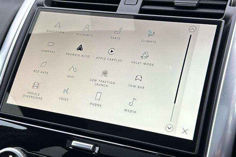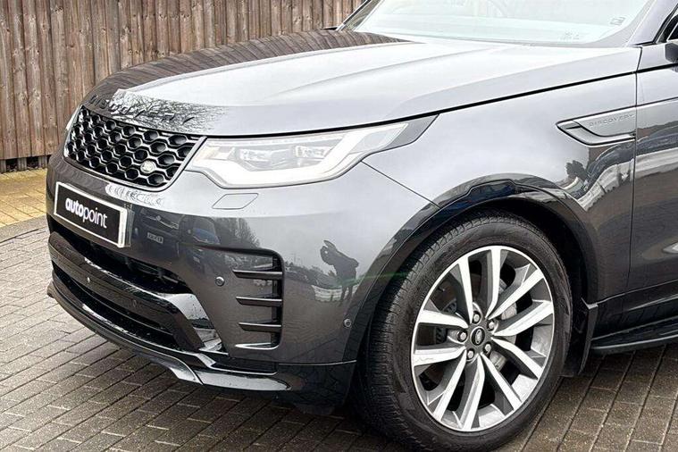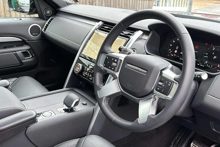 11.4" touchscreen, 3D surround camera, Adaptive cruise control, Android Auto, Apple car play, Blind spot assist, Driver condition monitor, Electric power assisted steering (EPAS), Emergency services call system, Front and rear parking aid, Interactive driver display, Lane keep assist, Power inner tailgate, Power tailgate/boot lid, Push button start, Rear collision monitor, Rear traffic monitor, Remote, Remote boot release, Service interval indicator, Speed proportional steering, Sportshift selector, Stop/start system, Traffic sign recognition with adaptive speed limiter, Trip computer, Wade Sensing, Adaptive dynamics, Dynamic stability control, Electronic air suspension, Front axle open differential, Digital Audio Broadcast radio-DAB, Dynamic volume control, Pivi pro connected, USB/aux input socket, Acoustic laminated windscreen, Animated directional indicators, Auto dimming interior rear view mirror, Auto high beam assist, Automatic headlight levelling, Automatic headlights, Body colour bumpers, Body colour door handles, Centre high mounted stop light, D300 badge, Electric heated/power fold memory door mirrors with approach lights and auto dimming driver side, Electric windows with one touch open/close and anti-trap, Heated rear window, Heated windscreen, LED darkend tail lights, LED headlights with signature DRL, Narvik black Discovery script, Privacy glass, Puddle lights, Rain sensing windscreen wipers, Rear fog lights, Rear side wing doors, Rear wash/wipe, Trailer stability assist, Variable intermittent wiper, 12V power sockets, 12V USB charging socket in loadspace, 18 way heated electric memory driver seats with captains armrest + manual height adjust headrest + 4way power lumbar support, 2 seat bench in 3rd row, 3 seat bench in 2nd row, Central hinged twin lidded storage, Ebony morzine headlining, Electric adjustable steering column, First and second row door bins, Footwell lights, Front and rear 12V with front USB, Front passenger seat isofix location point, In-facia storage, Isofix child seat preparation for front passenger seat, Loadspace cover, Loadspace Hook, Loadspace light, Lockable glovebox, Lower centre console storage, Luggage tie downs in loadspace, Multi function steering wheel, Overhead lighting console, Premium carpet mats, Premium non-leather steering wheel, Rear ISOFIX, Shopping bag hook, Single front passenger seat, Storage glovebox, Sunvisors with illuminated vanity mirrors, Third row storage, Treadplates with metal inserts, Twin front cupholders with cover, USB with 12V socket in centre console, Black exterior pack - Discovery Dynamic SE/HSE, Online pack with data plan - Discovery, 3x3 point rear seatbelts, Anti-lock braking system (ABS), Brake pre-fill technology, Cornering brake control, Curtain airbags, Customer configurable autolock, Driver and passenger airbags, EBD - Electronic brakeforce distribution, Electronic traction control, Emergency brake assist, Emergency braking, ESP, Front side airbags, Gradient acceleration control, Hill descent control, Hill launch assist, Power operated child locks, Rear airbags, Roll stability control, Seat belt reminder, Torque vectoring brake, Tyre pressure monitoring system, Immobiliser, Intrusion sensor, Keyless entry, Locking wheel nuts, Remote central locking, All terrain tyres,
