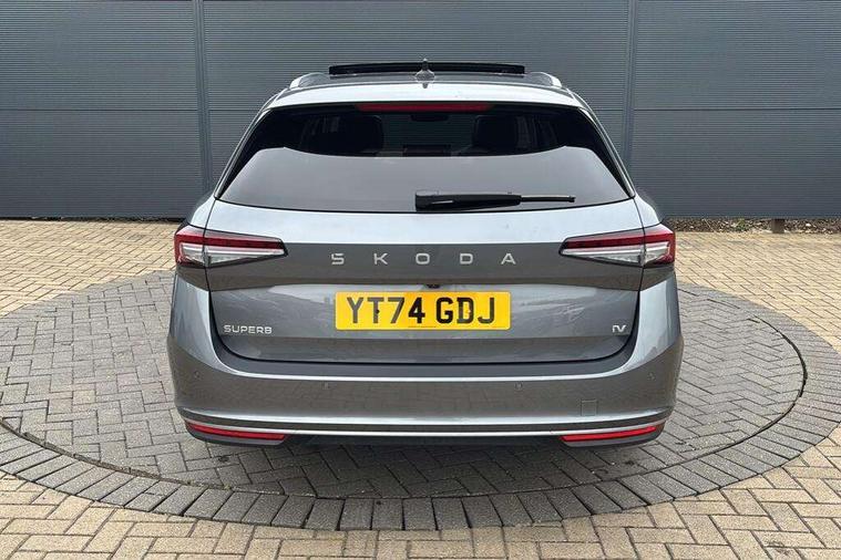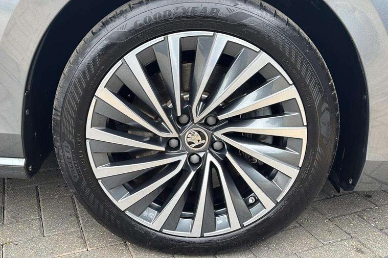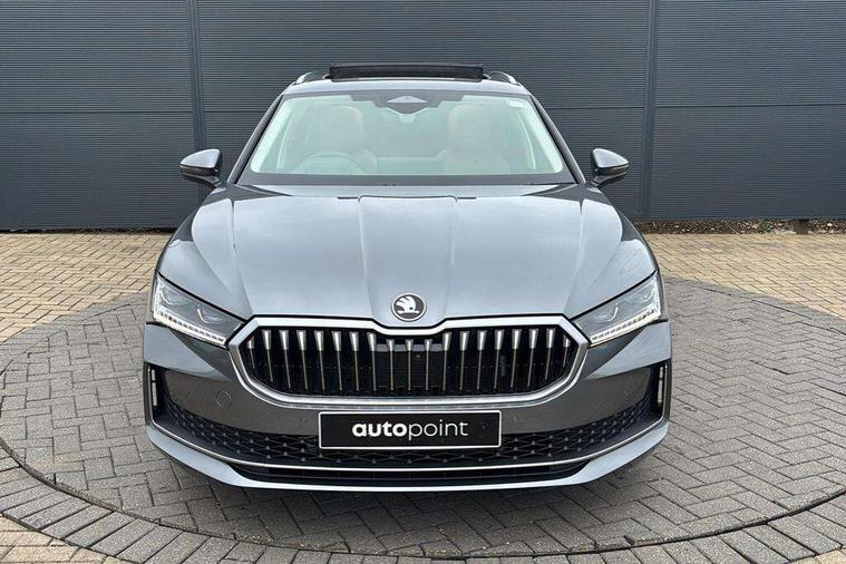 13" touchscreen display with satellite navigation, 4x USB-C ports (2x in front centre console and 2x in rear) (45W), Adaptive cruise control with speed assist, lane assist plus and traffic tram assist, Blind spot detection with door exit warning, Bluetooth system, CareConnect and Emergency Call, ChatGPT functionality, Drive mode selection, Driver fatigue sensor, Electrically operated boot with virtual pedal, Front assist with extended predictive pedestrian protection, Front cross traffic assist, PAS, Quick start all heating software functionality, Rear view camera with washer, Stop/start engine system, Traffic sign recognition, Turn assist with evasive assistance, Virtual Cockpit - 10.25" digital display, Voice control system, Wireless charging for one smartphone (15W) with cooling function, Wireless smartlink apple carplay, SmartLink+ android auto, Dynamic chassis control plus with progressive dynamic steering, Canton sound system - 14+1 speaker, DAB Digital radio, Display cleaner, FM radio connection, Web radio connection, Acoustic side windows and interior noise suppression, Backdrop lighting, Body colour door handles, Body coloured door mirrors, Chrome roof rails, Chrome window surround, Dynamic range control with poor weather light and integrated fog light, Electrically adjustable, heated, folding and driver side auto-dimming door mirrors with memory function, integrated indicators and logo projection, Frameless auto-dimming rear view mirror with USB-C, Front windscreen with heat-insulating glass, Ice scraper in fuel tank cap, LED 3rd brake light, Light assist with High beam control, Light assistant (coming/leaving home/tunnel light), Privacy glass, Rear fog lights (x2), Rear roof spoiler, Rear side wing doors, Rear windscreen wiper, Tow bar preparation, Unique dark chrome grille surround with dark chrome rib elements, plus dark chrome rear diffuser strip, Windscreen wipers with rain sensor, 12V socket 1x centre console 1x boot, 12V socket and 2x cargo elements in boot, 14-way electrically adjustable, memory, front seats with 4-way pneumatic lumbar support, and extendable thigh support with smart comfort entry aid, 2 spoke heated multifunction steering wheel with DSG paddles, 3 seat bench in 2nd row, 4x foldable bag hooks in boot, 60:40 Split folding rear seats, Advanced massage function for front seats, Bottle holders in the front doors 1.5 litre bottle and rear 1.5 litre bottle, Cup holder in front with easy open mat, Front and rear footwell illumination, Front armrest with storage box, Front sports comfort seats, Heated and ventilated front seats, Height adjustable front and rear head restraints, Height adjustable front passenger seat, Illuminated glovebox, Interior lights with control switches, Isofix child seat fittings in outer rear and front passenger seats, LED front and rear reading lights, Multi colour ambient lighting, Single front passenger seat, Storage pockets on back of front seats, Sun visors with illuminated vanity mirrors, Ticket holder on A Pillar, Tri zone climate control, Umbrella in driver's door, Light and view package - Superb, Parking package - Superb, Transport package - Superb Estate, Winter package - Superb, 3 rear seatbelts, 8 Airbags - Front driver and passenger, front side driver and passenger, centre, curtain front and rear, drivers knee, Crew protect assist, Driver and passenger seatbelts with warning light, Electronic parking brake, ESC including ABS, EBV, MSR, ASR, EDS, HBA, DSR, RBS, CBC, multi-collision brake (MKB) and Auto hold, Hill hold assist, Power operated child lock in rear doors, Alarm with interior monitoring tilt sensor and back up horn, Backrest remote release from trunk, Electronic engine immobiliser, Keyless start/stop, Remote central locking with SAFE system, Third key, Walk away locking, Decorative front door sills, Tyre repair kit,