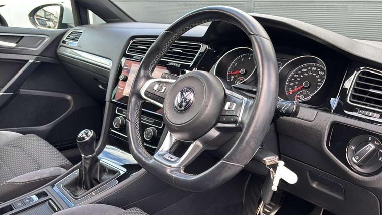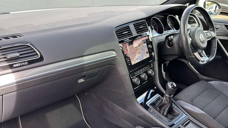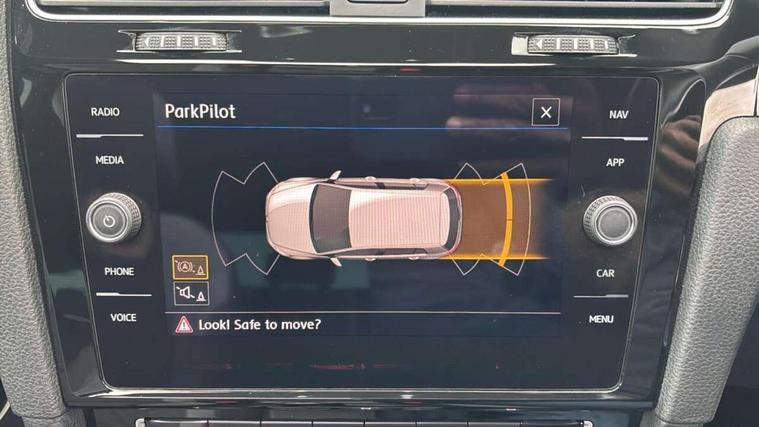 'Lights On' Reminder warning buzzer, 8" colour touch screen, ACC - Adaptive cruise control with front assist, forward collision warning, distance monitoring, city emergency brake and speed limiter, App-Connect, Bluetooth hands free telephone connection, Brake pad wear indicator warning light, Driver alert system, Driver profile selection, Exterior temperature gauge, Front assistant collision mitigation, Instrument cluster in white, Multifunction computer, PAS - speed related, Power assisted speed sensitive electro-mechanical steering, Rev counter, Stop/start system, Trip and service interval display, Ultrasonic front and rear optical and audible parking sensors, Warning buzzer and light for front seatbelts unfastened, Battery regeneration during braking, Lowered sports suspension, XDS electronic differential lock, CD/MP3/WMA, USB and SD card reader, aux-in, Composition media system, DAB Digital radio receiver, Automatic coming/leaving home lighting function and rain sensor, Automatic dimming rear view mirror/rain sensor, Automatic headlights, Black front air intake and radiator grille with chrome insert, Black sports rear diffuser, Body colour bumpers, Body colour door handles, Body colour door mirrors with integrated indicators, Body colour rear roof spoiler, Chrome grille surround, Chrome trapezoidal exhaust, Electric front windows, Electric rear windows, Electrically adjustable and heated door mirrors, Halogen headlights range adjustable via infotainment system with LED daytime running lights, Heated rear windscreen, High level 3rd brake light incorporating LED Technology, LED rear lights, Rain sensor, Rear number plate lights incorporating LED technology, Rear tinted glass 65% light absorbing from B pillar backwards, Rear window aerial, Rear window wash/wipe with intermittent wipe, Reflectors in all doors, Stainless steel door sill protection, Windscreen wipers/ intermittent wipe + 4 position delay, 12V socket in luggage compartment, 3 rear headrests, 60/40 split folding rear seat backrest, Bag hook in luggage compartment, Black headlining, Boot lashing points, Cooled glovebox, Courtesy light delay, Cover for storage compartment in centre, Dust/pollen filter, Front + rear carpet mats, Front centre armrest with storage compartment and two rear air vents, Front reading lights, Front seat back storage pockets, Grab handles front x 2, rear x 2 with integrated coat hooks, Height/reach adjust steering wheel, Illuminated vanity mirrors, Instrument lighting white adjustable panel illumination, Isofix preparation for 2 rear child seats, Leather gear knob and handbrake grip, Load through provision with rear centre armrest and cupholders x2, Luggage compartment cover, Luggage compartment light, Multifunction leather steering wheel with grey stitching leather trimmed gear knob including paddle shift, Overhead storage box, Stainless steel pedals, Storage box in luggage compartment, Storage compartments in doors, Storage compartments in front doors, Storage compartments in rear doors, Sun visors, Three spoke multi-function leather trimmed steering wheel and gearknob, Three spoke steering wheel, Variable boot floor, height adjustable and removable, Ambient lighting pack - Golf, Mirror pack - Golf, 3 rear three point seatbelts, Anti-lock braking system (ABS), Automatic post collision braking system, Child locks on rear doors, Driver/Passenger optimised head restraints, Drivers and Front Passengers airbags with front passengers airbag deactivation switch, Drivers knee airbag, Electronic stability control (ESC) including Electronic differential lock (EDL) and ASR (Traction control) with deactivation via infotainment system, Front and rear curtain airbags, Front seat side impact airbags, Hydraulic Brake Assist (HBA), Pre crash preventive occupant protection, Three point height adjustable front seatbelts with tensioners, Tyre pressure loss indicator, Alarm with interior protection, Electronic engine immobiliser, Remote central locking with 2 remote folding keys, Dark Diamond decorative inserts in dash and door panels, Piano black centre console with aluminium inlay, Steel space saver spare wheel,