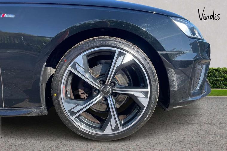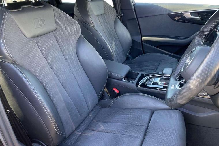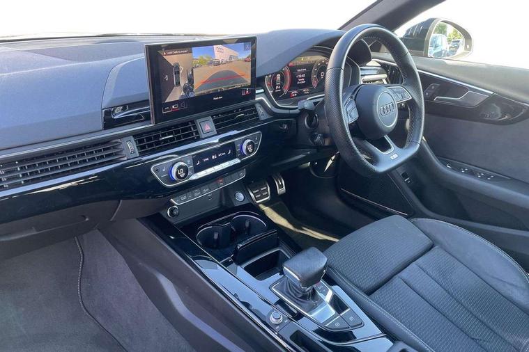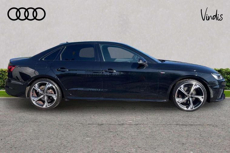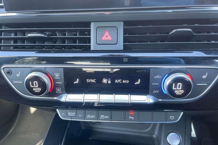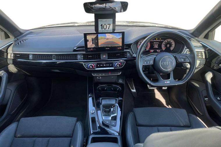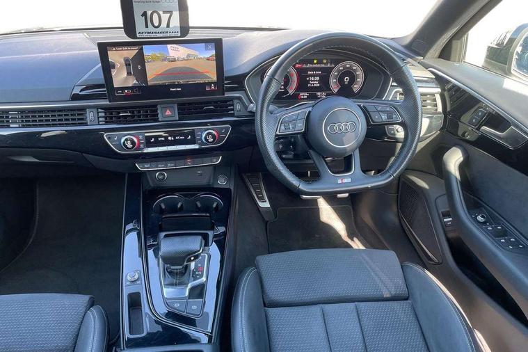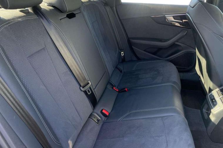 Audi connect safety and service (e-call), Audi drive select, Audi smartphone interface, Audi virtual cockpit, Automatic start-stop system with coasting functionality and efficiency programme, Bluetooth interface, Camera based traffic sign recognition, Electric boot lid release, Electromechanical power steering, Email, calendar and text messages displayed via MMI, Front and rear parking sensors, Lane departure warning, MMI Navigation plus with MMI touch includes 10.1" high resolution colour MMI display, 3D map, Rear view camera, Voice control system, 54 litre fuel tank, Sports suspension lowered by 23mm, 2 USB charging ports, 8 passive loudspeakers, DAB digital radio reception, Audi beam uses LEDs to project the audi logo onto the ground as you exit your A4, Auto dimming rear view mirror, Black Audi rings and black badging (model name in black badging, no engine badging), Body colour door handles, Body colour front spoiler lip, Body colour side sill trim, Electrically folding auto dimming/adjustable/heated door mirrors with LED side indicators and kerb view function for passenger side, Exhaust tailpipes in high dark chrome, Grained matt black side air inlets with matt aluminium silver inlay, High beam assistant, High gloss black B pillar trims and triangular rear door trim, LED headlights with LED rear lights + dynamic rear indicators + headlight adjustment and high beam, turning light + LED daytime running lights, LED third brake light, Privacy glass, Rain and light sensors, Rear boot, Rear diffuser in matt black with trim strip in matt aluminium silver, Rear side wing doors, Sport front and rear bumpers with side skirts, Variable intermittent front wash/wipe, Windscreen with acoustic glazing, 4 way electric lumbar support for driver and front passenger, 40/20/40 split folding 3 rear seat bench in 3 parts with rear centre armrest, Black cloth headlining, Black perforated leather gearknob, Contrast stitching on seats, steering wheel and gear lever gaiter, Deluxe 3 zone electronic climate control, Door sill trims with aluminium inlay, Front and rear head restraints, Front centre armrest, Heated front seats, Illuminated door sill trims with S logo, ISOFIX child seat mounting and top tether, Manual seat adjustment, Single front passenger seat, Stainless steel pedals and foot rest, Black styling pack - A4 Saloon, LED Interior light pack - A4/S4, 3 rear seatbelts, 6 airbags - Driver, front passenger, curtain and side windows, Attention and drowsiness assist, Electronic Stabilisation Control (ESC) including ABS, ASR and EDL, Hill hold assist, Multi collision brake assist, Pop-up bonnet for pedestrian protection, Pre sense city, Rear door child safety locks, Seatbelt monitoring, Warning triangle and first aid kit, Anti theft alarm, Anti theft wheel bolts, Central locking, Keyless Go, Piano black finish inlay, Tool kit, Tyre repair kit,
