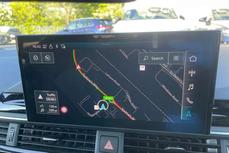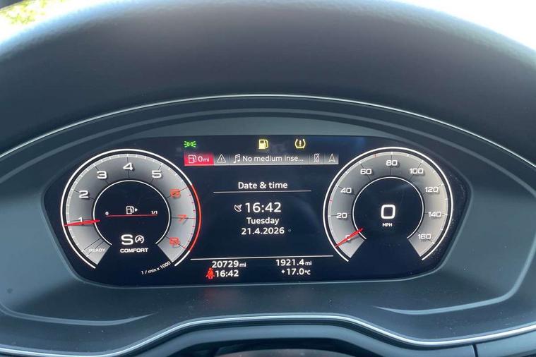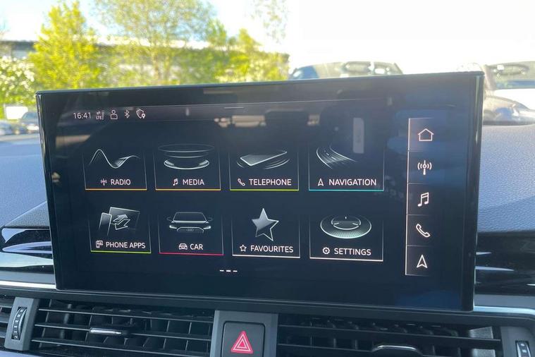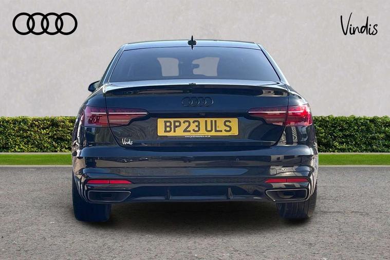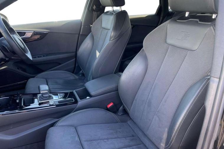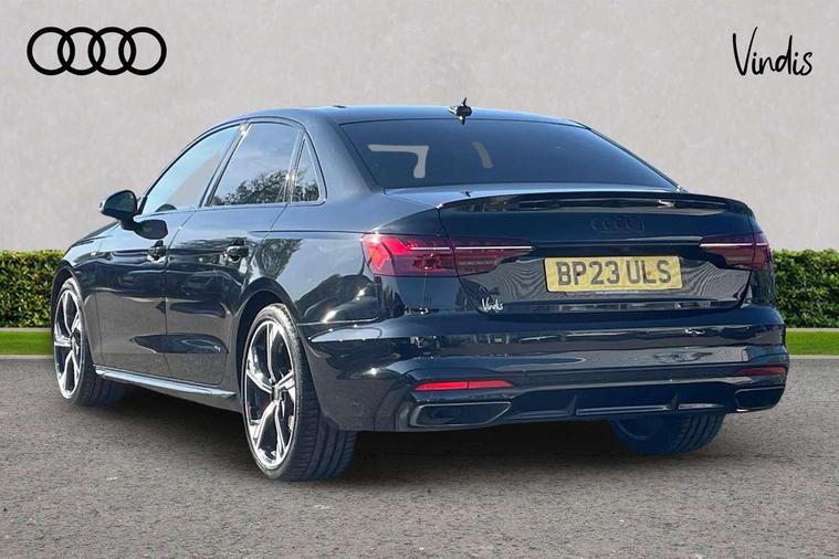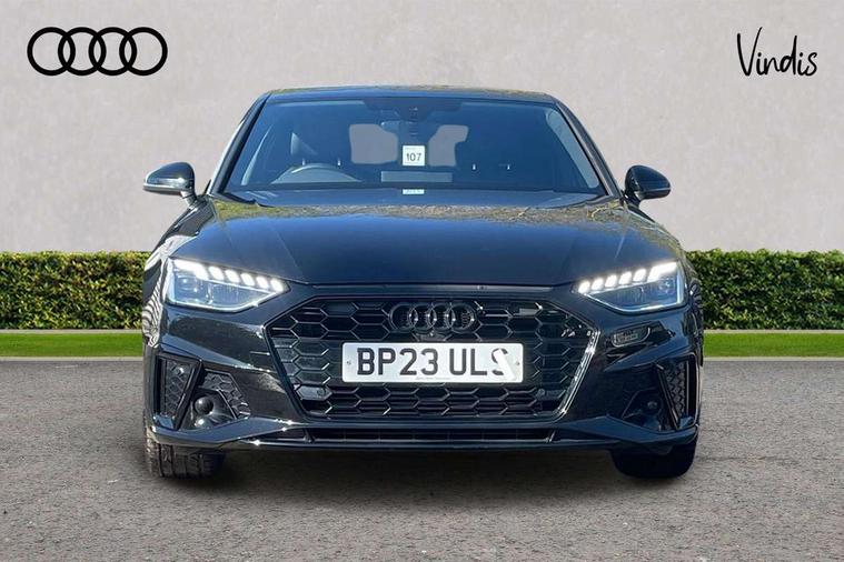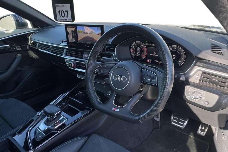 Audi connect safety and service (e-call), Audi drive select, Audi smartphone interface, Audi virtual cockpit, Automatic start-stop system with coasting functionality and efficiency programme, Bluetooth interface, Camera based traffic sign recognition, Electric boot lid release, Electromechanical power steering, Email, calendar and text messages displayed via MMI, Front and rear parking sensors, Lane departure warning, MMI Navigation plus with MMI touch includes 10.1" high resolution colour MMI display, 3D map, Rear view camera, Voice control system, 54 litre fuel tank, Sports suspension lowered by 23mm, 2 USB charging ports, 8 passive loudspeakers, DAB digital radio reception, Audi beam uses LEDs to project the audi logo onto the ground as you exit your A4, Auto dimming rear view mirror, Black Audi rings and black badging (model name in black badging, no engine badging), Body colour door handles, Body colour front spoiler lip, Body colour side sill trim, Electrically folding auto dimming/adjustable/heated door mirrors with LED side indicators and kerb view function for passenger side, Exhaust tailpipes in high dark chrome, Grained matt black side air inlets with matt aluminium silver inlay, High beam assistant, High gloss black B pillar trims and triangular rear door trim, LED headlights with LED rear lights + dynamic rear indicators + headlight adjustment and high beam, turning light + LED daytime running lights, LED third brake light, Privacy glass, Rain and light sensors, Rear boot, Rear diffuser in matt black with trim strip in matt aluminium silver, Rear side wing doors, Sport front and rear bumpers with side skirts, Variable intermittent front wash/wipe, Windscreen with acoustic glazing, 4 way electric lumbar support for driver and front passenger, 40/20/40 split folding 3 rear seat bench in 3 parts with rear centre armrest, Black cloth headlining, Black perforated leather gearknob, Contrast stitching on seats, steering wheel and gear lever gaiter, Deluxe 3 zone electronic climate control, Door sill trims with aluminium inlay, Front and rear head restraints, Front centre armrest, Heated front seats, Illuminated door sill trims with S logo, ISOFIX child seat mounting and top tether, Manual seat adjustment, Single front passenger seat, Stainless steel pedals and foot rest, Black styling pack - A4 Saloon, LED Interior light pack - A4/S4, 3 rear seatbelts, 6 airbags - Driver, front passenger, curtain and side windows, Attention and drowsiness assist, Electronic Stabilisation Control (ESC) including ABS, ASR and EDL, Hill hold assist, Multi collision brake assist, Pop-up bonnet for pedestrian protection, Pre sense city, Rear door child safety locks, Seatbelt monitoring, Warning triangle and first aid kit, Anti theft alarm, Anti theft wheel bolts, Central locking, Keyless Go, Piano black finish inlay, Tool kit, Tyre repair kit,