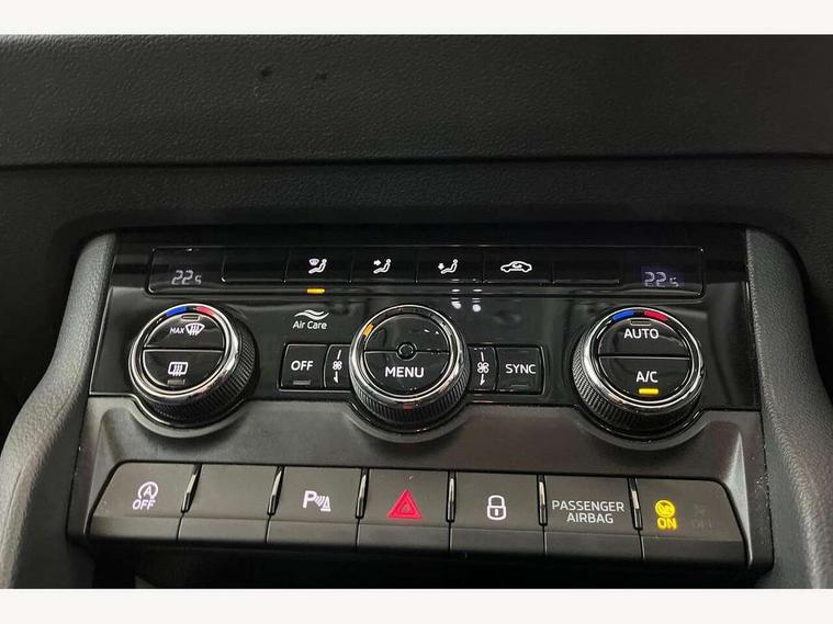 Driver alert system, Driver fatigue sensor, Driver profile selection, Electro-mechanical PAS, Outside temperature gauge, Service interval indicator, Start/stop system with regenerative braking, DAB radio with Bluetooth, SD card slot, USB connection, Acoustic glass, Aero front windscreen wipers with intermittent function, Automatic headlight control system, Body colour door mirrors and handles, Body coloured bumpers, Electric front and rear windows with child proof lock, Electrically adjustable heated folding and auto dimming door mirrors with boarding spots, Heated rear windscreen, LED rear lights with high functionality, Light assistant (coming/leaving home/tunnel light), Privacy glass, Safety reflectors on front doors, Third brake light, 1.5 litre bottle holders in driver and front passenger door panels, 12V socket in boot, 12v socket in front centre armrest with storage compartment and rear air vents, 2 Folding hooks and nets in boot, 2 Front readings lights for driver and passenger, 3 rear height adjustable headrests, 4 foldable roof handles with rear coat hooks, 4 lashing points on luggage floor, Backrest release, Cargo elements in boot, Chrome inner door handles, Driver and passenger seats height adjust, Dual zone climate control, Folding tables on the front seat backrests, Front seat and rear pockets, Height adjustable front three point seats belts with tensioners, Height/reach adjust steering wheel, Ice scraper, Illuminated and cooled glovebox, Illuminated luggage compartment, Isofix child seat preparation outer rear, Manual lumbar support for front seats, Net programme in boot, Pen holder, Pollen filter, Rear boot cover, Rear reading lights, Rear seats fixed folding and divided 60:40, Removable LED torch in the boot, Safety vest holder, Storage box in upper central dashboard closed, Storage net on centre console passenger side, Sunglasses storage compartment, Sunvisors with illuminated vanity mirrors, Umbrella under passenger seat, Airbags - Front side, head, knee and curtain, Automatic door unlocking in case of crash, Automatic fuel cut off in case of crash, Driver airbag, Electronic parking brake with auto hold function, Emergency rear braking signal, ESC including ABS, MSR, ASR, EDS, HBA, DSR, RBS, MKB and traction control, Front assist radar scanning of the space in front of the car with automatic braking, Hill hold control, Passenger airbag with switch-off function, Pedestrian monitor, Seatbelt reminder signalisation and pretensioner for all seats, Three point seatbelts rear, Two tone horn, Tyre pressure display, Tyre pressure monitor, Alarm with interior monitoring, back up horn and tilt sensor with safe function, Electronic engine immobiliser, Remote central locking with 2 remote folding keys, Chrome framed air vents, Storage on wheel cover,