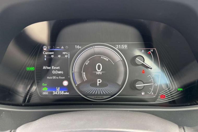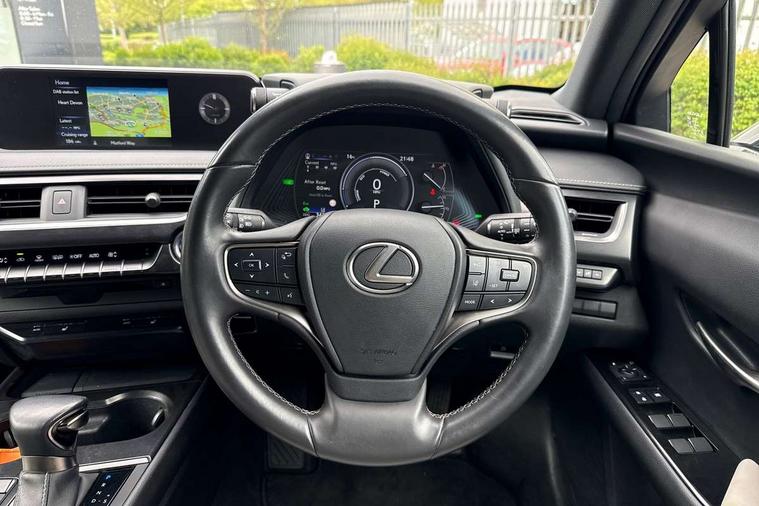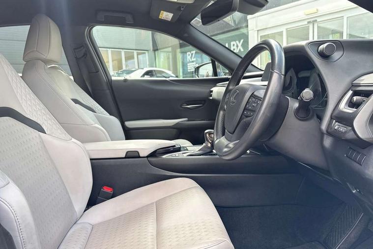 4 driving modes EV/Eco/Normal/Sport, 7" Lexus media display, 7" TFT instrument cluster, Analogue clock with GPS function, Apple car play/Android Auto, Compatible mobile phone bluetooth with audio streaming, E-call, Electric power steering (EPS) with speed sensitive features, Lane change flasher function, Lexus link connected services, Lexus safety systems + includes dynamic radar cruise control, pre collision system day and night, lane tracing assist, road sign assist, Push button start, Remote touch interface, Trip computer, Vehicle Dynamics Integrated Management (VDIM), Vehicle Stability Control (VSC), 2 front USB and 2 rear USB charging points, 6 speakers, AM/FM and DAB radio, AUX socket with VTR compatibility, CD player, Acoustic windscreen, Aero stabilising arch mouldings, Aero stabilising rear lights, Aero ventilated wheels, Bi-LED (low and high beam) headlights with Auto High Beam (AHB), Black roof drip mouldings, Black wheel arches, Body adhesive, laser screw welding and laser brazed roof structure, Body coloured bumpers, Electric adjustable/heated door mirrors, Front and rear one touch power windows, with anti-jam protection, Headlight cleaners, LED daytime running lights, LED tail lights, LED third brake light, Light green UV glass, Rain sensor windscreen wipers, Rear side wing doors, Rear wiper, Shark fin roof aerial, Single hidden exhaust pipe, Towing preparation, Variable front intermittent wipers, 12V accessory port centre console and luggage compartment, 2 cup holders in the front and rear centre console, 2 x folding shopping bag hooks in boot, 2 x sun visors with vanity mirror and lamp, 3 seat bench in 2nd row, 4 x tie down hooks in the boot, 5 headrests, 6 way driver and passenger manually adjustable front seats, 60/40 split folding rear seat, Card holder installed in driver and passengers sun visors, Centre armrest with storage, Driver and passenger door pocket, Dual zone electronic climate control + Nano-E humidity sensor, Glovebox, Illuminated entry system, Leather gear lever, Leather steering wheel, LED interior illumination, Map pockets in the rear of passenger's front seat, Premium fabric upholstery, Rear air vents with 2 USB chargers, Rear armrest with 2 cupholders, Single passenger seat, Storage tray under audio panel, Textile carpet mats, Tilt/reach adjustable steering column, Under deck storage, Under desk side storage, 2 x Isofix child rear seat restraints, 3x3 point rear seatbelts, Anti-lock braking system (ABS), BAS (Brake Assist System), Driver and front passenger 2 stage airbag, Driver and front passenger knee airbag, Driver/front passenger side airbags, EBD - Electronic brakeforce distribution, ECB (Electronically Controlled Brake System), Electric child locks, Electric parking brake, Front adjustable seatbelt anchor points, Front and rear curtain shield airbags, Front outer seatbelt+pre-tensioners, force limiter+tension reduction: 3-point with active safety link to PCS, Hill start assist control (HAC), Passenger airbag cut-off device, Rear outer seatbelt+pre-tensioners, force limiter+tension reduction: 3-point with active safety link to PCS, Centre belt w/o pre tensioner+force limiter, Secondary Collision Brake (SCB), TRC (Traction Control), Tyre pressure warning, 2 x remote key fobs, Anti theft system : Alarm instruction sensor, glass breakage sensor and engine immobiliser, Locking wheel nuts, Remote central door locking, Speed sensitive auto door locking, Two motion door lock with double lock, VIN Window etching, 17" Alloy wheels, Tyre repair kit,