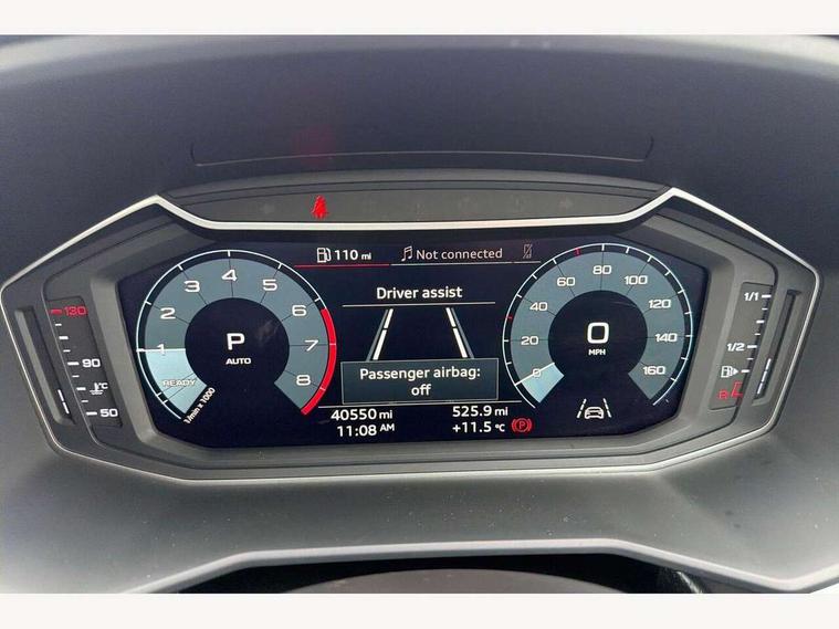 10.25" Digital instrument cluster display screen, Audi connect safety emergency and service including E-call, Audi drive select, Audi smartphone interface, Automatic start/stop system, Bluetooth interface, Driver's information system, Electromechanical power steering, Lane departure warning system, Service interval indicator, Speed limiter, Voice control system, Washer fluid level indicator, Dynamic suspension, 1 x SDXC card reader, 1 x USB type C and 1 USB type A charging points, Audi music interface, Bluetooth audio streaming, DAB Digital radio, MMI radio plus with 8.8" colour MMI display screen and MMI touch, Adaptive brake lights, Auto dimming rear view mirror, Body coloured bumpers, Body coloured door mirrors, Electric front and rear windows, Front side air inlets in grained matt black and C frame in titanium black, Heat insulating glass windscreen and side windows, Heated rear windscreen, LED headlights with LED rear lights + dynamic rear indicators, Radiator grille in matt titanium black, Radiator protective grille frame in matt aluminium silver, Rain and light sensors, Rear fog lights, Rear wiper, Side front spoiler lips in grained matt black, Titanium black matt diffuser, 12V socket in centre console with two cup holders, 3 rear seats, Door sills trims with aluminium inlays, Driver and passenger seat with manual height adjust with forward and backwards adjustment, Front head restraints, Front/rear floor mats, Height and reach adjustable steering wheel, Illuminated glovebox, ISOFIX child seat mounting in front passenger and rear outer seats, Leather gear knob with aluminium trim, Leatherette handbrake grip, Luggage compartment light with front and rear reading lights, Lumbar adjustment for front seats, Novum cloth upholstery with front sport seats, Rear head restraints, Split folding rear seats, Titanium grey cloth headlining, 3x3 point rear seatbelts, Brake assist function, Driver and front passenger airbag with front side and head airbags, Electronic Stability Control including ABS, EBD, ASR and EDL, Front and rear seatbelt reminder, Front passenger airbag deactivation switch, Hill hold assist, Seatbelt height adjustment for front seats, Seatbelt monitoring, Tyre pressure warning light, Warning triangle and first aid kit, Anti theft alarm, Anti theft wheel bolts and loose wheel warning, Audi pre-sense front with pedestrain and cyclist recognition, Immobiliser, Remote central locking with 2 remote folding keys, Aluminium trim for control switches, air vents and digital instrument cluster, Silver grey accent areas including air vents, door handle recesses and centre console in diamond paint finish, Slate grey inlays polygon structure in fine paint finish,