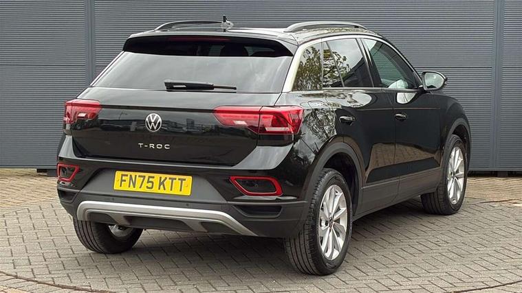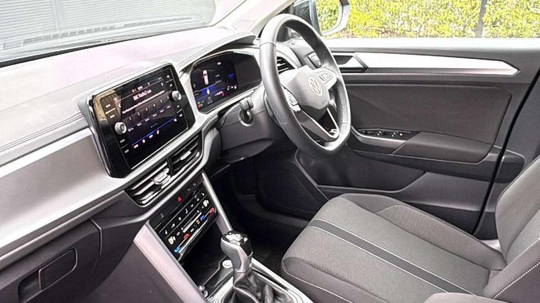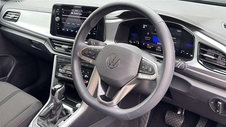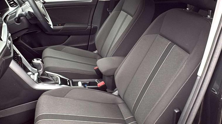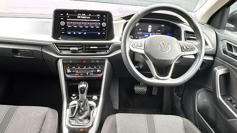 Advanced driver attention and drowsiness monitor, Dynamic road sign display, Emergency call service, Lane keeping system Lane Assist, Mobile phone interface, Modified key software - reduce switch off time for key status change to Long no motion, Online services, Park assist including front and rear parking sensors, Power assisted speed sensitive steering, Rear view camera, Service interval indicator, Tailgate/trunk lid release from outside, Think blue trainer driver tips and journey analysis, Warning sound and light for front seatbelts unfastened, Wireless app connect, Battery regeneration during braking, Front shock absorption, Rear shock absorption chassis with increased ride height, Start/stop function with battery regeneration, DAB Digital radio, Diversity antenna for FM reception, Music playback - MP3, WMA and AAC files, SD card slot, Simultaneous pairing of 2 compatible mobile devices, Title and cover art display, We Connect and We Connect Plus functionality, Auto dimming interior rear view mirror, Automatic hazard lights activation under emergency braking, Automatic headlight control with LED separate daytime running lights with coming/leaving home function, Black roof rails, Body coloured bumpers and radiator grille with chrome trim and front fog lamps with chrome bezel, Body coloured exterior mirror housings and door handles, Electrically adjustable and heated door mirrors, Extended roof spoiler, Exterior mirrors aspherical on driver side, convex on front passenger side, External USB type C socket and charging sockets, Front windscreen wiper with intermittent wipe and 4 position delay, Heated rear window, LED 3rd brake light, LED rear combination lamps, LED rear number plate lights, Power windows with comfort operation and circuit breaker, Privacy glass for rear side windows and rear window, Rain sensor, Rear exhaust tailpipe, Rear fog light on one side and reversing lights on both sides, Rear side wing doors, Rear wash/wipe with intermittent wipe setting, Remote electrically foldable door mirrors, puddle lights and reverse activated passenger's door mirror, 12V power socket in centre console, 3 rear head restraints, 3 seat bench in 2nd row, 4 load lashing points in luggage compartment, Air care climatronic air conditoning system with active combination filter and 2-zone temperature control, Black stitching for floor mats, Ceramique roof liner, Cloth upholstery, Door and side trim panel in cloth, Drawer under drivers seat, Driver/front passenger seat height adjustment, Front centre armrest, Front comfort sports seats, Front cupholders x 2, Front reading light, Front seat back storage pockets, Glove compartment door with light, Instrument lighting, white adjustable panel illumination, Interior ambient lighting and surround lighting, Interior light delay, Isofix child seat preparation, Leather gearshift handle, Load-through provision with cup holder when folded down ('Unsplit rear seat bench, split folding backrest, with centre armrest), Luggage compartment lighting, Lumbar support for driver's and front passengers seat, Non-folding front passenger seat backrest, Single front passenger seat, Storage compartment in left and right luggage area, Storage compartment in rear doors, Storage compartments in driver and front passenger doors, Sunvisors with illuminated vanity mirrors, Variable boot floor, height adjustable and removable, Driver assistance pack without proactive passenger protection - T-Roc Life/Match, 3 point height adj front seatbelts + pretensioners, 3 point seatbelts in outer rear with ECE label, ABS, Child locks on rear doors, City emergency braking and pedestrian monitoring, Driver and front passenger airbag with front passenger airbag deactivation, Driver and front passenger safety-optimised head restraints, Drivers seatbelt reminder, Electronic parking brake, Electronic Stability Control (ESC) inc EDL (Electronic Differential Lock) and ASR (Traction Control), Front and rear passengers curtain airbag system including front side airbags, Front disc brakes, Hill start assist, Predictive pedestrian protection, Rear disc brakes, Two tone horn, Tyre pressure loss indicator, Volkswagen roadside assistance, Alarm with interior protection, Keyless locking and starting system keyless access with safelock, Pewter matt decorative inserts for intrument panel, centre console and door panels at the front, Trims for alloy wheels,
