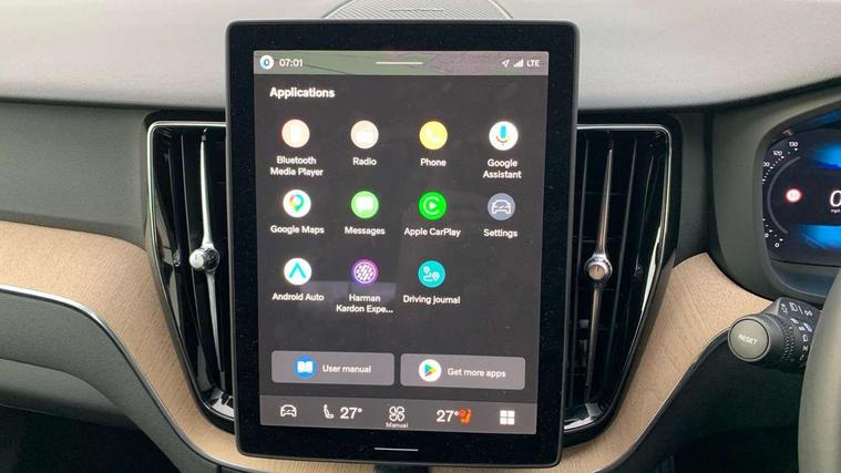 11.2" centre console touch screen, 12.3" Progressive Driver Display, 360 degree surround view parking camera with side proximity sensors, Adaptive cruise control, Adjustable steering wheel force, Android auto (Wired), Apple carplay (wired), Bluetooth handsfree system, Digital in-car owners manual, Driver alert control with lane keeping aid, Driver understanding system, e-call and b-call, Front and rear park assist, Google automotive services - navigation with google maps, voice recognition and google assistant, Intelligent speed assistance, Oncoming Lane Mitigation, Over the air updates, PAS, Power operated tailgate with handsfree opening and closing, Service interval indicator, Speed limiter, Speed sensitive steering, Trip computer, Volvo cars services with app - Climatisation, engine start, door lock/unlock in remote + trips - journey recording and data logging, vehicle dashboard, Volvo on call with App, Wireless/Inductive Mobile Phone Charging, 8 speed automatic transmission with start/stop + manual change functions, DAB Digital radio, Premium Sound by Harman Kardon, dirac unison, dolby pro logic II surround sound, 13 speakers/600W output and fresh air subwoofer, Steering wheel remote infotainment controls, Adaptive brake lights with high level LED brake lights, Auto dimming interior + exterior mirrors, Automatic headlight levelling system, Automatic LED Headlights + Active high beam incorporating daytime running lights, Electric adjustable/heated/auto power folding door mirrors, Electric front+rear windows, Front aluminium tread plates, Heated front windscreen, High gloss black door mirrors and window surround, High gloss black front and rear bumper decoratives, High gloss black mesh front grille with high gloss black surround, Home safe and approach lighting, Integrated roof rails in high gloss black, Puddle lights, Rain sensor with automatic windscreen wiper activation, Rear side wing doors, Rear wiper, Roof antenna, Roof spoiler, Tinted windscreen, Visible VIN plate, 12V socket in front tunnel console and luggage compartment, 3 seat bench in 2nd row, 3 Spoke tailored steering wheel with chrome trim, 4 Zone electronic climate control, Air purifier particulate matter (PM) 2.5 filter, B Pillar ventilation, Bright metal luggage scuff plate, Centre console cupholders and storage, Charcoal floor mats, Front and rear courtesy lights, Front and rear door pocket illumination, Front footwell illumination, Front headrests, Front reading lights, Front seat cushion extensions, Front tunnel storage illumination, Glovebox compartment with illumination, Heated front seats, Heated steering wheel, Height/reach adjustable steering column, Illuminated luggage compartment, Illuminated vanity mirrors + ticket holder, Inner door release handle illumination, ISOFIX attachment on outer rear seats, Load cover, Load protection net, Multi directional lumbar support, Power driver seat with memory + exterior mirrors memory, Power folding rear headrests, Power passenger seat with memory, Rear armrest with cupholder, Rear footwell and front and rear side step illumination, Rear reading lights, Rear seat concealed storage, Single front passenger seat, Tailgate illumination, Underfloor stowage compartment, Versatile split folding rear seat - 60/40, Driver assist pack without Adaptive cruise control - XC60, 5 three point seatbelts, City safety with steering support with Pedestrian + cyclist + front collision warning with full auto brake and rear auto brake, Driver and passenger airbags, Drivers knee airbag, Electronic parking brake with auto hold, First aid kit, Front seats SIPS airbags, Hill descent control - Off-road drive mode, Hill start assist, IC (Inflatable Curtains) - Full Length, Passenger airbag cut-off device, Power child locks on rear doors, Road sign information display, Run off Road Mitigation, Run off Road Protection, Seatbelt reminder and pretensioners, SIPS (Side Impact Protection System), Slippery road and hazard light alert, Stability and Traction Control with Spin control, Engine Drag Control and Corner Traction Control, Tyre pressure monitoring system, Vehicle deceleration control with Anti-lock Brake System, Electronic Brake Distribution and Emergency Brake Assist, Warning triangle, WHIPS whiplash protection system - front, Anti-theft alarm including immobiliser/volume sensor + level sensor, Key integrated remote control central locking + fuel flap with deadlocking system and auto open/close power windows, Keyless Drive (includes Keyless Entry and Keyless Start), Locking wheel nuts, Private locking for tailgate, Summer tyres,