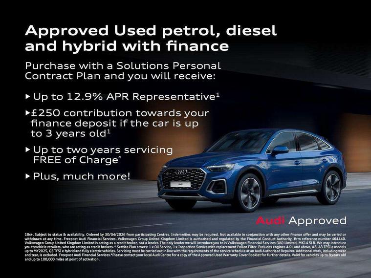 Audi connect safety and service (e-call), Audi drive select, Audi lane departure warning, Audi Virtual Cockpit - 10.25" display, Bluetooth interface, Camera based traffic sign recognition, MMI Navigation Plus with high resolution 10.1 inch touchscreen colour display, Power operated tailgate, Progressive steering, Service interval indicator, Smartphone interface includes wireless Apple carplay/Android Auto, Start stop system with recuperation, Voice control system with natural language interaction, 48V Mild hybrid technology, Sports suspension, 2 USB-C ports with charge and data functions, 6 passive loudspeakers, DAB digital radio module, Acoustic windscreen, Aluminium roof rails, Aluminium window trim, Auto dimming frameless rear view mirror, Body coloured bumpers, Electrically folding, adjustable and heated door mirrors with integrated LED side indicators and kerb view function for passenger side, Front and rear electric windows, Front fog lights, Front side air inlets in matt platinum grey, Front spoiler blade in matt platinum grey, Grille vertical bars in aluminium silver/Matt, High gloss black finish B and C pillars, LED headlights with LED daytime running lights and dynamic rear indicator, LED rear lights, Privacy glass dark tinted rear and rear-side windows (from B-pillar backwards), Rain and light sensors, Rear diffuser strip in matt titanium black, S line badges on front wings, S Line front and rear bumpers, Side skirt insert in matt Platinium grey, Silver chrome grille surround, Titanium black radiator grille, 12V socket in rear centre console, 40:20:40 folding with manual adjustment for 60:40 forwards/backwards position and backrest angle, Adjustable rear seat bench/backrest with centre armrest and cupholder, Black cloth headlining, Dual zone electronic climate control, Front and rear black floor mats with contrast stitching in rock grey, Front and rear headrests, Front and rear roof module including reading lights, Front centre armrest, Glove compartment lighting, Height and reach adjustable steering wheel, Illuminated door sill trims with S logo, ISOFIX child seat mounting for front passenger with airbag deactivation and outer rear seat including top tether attachment point for outer rear seats, Luggage compartment light, Manual front seats with height adjustment, Perforated leather gearknob, Stainless steel luggage compartment sill finisher, Stainless steel pedals, Non smoking pack - Q3, 3x3 point rear seatbelts, 6 airbags - Driver, front passenger, curtain and side windows, Audi pre-sense front with pedestrain and cyclist recognition, Electrically operated child locks on rear doors, Electromechanical parking brake, Electronic stabilisation control including ABS, ASR and EDL, Hill descent control, Hill hold assist, Pre sense basic, Seatbelt monitoring, Tyre pressure warning, Warning triangle and first aid kit, Anti theft alarm, Anti theft wheel bolts, Remote central locking, Dark matt brushed aluminium inlay, Detail dashboard around MMI touch colour display in glass look, black with surround in aluminium look, Leatherette door armrest, Tool kit, Tyre repair kit,