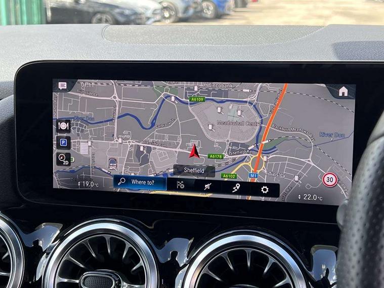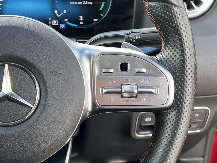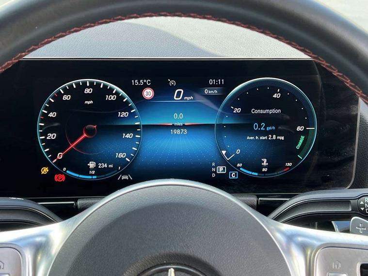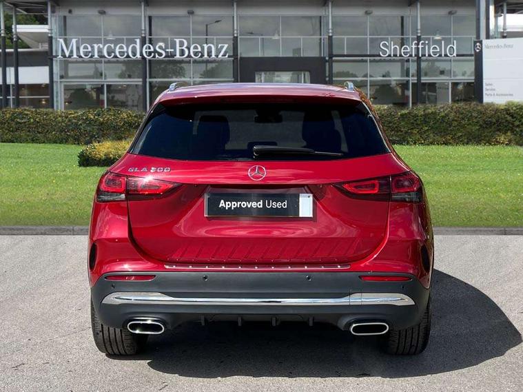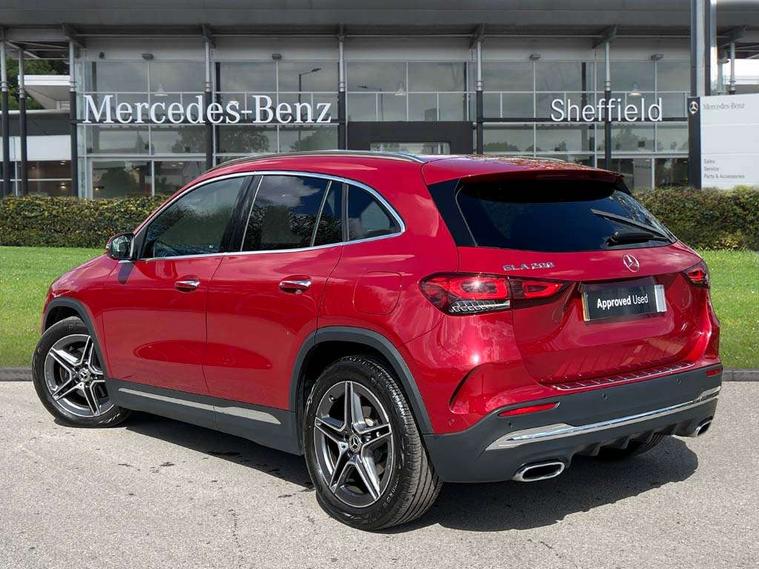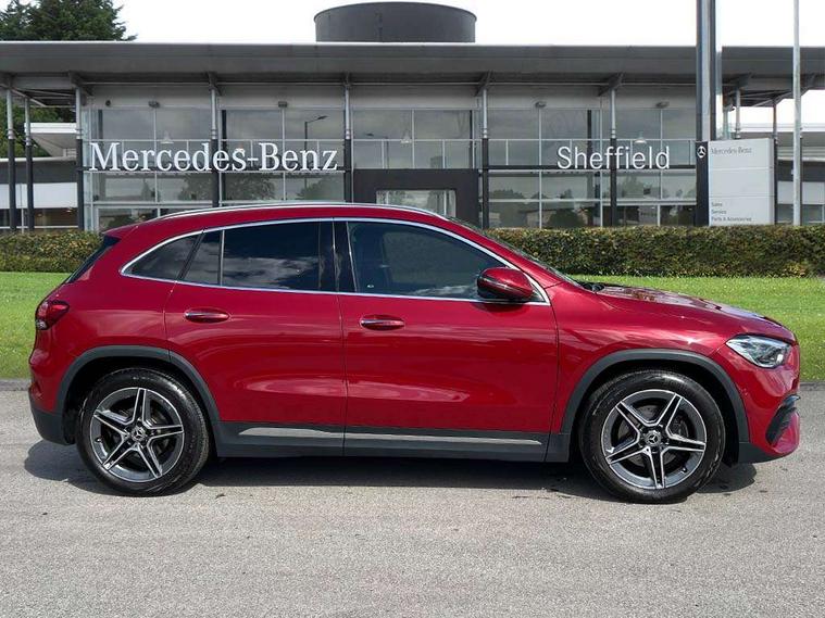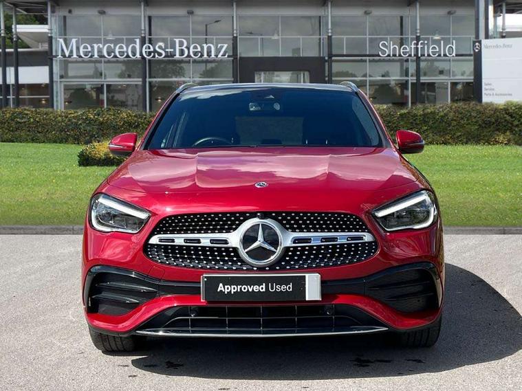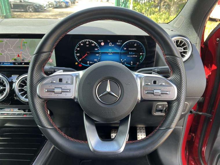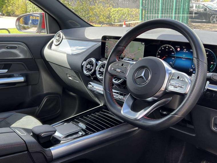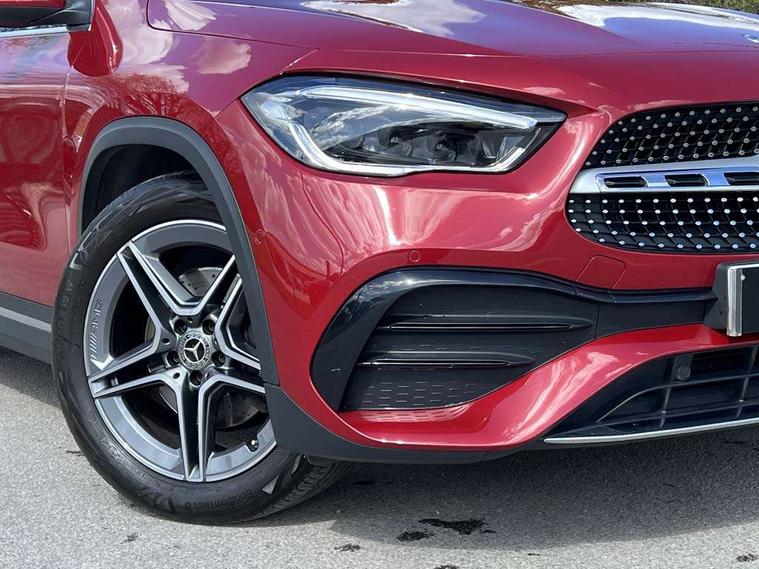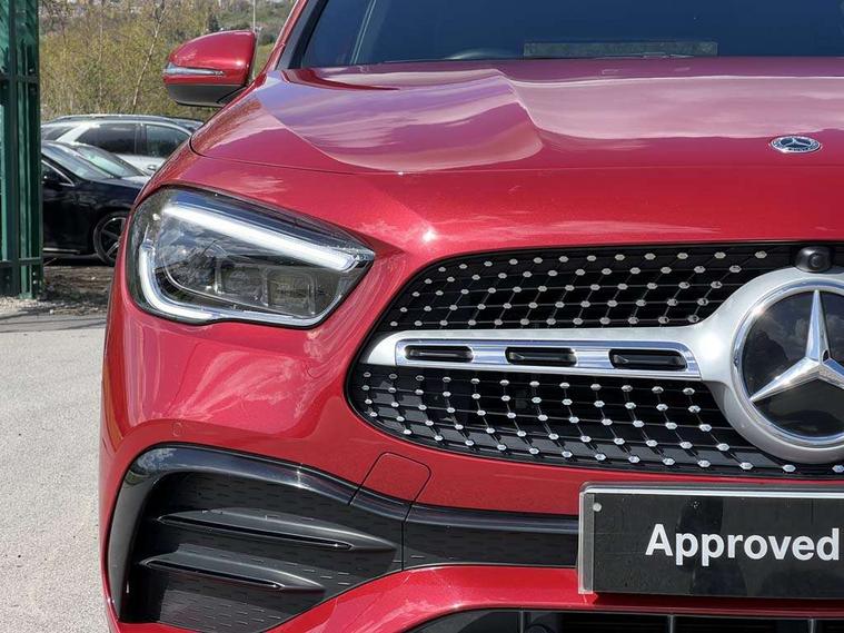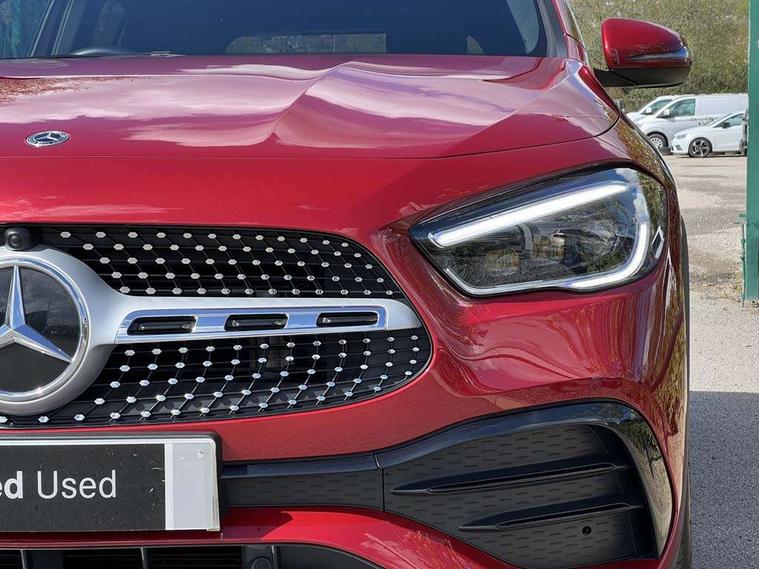 10.25 inch touchscreen central media display, 10.25" Digital instrument cluster display screen, Active lane keeping assist, Attention assist, Direct steering, DYNAMIC SELECT with a choice of driving modes (ECO, Comfort, Sport and Individual), ECO start/stop function, Fluid level warning indicator for fuel, oil, coolant and washer fluid, Hard-disk navigation, Hey Mercedes Voice activation, Lamp failure indicator, Mercedes me connect including emergency call system, accident recovery, breakdown and maintenance management, Mercedes me remote services, Multi function trip computer, Outside temperature gauge, Owners manual and service booklet in English, Pre-installation of private car share, Radio aerial integrated into front and rear windshields, Service indicator (ASSYST), Smartphone integration with Apple CarPlay and Android auto, Status display for rear seat belts in instrument cluster, Traffic sign assist, Lowered comfort suspension, Rear axle multi-link, 2 USB ports (type C) in rear stowage compartment and one in front of center console, Bluetooth connectivity including audio streaming, DAB Digital radio, MBUX multimedia system, Media interface, Mercedes-Benz (225w) sound system with 10 speakers, Adaptive brake lights, Aerial for GPS, Aluminium roof rails, AMG front and rear apron, AMG specific/dual flow exhaust pipes in chrome (non-functional), Automatic headlamp activation, Beltline strips and weather strip in chrome, Black grained claddings with chrome parts, Body colour bumpers, Body colour door mirrors, Body coloured door handles with chrome insert for keyless entry, Car wash function, Dark privacy glass from B-pillar backwards, Electric front windows, Electric rear windows, Electrically adjustable and heated door mirrors with integrated LED indicators, Heated glass rear windscreen + timer control, Heated windscreen wash system, Interior mirror with black reading lamps and frameless, LED daytime running lights, LED third brake light, Matt titanium grey front and rear apron trim, Multibeam LED headlamps with adaptive highbeam assist and cornering function, Panoramic sunroof, Pre-installation for trailer coupling, Rain sensor windscreen wipers, Rear fog lights, Rear side wing doors, Rear wiper, Roof spoiler, Single lamella raditor grille with chrome dotted diamond grille and inlay, 12V power socket in centre console, 3 seat bench in 2nd row, 3 spoke multifunction sports steering wheel in nappa leather with flattened bottom and perforated grip area, 40:20:40 split folding rear seat backrests, Adjustable head restraints, Air conditioning - Two zone thermotronic luxury automatic climate control with display, Ambient lighting in front headrests, AMG floor mats with AMG lettering in front, Artico man-made leather/Microfibre Dinamica upholstery with red contrast stitching, Auto Mercedes-Benz child seat recognition sensor, Black roof lining, Brushed door pulls in silver chrome, Courtesy light in boot, Front centre armrest with stowage, Galvanished gear shift paddles on steering wheel, Heated front seats, illuminated door sills with changeable cover, Illuminated glovebox, Interior lighting - 64 colour Ambient lighting, Leather trimmed gearknob, Luggage net on driver/front passenger seat backrest, Manually height and reach adjustable steering column, Multi-gesture touchpad control on center console, Single front passenger seat, Sports pedals in brushed stainless steel with black rubber studs, Sports seats, Stowage compartment in centre console, Stowage compartment with retractable cover, Sunvisors with illuminated vanity mirrors, Twin front cup holders, Two outer rear seat isofix and top tether child seat fixing points, AMG body styling pack - GLA, Comfort seat pack - GLA Class, Interior lighting with light and sight pack - GLA, Load compartment pack - GLA, Mirror pack - GLA Class, Parking pack - GLA, 3 rear 3 point seatbelts, ABS with Brake Assist, Active bonnet pedestrain safety measure which detects an impact and raises bonnet by 65mm, Active brake assist includes forward collision warning system with autonomous braking, Adaptive brake assist with hold function and hill start assist, Bonnet with power domes, Brake pad wear warning indicator, Childproof locks manually operated for rear doors and electrically operated for rear power windows, Crash responsive emergency lighting, Driver and passenger head and side airbags, Drivers knee airbag, Dual stage driver/passenger airbags, Electronic parking brake, ESP curve dynamic assist, ESP with ASR, Front and rear seatbelt reminder, Front brake callipers with Mercedes Benz logo lettering on front, Front brake discs internally ventilated and perforated, Front passenger seat occupancy sensor, Tyre pressure monitoring system, Warning triangle and first aid kit, Window airbags, Alarm system with immobiliser and interior protection -Thatcham category 1, Keyless Go starting function, Remote central locking and crash sensor with emergency opening function, Urban guard vehicle protection, Vehicle key with decorative surround in chrome, Carbon structure trim, Chrome air vent surrounds, 19" AMG 5 twin spoke light alloy wheels aerodynamically optimised painted in tantalite grey with a high sheen finish, Summer tyres, Tirefit tyre sealant kit,