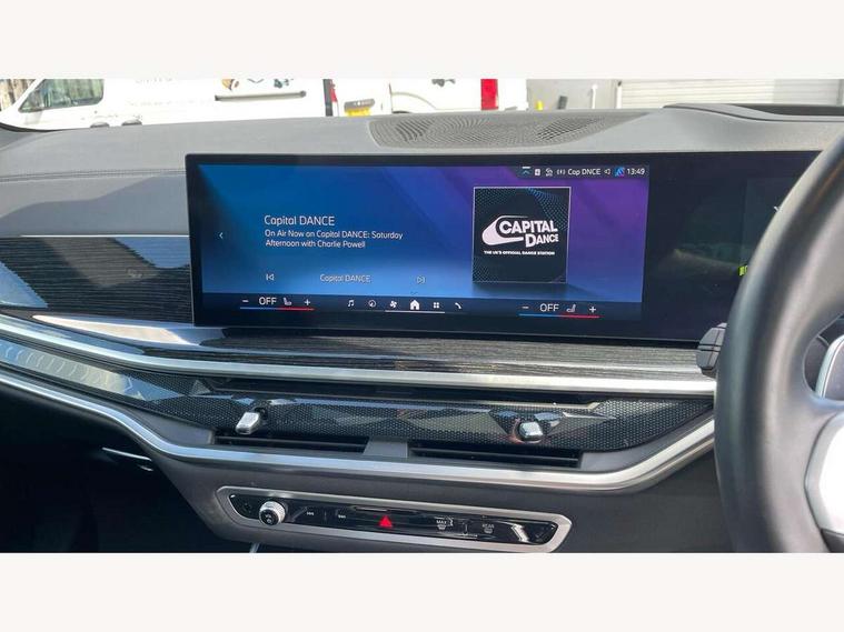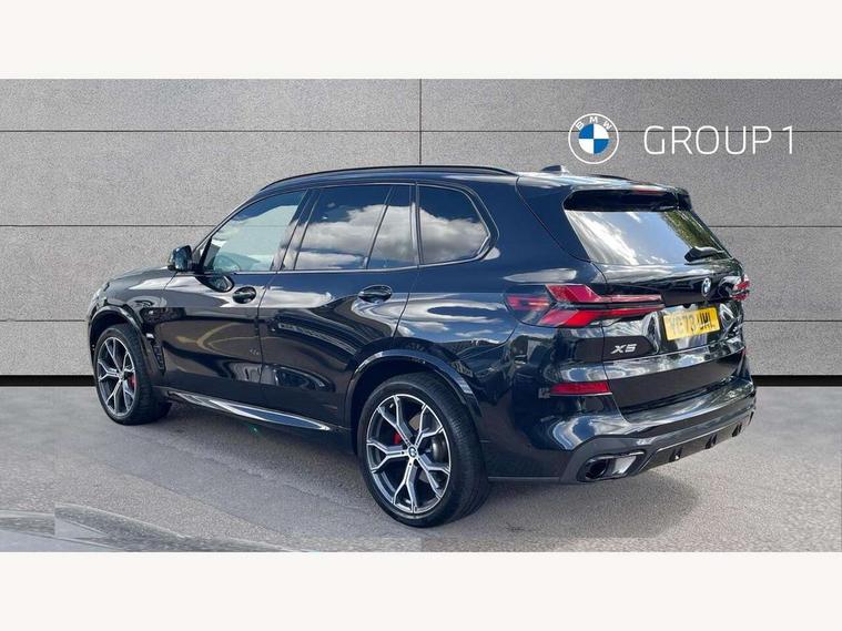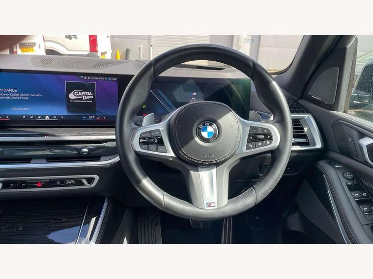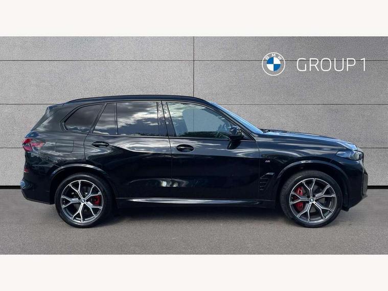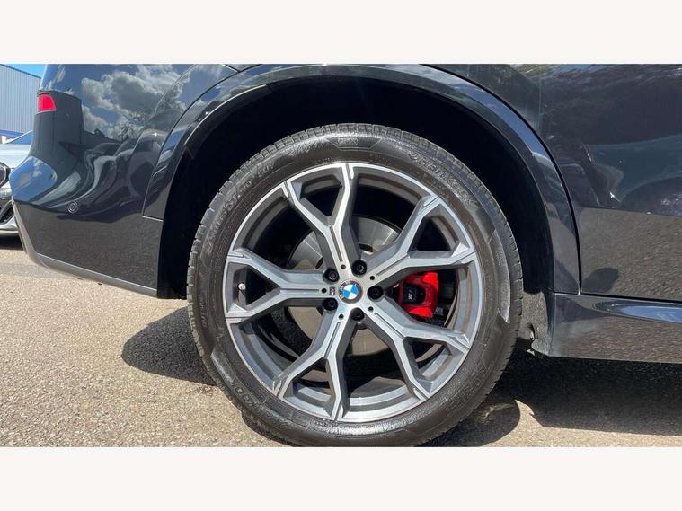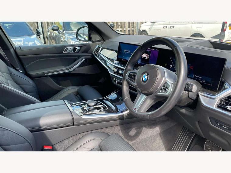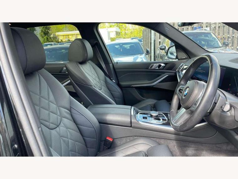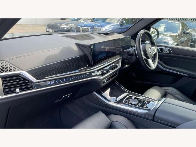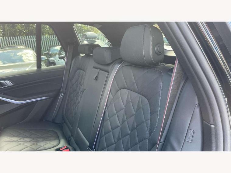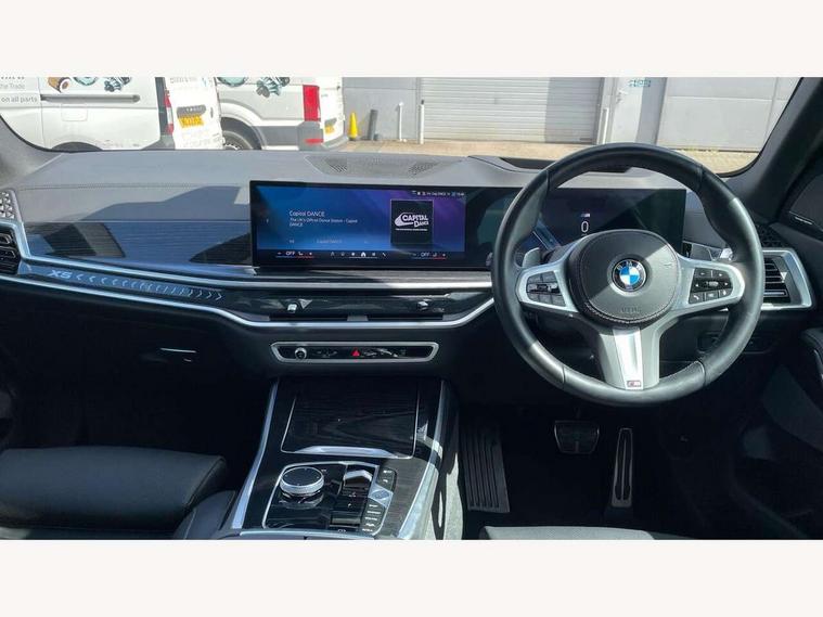 Attentiveness assist, Automatic tailgate operation, BMW ConnectedDrive online services, BMW live cockpit + with curved 12.3 instrument cluster/14.9 central display, nav/Tuner with diversity reception, RDS/4GLTE/remote software upgrade, BMW Recovery system, BMW Teleservices, Condition based service, Cruise control with brake assist, eCall emergency call system, Enhanced bluetooth with wireless charging, Integrated owner's handbook, PAS, Speed limiter, Wi-Fi hotspot, Drive performance control with ECO PRO comfort + sport mode, Eight speed steptronic sport automatic transmission and gearshift paddles on the steering wheel, Hi-Fi loudspeaker system, Adaptive LED Headlights, Front and rear electric windows, High beam assistant, High gloss black shadow line roof rails, LED daytime running lights, Rear side wing doors, Third brake light in rear spoiler, Variable intermittent rear wash/wipe, 12V - Power sockets with 2x centre console and 1x luggage compartment, 3 seat bench in 2nd row, Foldable rear centre armrest with 2 cupholders and storage compartment, Front and rear side armrest integrated into door trim, Headrests for all seats, Luggage compartment separating net, Single front passenger seat, Three spoke sport M leather steering wheel, Velour floormats, Ambient light interior pack - X5, Driving assistant pack with radar based driver assistance system - X5, Expanded exterior mirror pack - X5/X5 M, M aerodynamics pack - X5, 3 rear seatbelts, Active protection, Airbags - driver/front passenger, rear and side, first and second row seats head airbags, front passenger seat airbag deactivation + knee airbag, Anti-lock braking system (ABS), Automatic Stability Control (ASC), Brake energy regeneration, Cornering brake control (CBC), Crash sensor activating central locking release, hazard warning lights, fuel cut off, interior lighting + activation of safety battery terminal clamp, DSC - Dynamic Stability Control, Dynamic Traction Control - DTC, Electromechanical parking brake with automatic drive away release and auto hold function, Electronic brake force distribution, Hill start assistant, M Sport blue painted brake calipers with 'M' designation, Mechanical child proof lock on rear doors, Tyre pressure monitoring system, Tyre pressure sensors, Ventilated front and rear disc brakes, Warning triangle and first aid kit, Closing system with central locking, Comfort access system, Locking wheel bolts, Sensatec instrument panel,