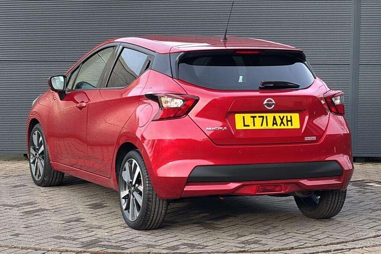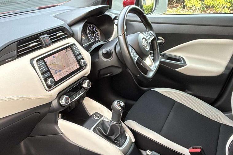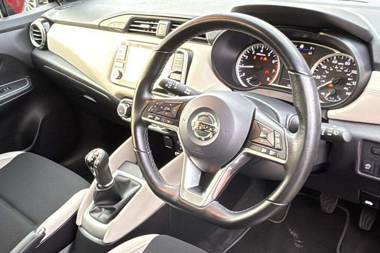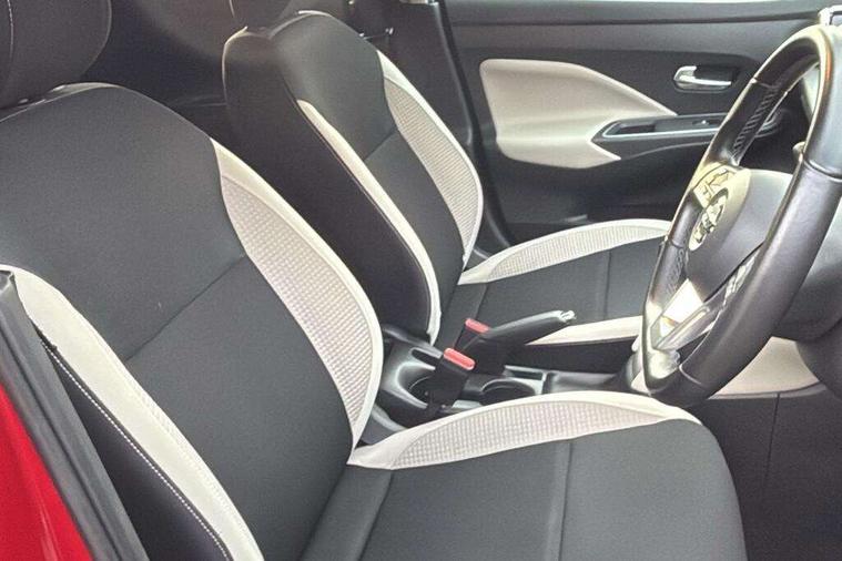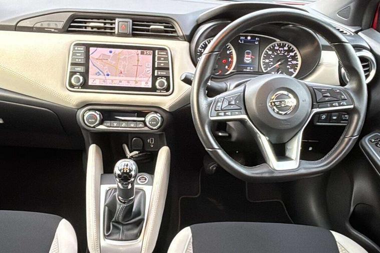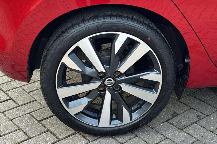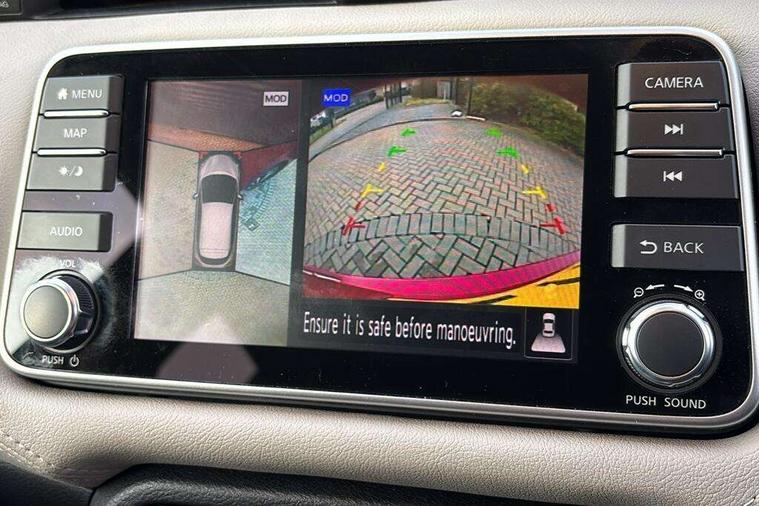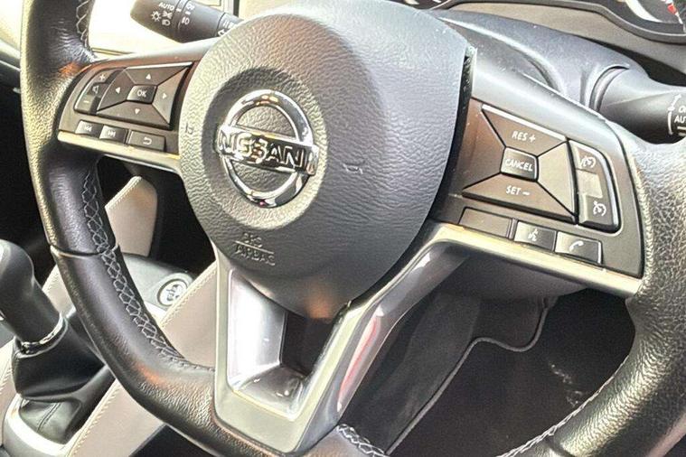360 degree around view monitor, Adjustable speed limiter, Bluetooth system, Cruise control, Lane departure prevention, Lane departure warning system, Nissan Connect touchscreen navigation and Entertainment system, Outside temperature gauge, Power assist steering, Rear parking sensors, Rear view camera, Smartphone integration with Apple CarPlay and Android auto, Stop/start system, Traffic sign recognition, Trip computer, Audio system with MP3, BOSE sound system with 6 speakers, DAB Digital radio, USB/iPod connection, 4 pocket halogen headlights with signature finisher, Antenna, Auto dimming rear view mirror, Automatic activation of hazard warning lights, Automatic headlights, Body colour front door handles, Body coloured bumpers, Body coloured door mirrors, Concealed rear door handles, Electric folding door mirrors, Front and rear electric windows, Front fog lights, Heated door mirrors, High beam assist, High mounted stop lamp, Jacknife key type x1, LED daytime running lights, LED Headlights, Rain sensor windscreen wipers, Rear privacy glass, Rear roof spoiler, Rear wiper with reverse link, 12V power point front, 2 height adjustable rear headrests, 3 cupholders, 60/40 split folding rear seat, Automatic air conditioning, Boot compartment cover, Boot light, Chrome interior door handles, Driver's seat manual height adjust, Driver/passenger sunvisors and vanity mirrors, Front and rear door pockets with bottle holders, Front console storage box, Gear shift indicator, Height adjustable front headrests with satin sliver decoration, Illuminated electric window switch, Isofix front passenger and rear seat preparation, Leather wrapped gear shift knob, Leather wrapped parking break, Leather wrapped steering wheel, LED ambient lighting, Map reading lamp, Parcel shelf, Passenger seat back pocket, Reclining front seats, Synthetic leather front door pads, Synthetic leather instrumental panel inserts, ABS+EBD+Brake assist, Crash sensor, Driver/Front Passenger airbags, Front and rear curtain airbags, Front side airbags, Height adjustable front seatbelts with pre-tensioners and load limiters, Hill start assist, Intelligent emergency braking with pedestrian recognition, Manual passenger airbag deactivation function, Rear seatbelts with pre-tensioners and load limiters, Seatbelt warning, Three 3 point rear seatbelts, Tyre pressure monitoring system, Warning triangle and first aid kit, Anti-theft immobiliser, Intelligent key with push button ignition, Remote central locking, 17" Diamond cut alloy wheels, Tyre repair kit,