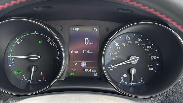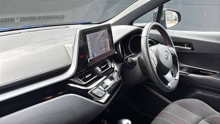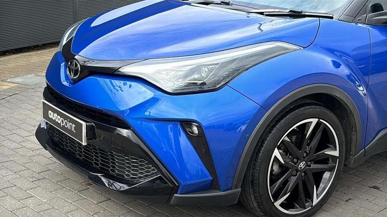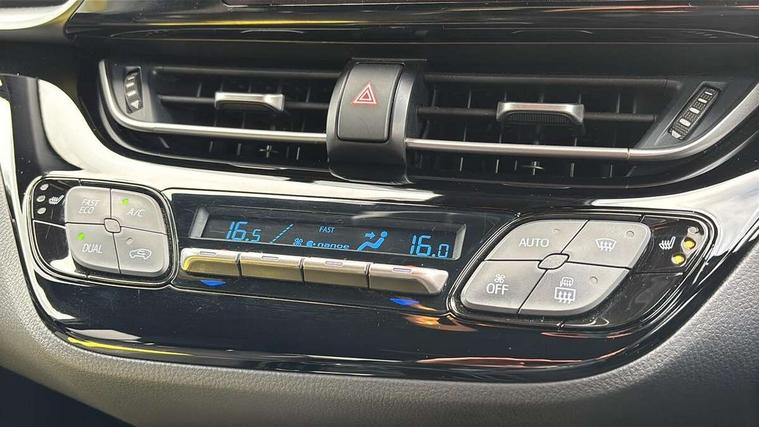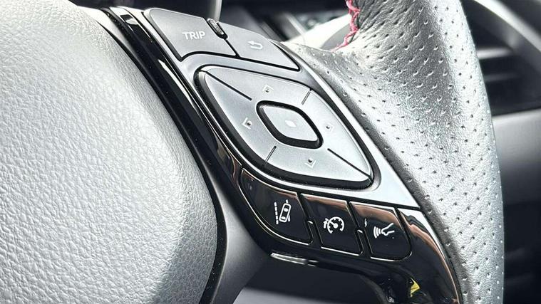 4.2" coloured TFT screen for multi-information display, Adaptive cruise control, Apple car play and Android auto, Bluetooth connectivity, E-call, Electric power steering, Hybrid system indicator, Lane departure alert with steering control, Lane trace assist, Push button tailgate release, Remote boot door release in cabin, Remote boot door release in key, Reversing camera, Road sign assist - RSA, Simple Intelligent parking assist, Smart voice assist, Touch 2 Go navigation system, Trip computer, Voice recognition, Wireless smartphone integration, Vehicle Stability Control (VSC), 6 speakers, AM/FM radio, DAB Radio (Digital Audio Broadcasting), Toyota touch 2 multimedia system with 8" display, USB connector, Wi-fi connectivity, Adaptive front light system, Adaptive LED Headlights, Anti-jam protection on power windows, Auto high beam, Auto up and down function on all power windows, Automatic headlight levelling, Automatic headlights, Automatic headlights cut-off, Black and body coloured rear bumper, Black upper front grille, Body colour door handles, Body colour door mirrors, Body coloured front bumper, Boot door release with push button, Chrome front lower bumper, Electric heated door mirrors, Follow me home headlights, Front and rear power windows, Front spoiler lip in black, Headlight cut off reminder, Honeycomb lower front grille, LED daytime running lights, LED fog lights, LED front light guide, LED High mounted stop light, LED rear brake lights, LED rear combination lights, Noise reduction layer on front windows and windscreen, Power adjustable door mirrors, Privacy glass, Rain sensor, Rear sequential indicators, Rear side wing doors, Rear spoiler, Rear tailgate, Rear window defogger, Rear window wiper, Shark fin antenna, UV-filter on driver and passenger windows, UV-filter on rear windows, Variable front intermittent wipers, 12v power outlet - front, 3 rear headrests, 3 seat bench in 2nd row, 3 spoke perforated leather steering wheel, 60/40 split folding 2nd row rear seats, Adjustable rear headrests, Adjustable speed limiter switch on steering wheel, Assist grips front and centre pillar, Audio and telephone switches on steering wheel, Black front door assist grips, Blue ambient lighting on front cup holders, Blue ambient lighting on front doors, Boot light, Chrome interior door handles, Cloth upholstery, Driver and front passenger personal light, Driver and front passenger Whiplash Injury Lessening seats, Driver and passenger seatback pockets, Dual zone automatic air conditioning, Floor mats, Front cupholders, Front head restraints, Front sports seats, Glovebox with internal light, Hard tonneau cover, Heated driver and front passenger seats, Hooks for luggage holding net, Humidifying Nanoe air purifier, Illuminated entry system, Isofix attachments on outer rear seats, Leather gearshift, Light on driver sun visor, Light on passenger sun visor, Manual telescopic steering wheel, Manual tilt steering wheel, Manually height adjustable driver seat, Manually height adjustable front passenger seat, Manually reclining driver seat, Manually reclining front passenger seat, Manually sliding driver seat, Manually sliding front passenger seat, Microphone on front personal light, Mirror on driver sun visor, Mirror on passenger sun visor, Multimedia switches on steering wheel, Pollen filter, Power adjustable lumbar support on driver seat, Shopping bag hooks, Single front passenger seat, Slow opening on lower glovebox, Voice recognition switch on steering wheel, Tech with parking sensor pack - C-HR, 16 Disk front wheel brake, 3x3 point rear seatbelts, ABS+EBD+Brake assist, Electronic parking brake, Front and rear seatbelt reminder, Front passenger airbag on/off switch, Hill start assist control (HAC), Pre collision system with pedestrian detection, Pre-tensioners and force limiters, Rear door child safety locks, SRS Airbags - Driver + Front passenger, front side, front and rear curtain and driver's knee airbags, Toyota safety sense, Tyre pressure monitoring system, Tyre pressure warning system, Acoustic vehicle alert system (AVAS), Glass-breaking alarm sensors, Immobiliser, Intrusion alarm, Intrusion sensor, Motion sensor alarm, Power passenger window lock, Remote central locking, Black lower dashboard, Black upper dashboard, Piano black console, Silver deco line on upper dashboard, 19" Black machined alloy wheels, Tyre repair kit,