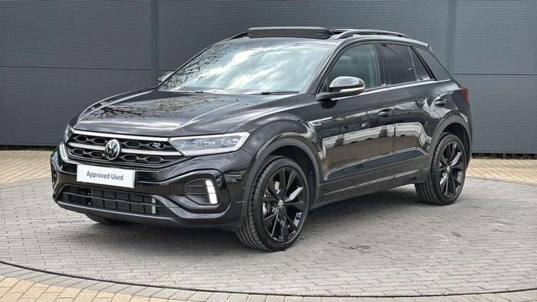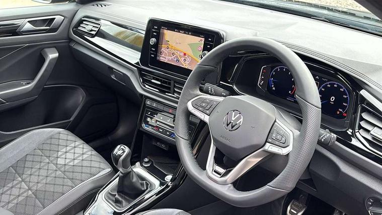 10.25" Digital cockpit pro, Advanced driver attention and drowsiness monitor, Emergency call service, Lane keeping system Lane Assist, Mobile phone interface, Modified key software - reduce switch off time for key status change to Long no motion, Online services, Park assist including front and rear parking sensors, Power assisted speed sensitive steering, Rear view camera, Service interval indicator, Tailgate/trunk lid release from outside, Think blue trainer driver tips and journey analysis, Warning sound and light for front seatbelts unfastened, Wireless app connect, Battery regeneration during braking, Rear shock absorption chassis with increased ride height, Start/stop function with battery regeneration, DAB Digital radio, Diversity antenna for FM reception, Music playback - MP3, WMA and AAC files, SD card slot, Simultaneous pairing of 2 compatible mobile devices, Title and cover art display, We Connect and We Connect Plus functionality, Advanced dynamic light assist for LED matrix headlights, Auto dimming interior rear view mirror, Automatic hazard lights activation under emergency braking, Black roof rails, Dynamic cornering light, Dynamic headlight range control with self adjusting whilst driving, Electrically adjustable and heated door mirrors, Extended roof spoiler, Exterior ambient lighting, Exterior mirrors aspherical on driver side, convex on front passenger side, External USB type C socket and charging sockets, Front windscreen wiper with intermittent wipe and 4 position delay, Heated rear window, Illuminated front grille, IQ LED matrix headlights, LED 3rd brake light, LED rear number plate lights, LED rear tail lights with dynamic turn signal, LED separate daytime running light, Light mode for poor weather, rain, fog or snow, Power windows with comfort operation and circuit breaker, Privacy glass for rear side windows and rear window, R-Line design body coloured bumpers, Rain sensor, Rear exhaust tailpipe, Rear fog light on one side and reversing lights on both sides, Rear side wing doors, Rear wash/wipe with intermittent wipe setting, Remote electrically foldable door mirrors, puddle lights and reverse activated passenger's door mirror, Tilting and sliding panoramic sunroof with rear panoramic sunroof, 12V power socket in centre console, 3 rear head restraints, 3 seat bench in 2nd row, 4 load lashing points in luggage compartment, Air care climatronic air conditoning system with active combination filter and 2-zone temperature control, Chrome plated radiator grille inserts, air vent surrounds and light switch surrounds, Door and side trim panel with leatherette insert, Drawer under drivers seat, Front + rear carpet mats, Front centre armrest, Front comfort sports seats, Front cupholders x 2, Front footwell illumination, Front reading light, Front scuff plates with R Line logo, Front seat back storage pockets, Glove compartment door with light, Instrument lighting, white adjustable panel illumination, Interior ambient lighting and surround lighting, Interior light delay, Isofix child seat preparation, Leather gearshift handle, Load-through provision with cup holder when folded down ('Unsplit rear seat bench, split folding backrest, with centre armrest), Luggage compartment lighting, Non-folding front passenger seat backrest, Single front passenger seat, Stainless steel pedals, Storage compartment in left and right luggage area, Storage compartment in rear doors, Storage compartments in driver and front passenger doors, Sunvisors with illuminated vanity mirrors, Variable boot floor, height adjustable and removable, Black design pack - T-Roc black edition plus, Easy open package with safelock - T-Roc, Sport pack with sports suspension - T-Roc, 3 point height adj front seatbelts + pretensioners, 3 point seatbelts in outer rear with ECE label, ABS, Child locks on rear doors, City emergency braking and pedestrian monitoring, Driver and front passenger airbag with front passenger airbag deactivation, Driver and front passenger safety-optimised head restraints, Drivers seatbelt reminder, Electronic parking brake, Electronic Stability Control (ESC) inc EDL (Electronic Differential Lock) and ASR (Traction Control), Front and rear passengers curtain airbag system including front side airbags, Front disc brakes, Hill start assist, Predictive pedestrian protection, Rear disc brakes, Two tone horn, Tyre pressure loss indicator, Volkswagen roadside assistance, Keyless locking and starting system keyless access with safelock, Gloss deep iron dash trim, 19" Misano black diamond turned alloy wheels with low rolling resistance and anti theft wheel bolts, Tool kit, Trims for alloy wheels, Tyre mobility kit including compressor and sealing foam,