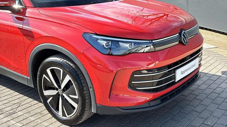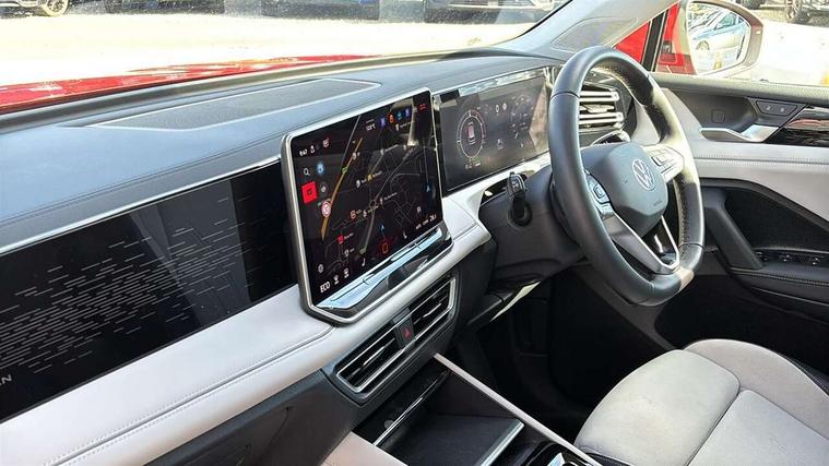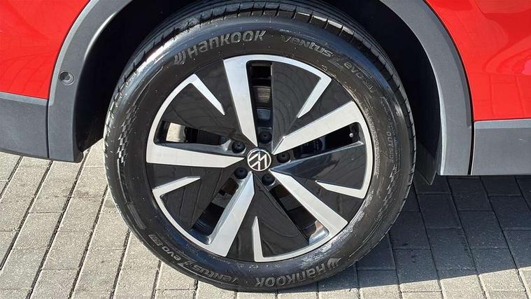Adaptive cruise control (ACC), Advanced driver attention and drowsiness monitor, Bluetooth mobile phone interface, Car2X technology, Comfort drive travel assist, lane keeping system, lane assist and emergency assist, Digital Cockpit Pro - 10.25" high resolution dash display screen with customisable menus and information, Dynamic road sign display, E-Sim card for online connectivity, eCall emergency call service, Front Assist - Autonomous emergency braking with pedestrian and cyclist monitoring, Lane change system, Side assist, Rear traffic alert and Exit warning system, Multifunction front facing camera, Oncoming vehicle braking when turning including swerve support, Park assist pro with park distance control (Remote park assist), Power assisted steering with speed sensitive, Start/stop system with regenerative braking, Warning signal and warning light for front and rear seatbelts not fastened, Wireless App-Connect, Adaptive chassis control DCC pro includes driving mode selection, Charging cable Mode 3 Type 2 / 3 (16A), Front shock absorption, Front wheel drive, Rear shock absorption, Digital radio reception (DAB), Diversity antenna for FM reception, Air intake with Chrome trim, Ambient lighting with logo projection, Auto dimming interior rear view mirror, Automatic headlight control system, Body colored bumpers in R-Line style, Body coloured door handles, Body-coloured exterior mirror housings, Chrome moldings on the side windows, Coming/leaving home lighting function, Heat insulating glass in side and rear windows, Heated rear window, Heated windscreen washer jets, High level 3rd brake light, Illuminated door handle recesses, Illuminated lightline between headlamps, Laminated safety glass from B-pillar backwards 90% tinted, Laminated safety glass windshield, LED Day time running light, Rain sensor windscreen wipers, Rear fog light on one side, reversing light on both sides, Rear side wing doors, Rear wiper, Silver roof rails, 12V outlet in center console rear and in luggage compartment, 12V socket in centre console, 3 bench rear seats in 2nd row, Air care climatronic 3 zone air conditioning system with rear air conditioning control panel, Carpet mats, front and rear, Centre console with illuminated storage compartment with sliding cover and two drinks holders, Ceramique headlining, Chrome elements on the mirror switch and power window switches and door pulls, Door and side trim panel with leatherette insert, Door sill protectors, Front centre armrest, Interior ambient lighting with 30 colour options, ISOFIX anchors for child seats on outer rear seats and front passenger seat compatible with i-Size, Mechanical rear seat release, Power adjustable lumbar support in front, Rear bench seat, split folding, longitudinally movable and folding with load-through hatch and centre armrest, Safety optimised front head restraints, Single front passenger seat, Sports comfort seats in front, Sun visors with illuminated vanity mirrors, Three rear head restraints, Variable luggage compartment floor, Comfort package with park assist plus and Safelock - Tiguan, Driver assistance package - Tiguan, 3 point seat belt for centre rear seats, 3 Point seat belts in front with pretensioners, 3 point seatbelts in outer rear with ECE label, Driver and front passenger airbag with front passenger airbag deactivation, Electronic parking brake with auto hold, Front and rear curtain airbags, Front and rear side airbags, Front centre airbag, Front disc brakes, Hill start assist, Manual child proof rear door locks, Rear disc brakes, Two tone horn, Warning triangle, Decorative inserts Cross in dash and front door panels, Interior door handle in matte chrome, Soul instrument panel, Tyre mobility kit including compressor and sealing foam,