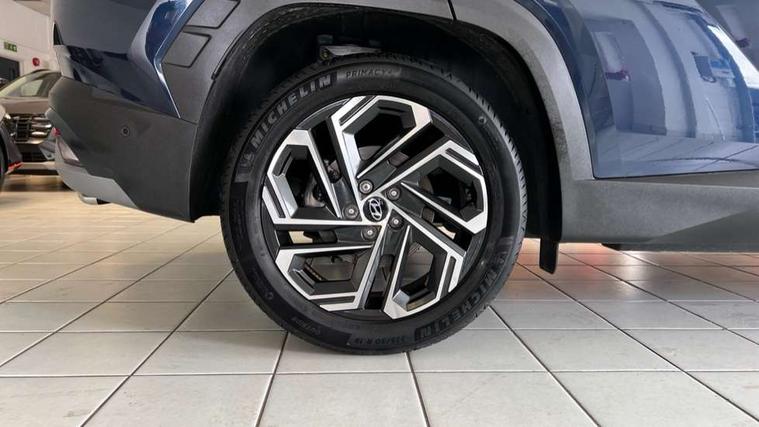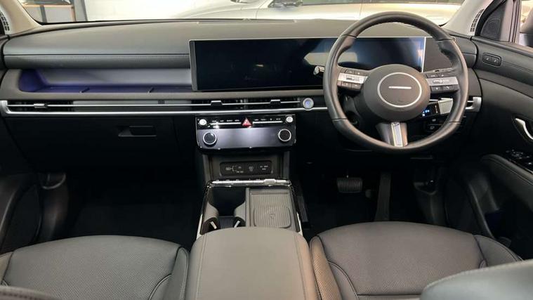 12.3" LCD display with driver's supervision instrument cluster, 12.3" widescreen navigation with bluelink and mapcare, Blind spot view monitor, Bluetooth system, Cruise control - smart adaptive speed control with stop and go function, Digital clock, Drive mode selector, Driver attention warning, E-call, Emergency stop signalling system, Forward Collision Avoidance Assist (FCA) - Car, Pedestrian and Cycle, Forward Collision Avoidance Assist Junction Turning (FCAJX), Front and rear parking sensors, Front, rear and side parking distance warning, Highway Driving Assist (HDA), Hyundai road side assistance, Intelligent speed limit assist, Lane follow assist, Lane keep assist, Over the air updates(OTA), Parking collision avoidance assist (PCA), PAS, Rear camera and guidance parking system, Rev counter, Smart power tailgate, Surround view monitor, Tailgate open warning light, Trip computer, Trip odometer, Voice recognition, Water temperature gauge, Windscreen washer fluid sensor and warning indicator, Wireless Apple CarPlay/Android Auto, Wireless phone charging pad, 2 front and 2 rear USB-C ports, DAB Digital radio, Krell premium audio system with 8 speakers and subwoofer, Steering wheel mounted audio/phone controls, Adjustable intermittent front windscreen wipers with aero wiper blade, Auto dimming rear view mirror, Automatic defog system, Automatic headlights with dusk sensor, Automatic windscreen wipers with rain sensor, Black wheel arches, Body colour bumpers, Body colour door mirrors with integrated indicators, Body colour exterior door handles, Electric tilt/slide panoramic sunroof, Electrically adjustable, heated and power folding door mirrors, Follow me home headlights, Front and rear electric windows with anti-trap mechanism and one touch control, Front fog lights, LED 3rd brake light, LED daytime running lights, LED rear lights, Matrix LED headlights, Positioning Lights - LED, Privacy glass - Rear windows and tailgate, Rear side wing doors, Rear wash/wipe with intermittent wipe setting, Roof rails, Tinted glass with windscreen shade band, Trailer stability assist, 12V power outlets in front console and luggage compartment, 3 seat bench in 2nd row, 40/20/40 split folding rear seat, 64 colours interior ambient lighting, Adjustable head restraints (Up and down), Cupholders in rear armrest, Door courtesy lights, Driver and passenger sunvisors with illuminated LED vanity mirrors, Driver's seat electric adjustments, Driver's seat memory, Front and rear door pockets, Front armrest with storage box, Front centre console and door bottle holders, Front passenger's seat electric adjustments, Heated front seats, Heated rear seats, Heated steering wheel, Height/reach adjustable steering column, Illuminated/air conditioned glove compartment, ISOFIX child seat anchorage points attached on outer rear seats, Leather upholstery, Leather wrapped steering wheel and gear knob, Luggage compartment lighting, Luggage cover, Luggage hooks, Luggage net, Map and reading lights, Rear seat remote folding function, Rear side window sunblind, Reclining rear seats, Retractable load cover, Single front passenger seat, Sunglasses holder, Three zone climate control, Touch sensitive climate controls with temperature dials, TUCSON branded metal door scuff plate, Underfloor boot compartment, Ventilated front seats, Trailer wiring package - Tucson, 3x3 point rear seatbelts, Active bonnet, Airbag - Front, front side, curtain and centre front airbags, Anti-lock brake system (ABS), Brake assist function, Childproof rear door locks, Curtain airbag roll over sensor, Downhill brake control, Electric parking brake, Electronic stability control, Front and rear seatbelt reminder, Front passenger airbag deactivation switch, Front seatbelt pretensioners, Hill start assist control (HAC), Multi-Collision braking, Outer rear seatbelt height adjustment, Seatbelt height adjustment for front seats, Traction control, Tyre pressure monitoring system with individual tyre pressure display - TPMS, Vehicle stability management, Deadlocks, Immobiliser, Locking wheel nuts, Remote control central locking, Smart key with keyless entry and engine start/stop button, Speed sensitive auto door locking, Thatcham category 1 alarm, 19" Alloy wheels, Tyre repair kit,