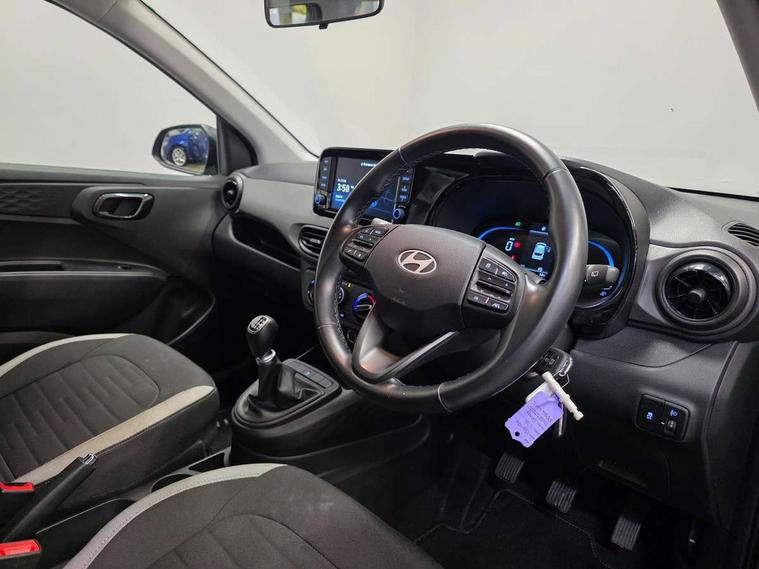 Apple car play/Android Auto, Bluelink mobile remote connectivity, Bluetooth connectivity with voice recognition, Cruise control, Driver attention alert system, eCall emergency call system, Forward Collision-Avoidance Assist (FCA) - Pedestrian/Cyclist, Front USB-C charging and USB-A data, Full-width 4.2" LCD instrument cluster, Intelligent speed limit assist, Lane departure warning system with lane keep assist - LKAS, Lane follow assist, PAS, Rear parking sensors, Rear view camera with guidelines, Roadside assistance, Start/Stop function, Tailgate, Trip computer, 2 front/2 rear speakers, Rear USB-C device charger, Steering wheel audio, phone and cruise controls, 1 speed non intermittent rear windscreen wiper, Black finish on B pillars, Body colour door handles, Body coloured bumpers, Body coloured door mirrors, Electric front windows, Electric rear windows, Electrically adjustable and heated door mirrors, Flat metal emblem, Front grille in matte black, Front intermittent wipers, Halogen daytime running lights, Halogen headlights, Headlights inner with Black Blade design, Heated rear window, High beam assist, Indicator light on door mirrors, Rear roof spoiler with integrated LED brake light, Rear side wing doors, 12v power outlet - front, 3 seat bench in 2nd row, 60/40 split folding flat to floor rear seats, Air conditioning, Auto light control, Bottle holders in front/rear doors + front centre console, Cabin and luggage compartment interior lighting, Cloth upholstery, Driver + passenger vanity mirrors, Driver's seat height adjustment, Driver/passenger sunvisors with ticket holders, Floor mats, Front door pockets, Front Head Restraints - Vertical and Horizontal Adjustment, Glove compartment, Height adjustable steering column, Isofix child seat preparation, Leather multifunction steering wheel, Rear door pockets, Single front passenger seat, Vertical adjustment rear head restraints, 3x3 point rear seatbelts, Airbags - front, front side and curtain airbags, Anti-lock brake system (ABS), Autonomous emergency braking (AEB) with forward collision warning system, Brake assist function, Childproof rear door locks, Electronic stability control, Front and rear seatbelt reminder, Front seatbelt pretensioners, Hill start assist control (HAC), Passenger airbag deactivate switch, Traction control, Tyre pressure monitoring system, Immobiliser, Perimeter alarm, Rear occupant alert, Remote central locking, Second remote key, Speed sensitive auto door locking, 15" Alloy wheels, Tyre repair kit,