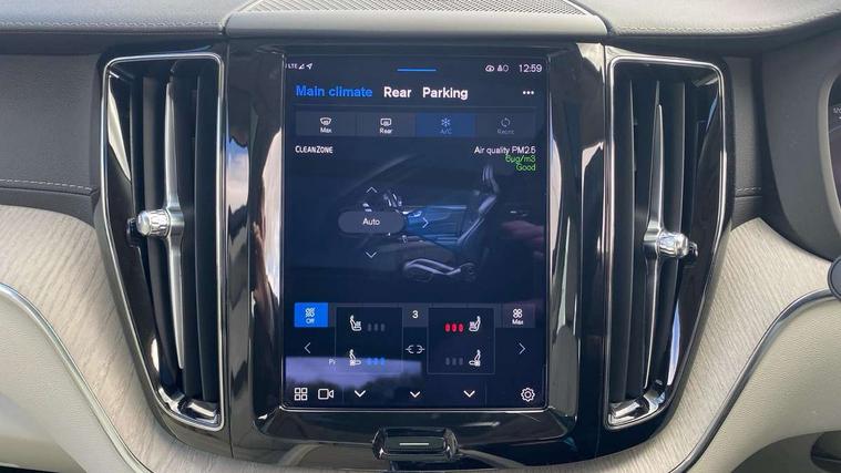 12.3" Active TFT crystal driver's instrument display, 9" centre console touch screen, Adjustable steering wheel force, Bluetooth handsfree system, Drive mode selector, Driver alert control with lane keeping aid, Emergency services call system, Front and rear park assist, Google Automotive Services, Oncoming Lane Mitigation, Service interval indicator, Speed limiter, Speed sensitive steering, Trip computer, Volvo on call with App, Wireless/Inductive Mobile Phone Charging, 8 speed automatic transmission with start/stop + manual change functions, Dynamic chassis, DAB Digital radio, Adaptive brake lights with high level LED brake lights, Auto dimming interior + exterior mirrors, Automatic headlight levelling system, Automatic LED Headlights + Active high beam incorporating daytime running lights, Chrome deco lower front bumper, Chrome lower side moulding trim, Chrome window surround, Colour co-ordinated door mirrors, Electric adjustable/heated/auto power folding door mirrors, Electric front+rear windows, Front aluminium tread plates, High gloss black grille with chrome inserts, Home safe and approach lighting, Integrated roof rails in Chrome, Puddle lights, Rain sensor with automatic windscreen wiper activation, Rear Bumper Chrome Insert, Rear side wing doors, Rear wiper, Roof antenna, Roof spoiler, Tinted windscreen, Visible VIN plate, 12V socket in front tunnel console and luggage compartment, 3 seat bench in 2nd row, A-pillar parking ticket holder, B Pillar ventilation, Bright metal luggage threshold, Centre armrest storage illumination, Centre console cupholders and storage, Floor mats, Front and rear door pocket and front cupholder illumination, Front footwell and side step illumination, Front reading lights, Front seat cushion extensions, Head restraints for all seats, Heated front seats, Height/reach adjustable steering column, High gloss black steering wheel remote infotainment controls, Illuminated glovebox, Illuminated luggage compartment, Illuminated vanity mirrors + ticket holder, Load cover, Load protection net, Multi directional lumbar support, Orrefors Crystal gear lever knob, Rear armrest with cupholder, Rear footwell and side step illumination, Rear seat concealed storage, Single front passenger seat, Tailgate illumination and ambient door lighting, Underfloor stowage compartment, Versatile split folding rear seat - 60/40, Seat pack - XC60 R-Design Pro/Inscription Pro, 5 three point seatbelts, City safety with steering support with Pedestrian + cyclist + large animal detection + front collision warning with full auto brake, Drivers knee airbag, Dual stage driver/passenger airbags, Electronic parking brake with auto hold, First aid kit, Hill descent control, Hill start assist, IC (Inflatable Curtains) - Full Length, Mechanical child locks on rear doors, Passenger airbag cut-off device, Road sign information display, Run off Road Mitigation, Run off Road Protection, Seatbelt reminder and pretensioners, SIPS (Side Impact Protection System), SIPS airbags, Slippery road and hazard light alert, Stability and Traction Control with Spin control, Engine Drag Control and Corner Traction Control, Tyre pressure monitoring system, Vehicle deceleration control with Anti-lock Brake System, Electronic Brake Distribution and Emergency Brake Assist, Warning triangle, WHIPS whiplash protection system - front, Anti-theft alarm including immobiliser/volume sensor + level sensor, Care key with user defined top speed, Key integrated remote control central locking + fuel flap with deadlocking system and auto open/close power windows, Keyless Drive (includes Keyless Entry and Keyless Start) with Handsfree Tailgate Opening/Closing, Locking wheel nuts, Private locking for tailgate, Tailored instrument panel with contrast stitching,
