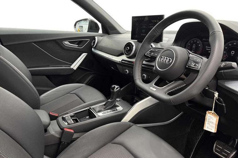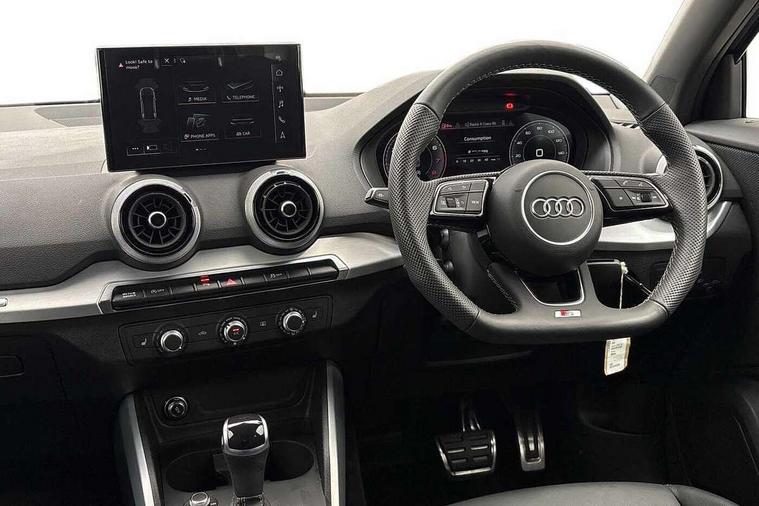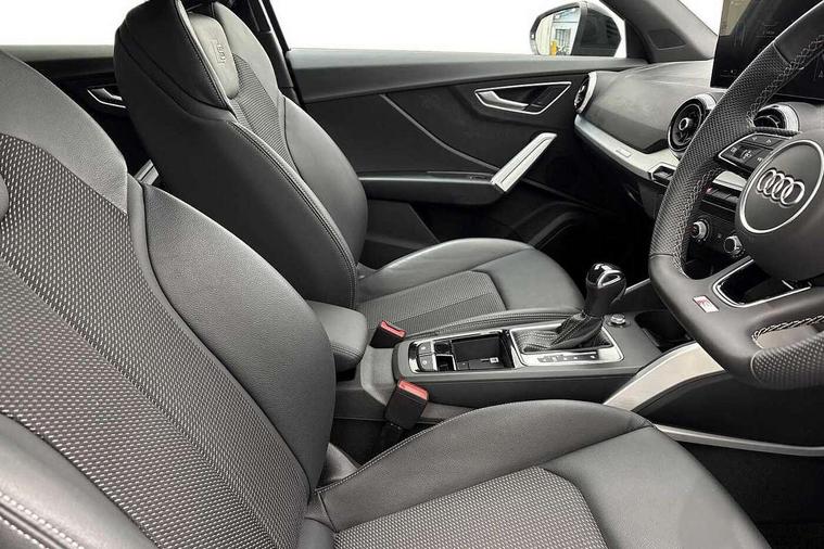 3D map display, Audi connect navigation and infotainment includes innovative services, Audi connect remote and control connects your vehicle to your smartphone, Audi drive select: S tronic - power steering assistance + engine + gearshift (modes: comfort, auto, dynamic, efficiency, individual), Audi smartphone interface - Apple carplay/Android Auto, USB connect, 2xSDXC card readers, voice control for navi, telephone, music and 3rd party apps, Audi virtual cockpit, Automatic start/stop system with recuperation, Bluetooth interface includes bluetooth audio streaming, Camera based traffic sign recognition, Cruise control, Distraction and Fatigue warning, E-call, Jukebox hard drive memory for music (10GB), Lane departure warning, MMI navigation plus with 8.8" touchscreen, Natural voice recognition, Power operated tailgate, Progressive steering, Rear parking sensors, Sport suspension, 6 passive loudspeakers, DAB Digital radio, USB type C port, Audi beam, Auto dimming rear view mirror, Black window trims, Bumper in full body colour paint finish, Electrically adjustable, folding, auto dimming and heated door mirrors with integrated LED side indicators, Front windscreen with grey tinted sunband, LED daytime running lights, LED headlights with dipped beam, high beam, position lights, indicators, LED rear lights, LED third brake light, Privacy glass - dark tinted rear and rear side windows from B-pillar backwards, Rear side wing doors, Rear wiper, Variable front intermittent wipers, Wheel arch trims in manhattan grey, 12V socket in front, 3 seat bench in 2nd row, 3 spoke flat bottomed multi-function leather sport steering wheel with gear shift paddles, 4-way electric lumbar support for front seats including manual seat height adjustment for both front seats, 60/40 split folding rear seat bench, Black carpets, Black cloth headlining, Front and rear head restraints, Front centre armrest, Front sport seats, Front/rear floor mats, Height/reach adjust steering wheel, Illuminated door sill trims with S logo, ISOFIX child seat mounting in front passenger and rear outer seats, Manual air conditioning, Single front passenger seat, Stainless steel pedals, Black styling pack - Q2, 3x3 point rear seatbelts, 6 airbags - Front, curtain and front side airbags, Electromechanical parking brake, Electronic stabilisation control including ABS, ASR and EDL, Front passenger airbag deactivation, Hill hold assist, Pre-sense front with pedestrian recognition, Seatbelt monitoring, Tyre pressure warning light with visual and acoustic warning, Warning triangle and first aid kit, Anti theft wheel bolts, Electronically operated child locks, Remote central door locking, Thatcham category 1 alarm, Aluminium interior element, Black dashboard, Gloss black centre console, Matt brushed aluminium trim inlays, Tool kit,