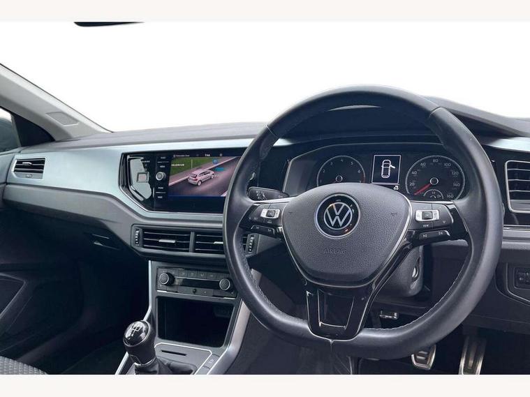Cruise control + speed limiter, Digital clock, Driver alert system, Emergency call service, Multifunction computer plus, Power assisted speed sensitive steering, Speedo and rev counter, electronic odometer, trip, service interval display and fuel gauge, Start/stop system, Volkswagen connect, Warning buzzer and light for front seatbelts unfastened, Wireless app connect, Battery regeneration during braking, Galvanished body, Diversity antenna for FM reception, Front and rear 6 speakers, Active aluminium scuff plates, Active badge on B Pillar, Black grille with chrome surround, Black radiator grille with chrome louvres, Body colour bumpers, Body colour door handles, Body colour door mirrors with integrated indicators, Body colour rear spoiler, Body coloured side sills, Electric front windows, Electrically adjustable and heated door mirrors with reverse activated kerb view adjustment on passenger's side, Front windscreen washers and wipers with 4 speed intermittent delay, Heat insulating rear tinted glass from B-pillar backwards approx 65% tinted, Heated rear window with auto timer, High level 3rd brake light, LED daytime running lights, LED rear number plate lights, Rear electric windows, Rear windscreen washer and wiper with interval delay, reverse activated, 2 bag hooks in luggage compartment, 2 front and 2 rear reading lights, 2 front cupholders and 12 V socket with cover, 3 rear head restraints, 4 grab handles, 60/40 split folding rear seat, Ambient lighting, Centre console storage with open storage compartment, Chrome interior door handles, Climate control - 2 zone electronic air conditioning with automatic air recirculation and allergy filter, Driver and front passenger seat height adjustment, Driver and front passenger sunvisors with illuminated vanity mirrors, Dust/pollen filter, Folding rear seat backrest, Front + rear carpet mats, Front head restraints, Front seat backrest storage pockets, Gear lever gaiter in black trim surround, Glovebox, Handbrake grip button in chrome effect, Height/reach adjustable steering column, Instrument lighting, adjustable panel illumination, Interior light with delay, Isofix Preparation 2 Rear child seats, Leather gear knob and handbrake grip, Leather multifunction steering wheel, Luggage compartment cover, removable, Luggage compartment lighting, Luggage compartment with variable load floor, Lumbar adjustment for front seats, Special Active Waveform cloth upholstery, Stainless steel foot pedals, Storage compartment in front doors, Storage compartment in rear doors, Storage compartment under front seats, Sunglasses holder, Discover media navigation system with 8" display including streaming and internet pack - Polo, Light and sight pack - Polo, Winter pack - Polo, 3 point height adj front seatbelts + pretensioners, 3x3 point rear seatbelts, ABS, Automatic post collision braking, Driver/front passenger airbag, Drivers and front passengers safety optimised head restraints, ESP with EDL + ASR, Front and rear passenger curtain airbags, Front disc brakes and rear drum brakes, Front passenger airbag deactivation, Front seat side impact airbags, HBA (Hydraulic Brake Assist), Hill hold control, Single tone horn, Tyre pressure monitoring system, Alarm with interior protection and deactivation via infotainment system, Electronic engine immobiliser, Remote central locking with 2 remote folding keys, Air vents in High gloss black, Limestone grey decorative inserts, 15" Galway alloy wheels with anti theft wheel bolts,