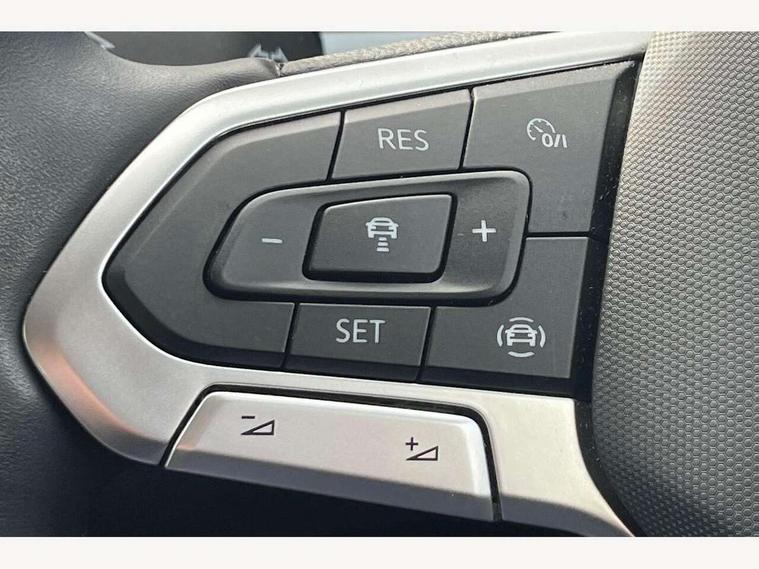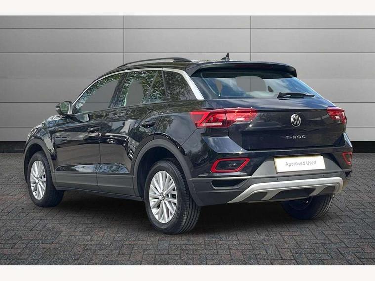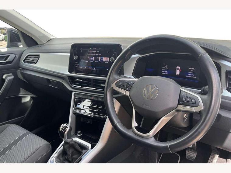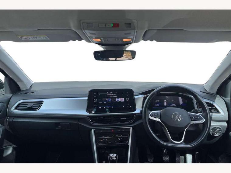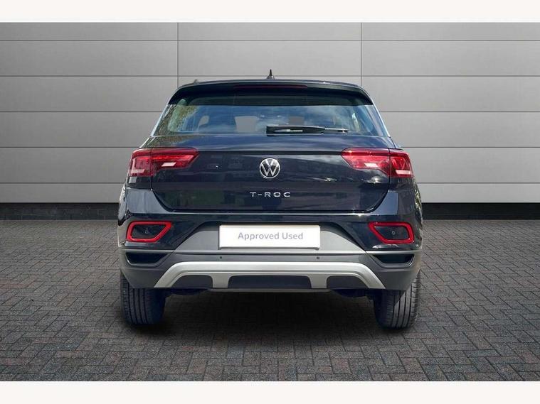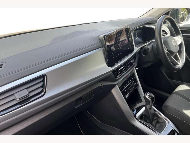 Bluetooth mobile phone interface, Driver alert system with fatigue detection, Driver tips and journey analysis, Emergency call service, Lane keeping system Lane Assist, Modified key software - reduce switch off time for key status change to Long no motion, Online services, Park assist including front and rear parking sensors, Power assisted speed sensitive steering, Service interval indicator, Tailgate/trunk lid release from outside, Think blue trainer driver tips and journey analysis, Warning sound and light for front seatbelts unfastened, Wireless app connect, Battery regeneration during braking, Front shock absorption, Rear shock absorption chassis with increased ride height, Start/stop function with battery regeneration, DAB Digital radio, Diversity antenna for FM reception, Front and rear 6 speakers, Music playback - MP3, WMA and AAC files, Premium USB cable in choice of either Apple or Android smartphone compatibility, SD card slot, Simultaneous pairing of 2 compatible mobile devices, Title and cover art display, We Connect and We Connect Plus functionality, 3rd brake light, Auto dimming interior rear view mirror, Automatic hazard lights activation under emergency braking, Automatic headlight control with LED separate daytime running lights with coming/leaving home function, Black roof rails, Body coloured bumpers and radiator grille with chrome trim and front fog lamps with chrome bezel, Body coloured exterior mirror housings and door handles, Extended roof spoiler, Exterior mirrors aspherical on driver side, convex on front passenger side, External USB type C socket and charging sockets, Front windscreen wiper with intermittent wipe and 4 position delay, Heated rear window, LED Headlights, LED rear combination lamps, LED rear number plate lights, LED tail lamp rear comination lamps, Power windows with comfort operation and circuit breaker, Rain sensor, Rear exhaust tailpipe, Rear fog light on one side and reversing lights on both sides, Rear side wing doors, Rear wash/wipe with intermittent wipe setting, Remote electrically foldable door mirrors, puddle lights and reverse activated passenger's door mirror, 12V power socket in centre console, 3 rear head restraints, 3 seat bench in 2nd row, 4 load lashing points in luggage compartment, Air care climatronic air conditoning system with active combination filter and 2-zone temperature control, Ambient lighting with mirror logo projection, Cloth upholstery, Door and side trim panel in cloth, Drawer under drivers seat, Driver/front passenger seat height adjustment, Front centre armrest, Front comfort sports seats, Front cupholders x 2, Front reading light, Instrument lighting, white adjustable panel illumination, Interior light delay, Isofix child seat preparation, Leather gearshift handle, Load-through provision with cup holder when folded down ('Unsplit rear seat bench, split folding backrest, with centre armrest), Luggage compartment lighting, Lumbar support for driver's and front passengers seat, Non-folding front passenger seat backrest, Single front passenger seat, Storage compartment in left and right luggage area, Storage compartment in rear doors, Storage compartments in driver and front passenger doors, Sunvisors with illuminated vanity mirrors, Variable boot floor, height adjustable and removable, Driver assistance pack without proactive passenger protection - T-Roc, 3 point height adj front seatbelts + pretensioners, 3 point seatbelts in outer rear with ECE label, ABS, Child locks on rear doors, Driver and front passenger airbag with front passenger airbag deactivation, Driver and front passenger safety-optimised head restraints, Drivers seatbelt reminder, Electronic parking brake, Electronic Stability Control (ESC) inc EDL (Electronic Differential Lock) and ASR (Traction Control), Front and rear passengers curtain airbag system including front side airbags, Front assist with city emergency braking and pedestrian monitoring, Front disc brakes, Front seat side impact airbags, Hill start assist, Predictive pedestrian protection, Rear disc brakes, Single tone horn, Tyre pressure loss indicator, Volkswagen roadside assistance, Alarm with interior protection, Anti-theft alarm system with interior monitoring, backup horn, and towing protection, Remote central locking with SAFELOCK, radio remote control with 2 remote control folding keys, Pewter matt decorative inserts for intrument panel, centre console and door panels at the front, Trims for alloy wheels,