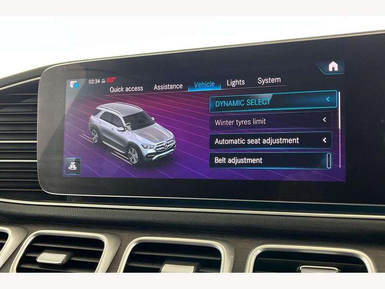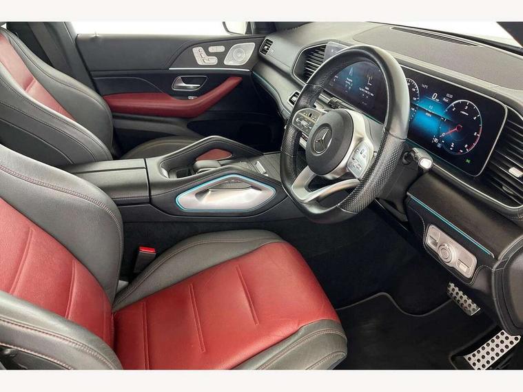 Attention assist, Brake wear warning display, Cockpit display 12.3" widescreen digital instrument cluster, Direct steer speed sensitive steering, DYNAMIC SELECT with a choice of driving modes (ECO, Comfort, Sport and Individual), Easy-pack tailgate - Powered opening/closing automatically, ECO start/stop function, Geofencing, Hard-disk navigation, Hey Mercedes Voice activation, High resolution 12.3" multimedia colour display, MBUX augmented reality for navigation, Mercedes me connect including emergency call system, accident recovery, breakdown and maintenance management, Outside temperature display, Remote boot release, Service indicator (ASSYST), Smartphone integration with Apple CarPlay and Android auto, Status display for rear seat belts in instrument cluster, Traffic Sign Assist, Traffic sign recognition including wrong way warning function and display of posted speed limits in the instrument cluster, Trip computer in multifunction display showing current fuel consumption, Wireless charging system for mobile devices, 85 litre fuel tank, Agility control suspension with selective damping system and lowered by 15mm, Diesel particulate filter (DPF), Incorrect fuelling protection, Additional USB connection, Burmester surround sound system, DAB Digital radio, Dual bluetooth interface, 2 USB ports (type C), MBUX multimedia system with DAB digital radio and touchpad including satellite navigation, Adaptive brake lights, Adaptive high beam assist, Aerial for GPS, Aluminium look, illuminated running boards with rubber studs, AMG bodystyling front and rear aprons and side skirts in polished aluminium, Body colour door mirrors, Body coloured bumpers, Electric windows with one touch opening/closing and obstruction sensors, Exterior mirrors heated and electronically adjustable, Front green tinted glass, LED rear lights, Multi beam LED headlights, Panoramic sunroof, Privacy glass - heat insulating dark tinted glass, Radiator grille with integrated star and single louvre in matt iridium silver with chrome trim, Radio aerial integrated into rear window, Rain sensing windscreen wipers, Rear wiper, Roof rail system, Top surround of side windows in polished aluminium, Visible twin pipe exhaust system integrated into bumper, Waistline in polished aluminium, 3 spoke AMG multifunction steering wheel with touch control buttons, trimmed in black nappa leather with flattened bottom section, 3rd row of seats for 2 people, 4 way adjustable front head restraints and 2 way rear head restraints, 4 way lumbar support, 40:20:40 split folding rear seats, AMG brushed stainless steel sports pedals with rubber studs, AMG floor mats with AMG lettering, Artico man-made leather upper dashboard with contrast topstitching, Automatic child seat recognition sensor, Black fabric roof liner, Central stowage compartment with 12 V socket in centre console, Chrome door pins, Courtesy lights in rear grab handles with reading light functionality, Electric folding second row seats adjustments, Electronically adjustable three second row seats, Four way partially front electric seat adjustment, Front centre armrest with stowage compartment and illuminated grab handles, Gearshift paddles on steering wheel, Glasses compartment in overhead control panel, Glove compartment - lockable, air conditioned and illuminated, Heated front seats, Interior lighting - 64 colour Ambient lighting, Nappa leather upholstery, Seat occupancy sensor for front passenger seat, Second row three seats, Steering column manually adjustable for height and reach, Sunvisors with illuminated vanity mirrors, Thermotronic automatic 4 zone climate control, Touchpad, Air balance package - GLE, Anti theft Protection package - GLE, Driving assistance pack - GLE Premium Plus/GLE 53, Energizing comfort package - GLE, Keyless go comfort package - GLE, Memory package - GLE, Mirror package - GLE, Parking package with 360 camera - GLE, Active bonnet, Adaptive brake system with HOLD function and brake drying in the wet, Airbags - driver and front passenger, with extended adaptivity for front passenger airbag, Airbags - sidebag for driver and front passenger with combined thorax/pelvis bag, Airbags - windowbags, Anti-lock braking system (ABS), Childproof locks manually operated for rear doors and electrically operated for rear power windows, Drivers knee airbag, Electronic parking brake, Electronic Stability Programme (ESP), ISOFIX child seat attachment points two outer rear seats, Perforated front brake discs and brake calipers with Mercedes-Benz lettering, Pre-Safe anticipatory safety system, Three point rear seat belts, Tyre pressure monitoring system and loss warning system, Warning triangle and first aid kit, Alarm system/interior protection/immobiliser, Central locking with interior switch, automatic locking and crash sensor with emergency opening function, Chrome surround in electric key, Keyless entry, Dashboard and door, anthracite open pore oak wood trim, Trim - Centre console, anthracite open pore oak wood trim, 21" AMG multi spoke light alloy wheels painted in black with a high sheen finish, Summer tyres with noise reducing absorber, TIREFIT with tyre inflation compressor,