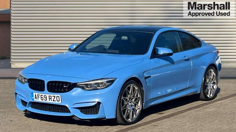 BMW service history, Brake pad wear indicator warning light, Check Control warning system for monitoring of lights and door/luggage compartment open warning, Condition based service, Controller and Control Display+8.8" monitor, Cruise control with brake assist, Electric Power Steering (EPS) with Servotronic, Enhanced bluetooth with wireless charging, iDrive touch controller with shortcut buttons, Instrument cluster with speedometer with miles per hour read out, tachometer and fuel gauge, Integrated owner's handbook, Lights on warning by audio warning signal when ignition is switched off, M drive manager for individual set up, Oil temperature gauge, On-Board Computer (OBC) comprising: average speed, average and current fuel consumption, and range, outside temperature display with acoustic warning, Optimum shift indicator, Service interval indicator, Wireless charging cradle in front centre armrest storage compartment, Adaptive M Sport suspension, Aluminium front suspension, Drive Performance Control, Five link rear suspension, M differential lock, 8 programmable favourite buttons, Auxiliary point for auxiliary devices, Bluetooth audio streaming, BMW professional radio/CD/MP3, DAB Digital radio, Electronic service booklet, Wi-Fi hot spot, Air breather, Auto dimming rear view mirror, Body colour bumpers, Body colour door handles, Body colour door mirrors, Carbon fibre reinforced plastic roof, Daytime running lights, Direction indicator, side repeaters, integrated in exterior mirrors, Door sill finishers, Dynamic brake lights, Electric adjustable heated door mirrors, Electric front and rear windows with fingertip open/close + anti-trap facility and comfort closing function, Exterior mirrors - electrically folding with anti-dazzle, Follow me home headlights, Green tinted heat insulating glass, Headlight beam throw control, Heated windscreen washer jets, High gloss black kidney grille, High gloss black M side strakes, High level third brake light, Illuminated M badge and model name with black high-gloss surround, Individual high gloss shadow line, LED direction indicator lenses, LED eyebrow light, M aerodynamic bodystyling, M rear spoiler integrated bootlid, M Sport exhaust finish with black chrome tailpipe finishers, Rain sensor including auto headlights activation, Shark fin antenna, Two part LED tailights in L-shape with components in smoked glass, brake light, LED turn indicator and rear fog light, Two speed adjustable intervals windscreen wipers, Visible VIN plate, Welcome lighting, 12V sockets in front centre console and passenger footwell, 3 spoke leather M sport multifunction sports steering wheel, 4 grab handles, Anthracite headlining, Armrest front sliding with folding storage compartment, Driver and front passenger seat heating, Dual zone climate control, Electrically adjustable front seats - driver seat with memory, Front and rear bottle holders integrated into door trim storage compartments, Front and rear side armrest integrated into door trim, Front interior light, Front seat backrest width adjustment, Full black panel display, Gearshift lever with M designation, Glovebox with lid, Integrated rear head restraints, ISOFIX child seat preparation+airbag deactivation, Lashing eyelets in boot, Leather gear and handbrake lever, Lightweight M sport seats with breakthrough elements in the seat back, Luggage compartment lighting, M specific running gear, M specific seats for driver and passenger lightweight construction with integrated headrests, M-specific rear seats with integrated two headrests, Reach + rake adjustable steering column, Rear backrest foldable and dividable 60:40, Storage compartment in rear centre console, Sunvisors with illuminated vanity mirrors and ticket pocket, Toolkit located in luggage compartment, Two front cupholders with removable oddments tray/lid, Velour floormats, Extended lights package - M Series, Media pack - Professional - M4, ABS/EBD, Automatic Stability Control (ASC), Battery safety cut-off, Brake assist, Brake drying, Brake energy regeneration, Braking pre-tensioning, Childproof rear door locks, Compound brake discs - inner vented, Cornering brake control (CBC), Crash Sensor - activates hazard/interior lighting + unlocks doors, Driver/Front Passenger airbags, DSC+, Dynamic brake control, Dynamic Traction Control - DTC, Front passenger airbag deactivation, Front pyrotechnic belt tensioners and belt force limiter, rear coaded belt buckles, Front side airbags, Hill start assist, ITS head airbags for front/rear, M dynamic mode, M sport seatbelt, Seat belt security check for driver, Side impact protection, Twin horns, Tyre pressure monitor, Warning triangle and first aid kit, Automatic drive away locking facility, Central locking switch for all doors, fuel filler cap and luggage compartment, Electronic immobiliser, Keyless start, Remote central locking, Remote control including integrated key with inset in chrome two, Remote control Thatcham category 1 alarm, Start/stop button with Comfort Go keyless engine start and auto Start/stop deactivation button, M mobility system (flat-tyre repair system),