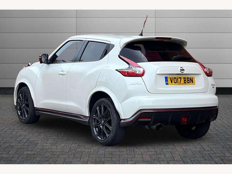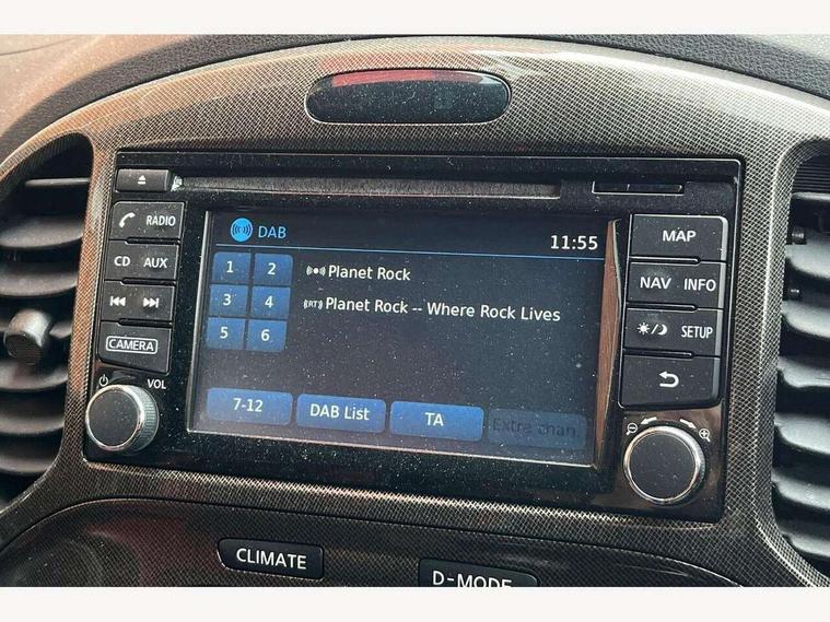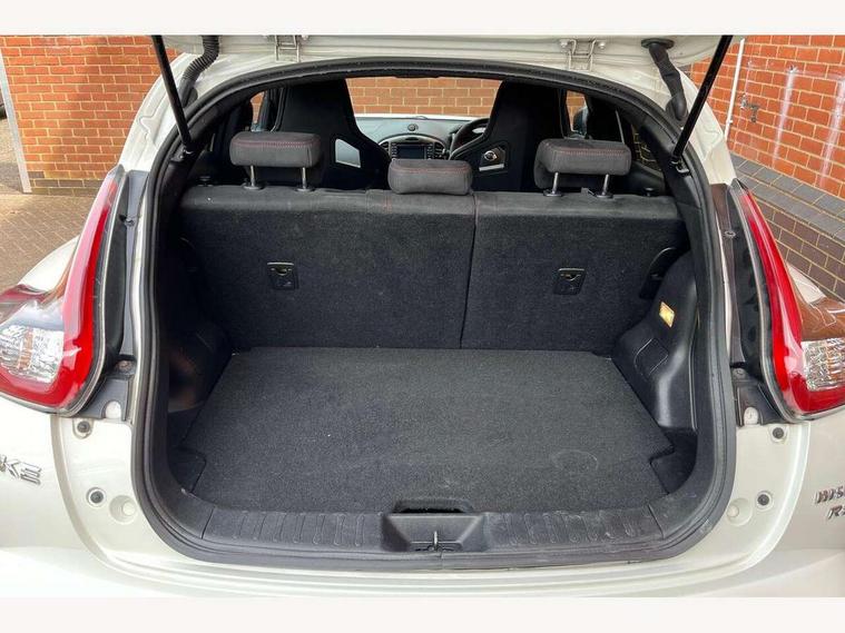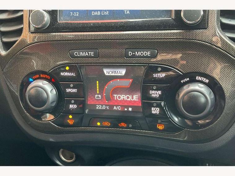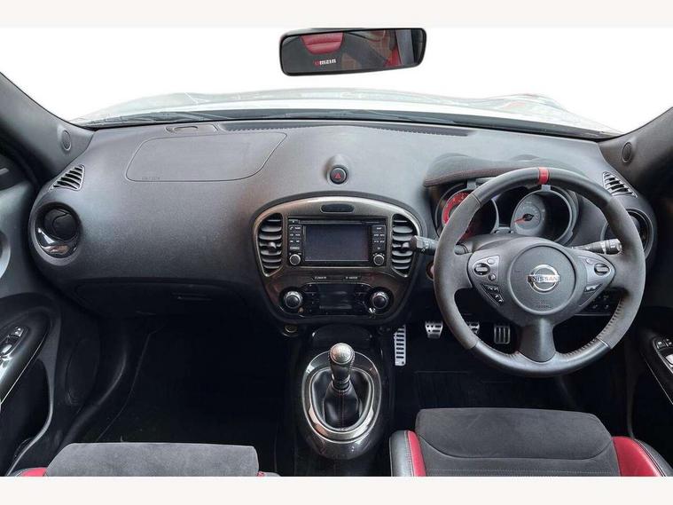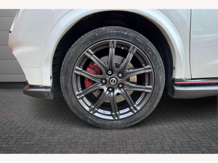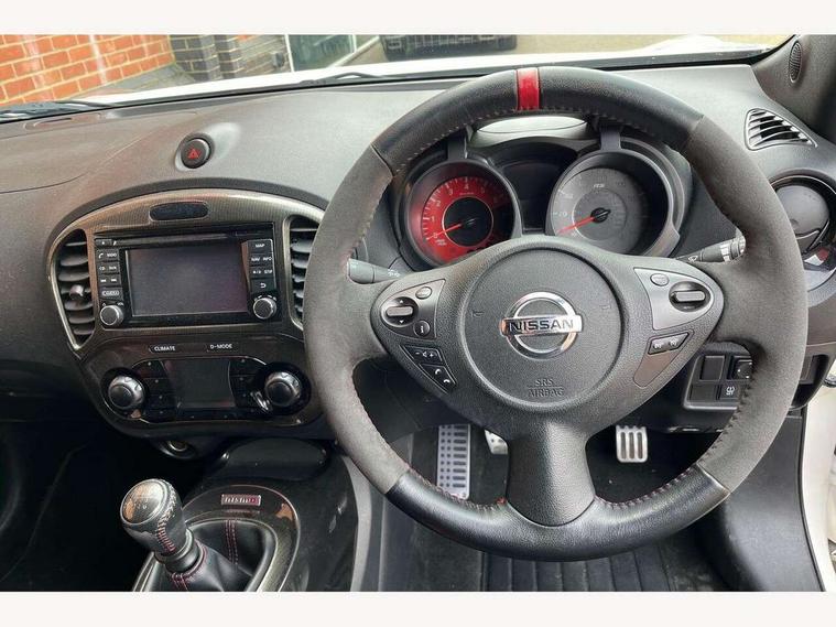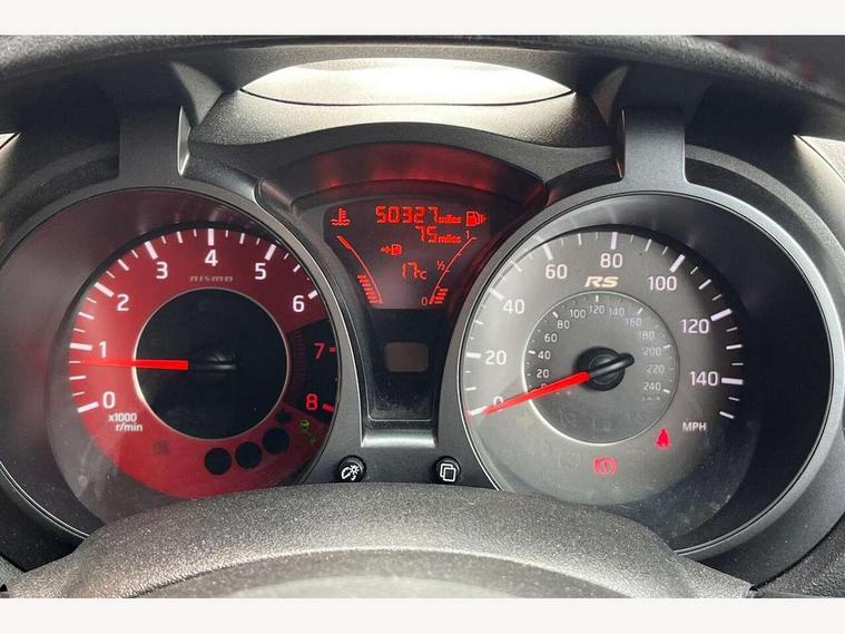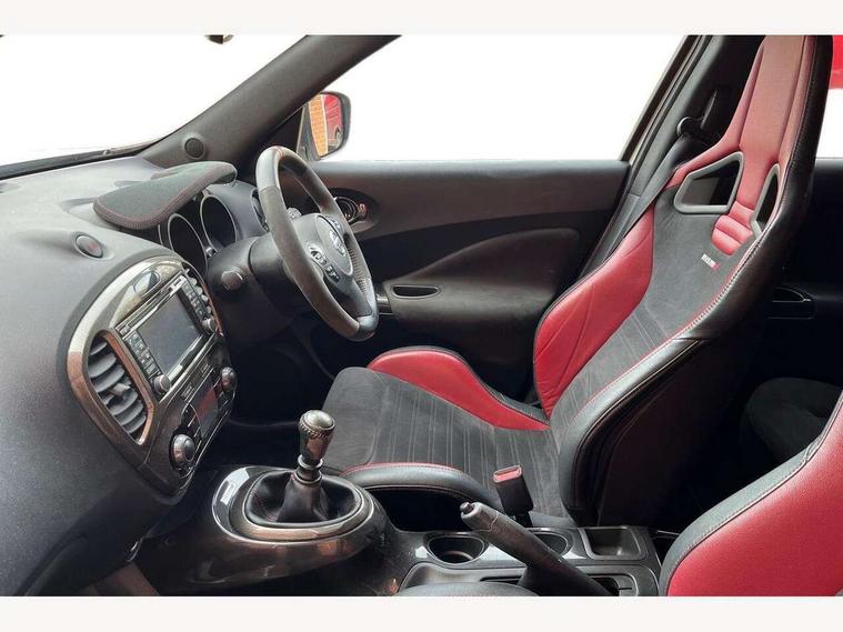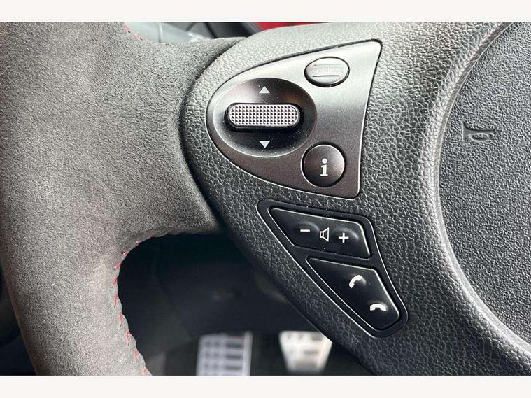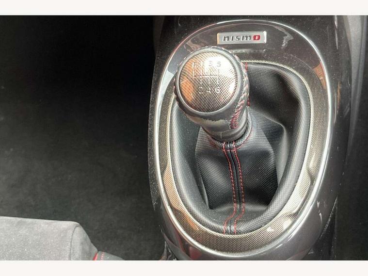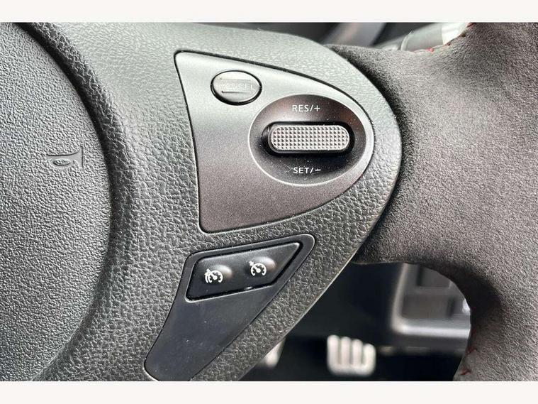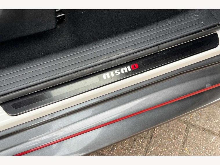 Bluetooth system, Colour rear view camera, Cruise control + speed limiter, Electric speed sensitive power steering, Nissan connect sat nav system, Push button starter, Service interval indicator, Trip computer, 6 speakers, Aux input, DAB Digital radio, Steering wheel mounted audio controls, Stereo radio/CD player and MP3 facility, USB port, 2 speed wipers+variable intermittent wipe, Automatic headlights, Body colour bumpers, Body colour door handles, Dusk sensor, Electric door mirrors, Electric folding door mirrors, Electric front/rear windows, Front fog lights, Heated door mirrors, LED daytime running lights, Privacy glass, Rain sensor, Rear diffuser, Rear wiper, Sports exhaust system, 12V socket, 60/40 split folding rear seat, Alcantara upholstery, Alcantara/leather steering wheel, Climate control, Front armrest, Front cupholders x 2, Front door pockets with bottle holders, Front head restraints, Front seat belt pre-tensioners with load limiters, Gear shift indicator, Glovebox, Heated front seats, Height adjustable driver's seat, Isofix child seat preparation, Luggage area under floor storage box, Map reading lamp, Nismo front sports seats, Passenger seat back pocket, Pollen filter, Rear headrests, Rear tonneau cover integrated into tailgate, Steering wheel rake adjustment, ABS + EBD + EBA, Child locks on rear doors, Driver and passenger airbags, Driver and passenger side airbags, ESP + traction control, Front and rear curtain airbags, Height adjustable front seatbelts, Passenger airbag deactivate switch, Red brake calipers, Three 3 point rear seatbelts, Tyre pressure monitoring system, VDC Dynamic Vehicle Control, Warning triangle and first aid kit, Alarm, Immobiliser, Intelligent Key, Remote central locking, 18" Alloy wheels, Tyre repair kit,