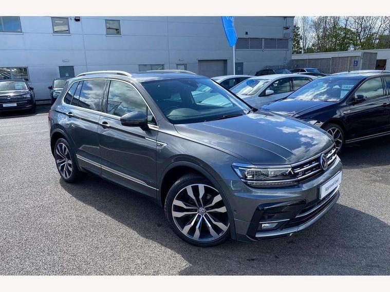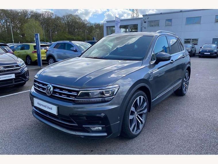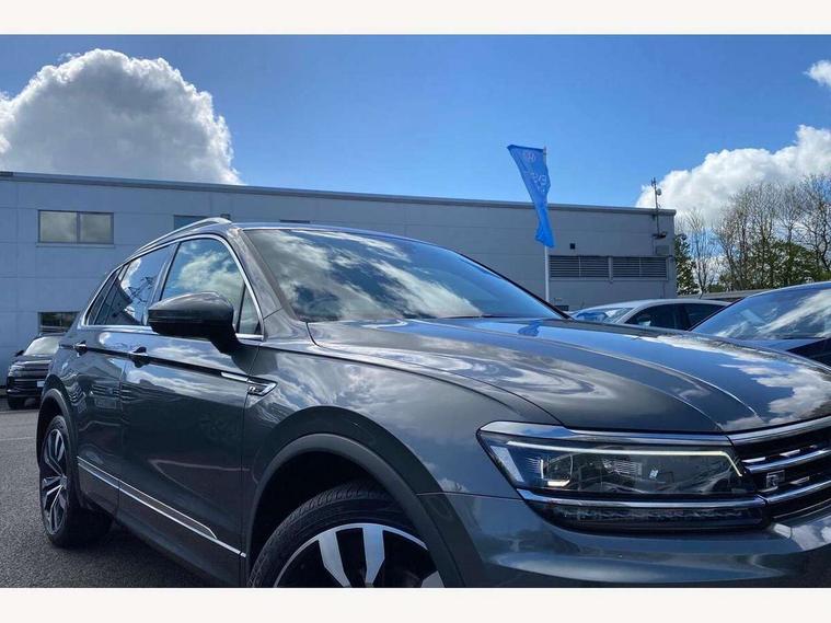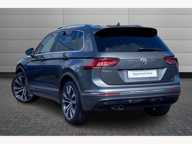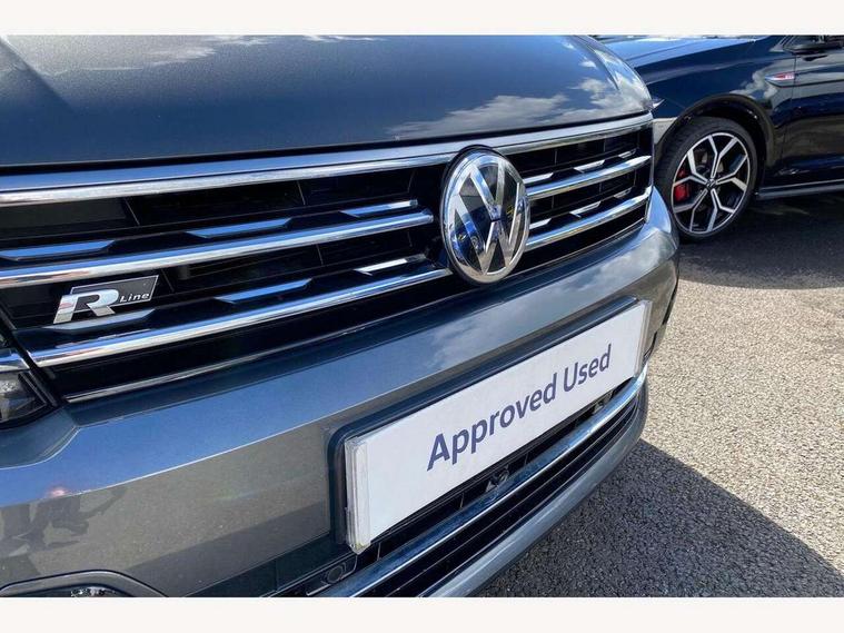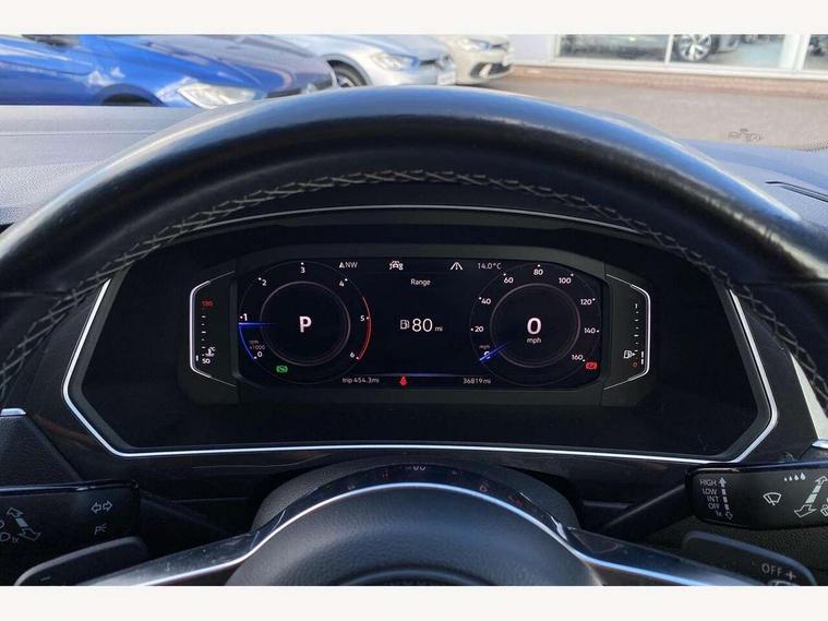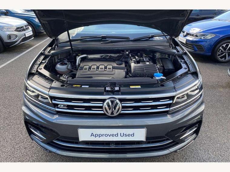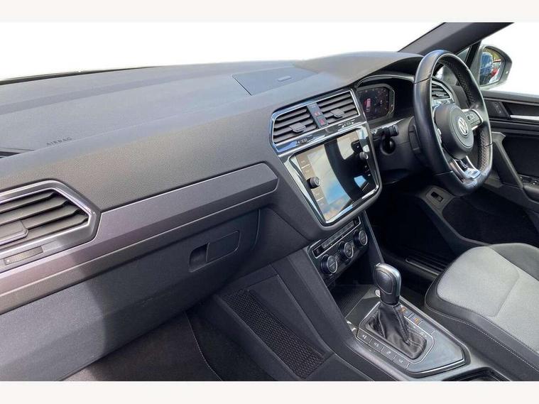 2D/3D map view, Active information display, Adaptive cruise control, App-Connect, Area view with park assist steering and front and rear parking sensors, Bluetooth phone integration system, Car information display, Distance control assist, Driver alert system with fatigue detection, Driver profile selection, Front assist, radar sensor controlled distance monitor, city emergency braking + predictive pedestrian protection, Fully electric tailgate + keyless entry and start, Instrument cluster, Lane assist, Lights on warning, Multifunction computer with visual gear change recommendation for fuel consumption, Outside temperature display, Progressive power assisted steering, Service interval indicator, Speed limiter, Start/Stop function, Warning sound and light for doors and tailgate open, Battery regeneration during braking, Diesel particulate filter, Misfuel prevention device for diesel engine, XDS electronic differential lock for improved traction and handling, 2 x USB connection + USB charging socket, 4 X 20 watt output, DAB Digital radio, SD card slot, Simultaneous pairing of 2 compatible mobile devices, SMS functionality - read, compose and send SMS messages using touch-screen display, Title and cover art display, 3D effect cherry red LED rear tail lights, Aluminium decorative inserts in dash and door panels, Auto dimming interior mirror, Automatic activation of hazard warning lights, Body colour door handles, Body colour door mirrors, Body colour rear spoiler, Body colour side skirt, Body coloured bumpers, Chrome side window surrounds, Chrome trimmed radiator grille, Coming/leaving home lighting function, Dusk sensor + auto driving lights, Electric panoramic sunroof with sunblind, Electrically heated and foldable door mirrors, door mirror puddle lights and reverse activated kerb view adjustment on passenger's door mirror, Front and rear electric windows, Heated rear window, High level 3rd brake light, LED headlights with dynamic light assist daytime running lights and cornering front fog lights, LED rear number plate lights, Piano black front air intake and rear diffuser, R Line body kit, R Line side sills, Rain sensor windscreen wipers, Rear tinted glass from B-pillar backwards approx 65% tinted, Rear windscreen washer and wiper with interval delay, Side skirts and rear bumper with chrome insert, Silver front underbody protection and rear diffuser, Silver roof rails, Trailer Stability Programme, Unique R Line badging, Windscreen wipers/ intermittent wipe + 4 position delay, 12V socket in centre console storage area, 2 cup holders in front, 3 rear headrests, 3 zone climate control, 4 load lashing points, 40:20:40 split folding rear seats, Bag hook in luggage compartment, Black headlining, Foldable front passenger seat backrest, Front + rear carpet mats, Front centre armrest with 12v socket, Front centre armrest with storage + rear 2 air vents, Front seat back storage pockets, Front seat R Line logo with rear seat backrest, Front seatback folding tables, Height/reach adjust steering wheel, Illuminated driver/passenger vanity mirrors, Illuminated scuff plates, Instrument lighting white adjustable panel illumination, Interior light with delay, Isofix Preparation 2 Rear child seats, Leather gear knob, Load through provision with 2 cupholders when folded, Lockable cooled glovebox, Luggage compartment lighting, Map pockets on front seats, Passenger seat height adjuster, Removable luggage cover, Sliding/reclining rear seats, Stainless steel pedals, Storage compartment in driver's door, Storage compartment in passenger's door, Storage compartment in rear doors, Storage compartments in luggage area left and right, Storage tray on dashboard, Sunglasses storage, Three spoke leather trimmed multifunction steering wheel with aluminium inserts and R Line Logo including paddle shift, Unique R Line door sill protectors, Variable boot floor, height adjustable and removable, Ambient lighting pack - Tiguan, R Line styling pack - Tiguan, 3 rear 3 point seatbelts, ABS+EBD+Brake assist, Active bonnet, Active pedestrian safety system, Curtain airbags, Driver/Front Passenger airbags, Driver/Passenger whiplash optimised head restraints, Drivers knee airbag, DTC - Drag torque control, Electronic parking brake with auto hold, ESC with EDL, ASR, EDTC and trailer stabilisation function, First aid kit, Front seat side impact airbags, Front side airbags, Front ventilated disc brakes and rear disc brakes, Head airbag system, Height adjustable front 3 point seatbelts + pretensioners, Hill hold control, Passenger airbag deactivate switch, Passenger knee airbag, Pre crash preventive occupant protection, Rear side airbags, Rigid safety cell with front and rear crumple zones, Two tone horn, Warning sound and light for front seat belts if unfastened, Warning triangle, Alarm with interior protection, Electronic engine immobiliser, Remote central locking with 2 remote folding keys, Chrome door trim inserts, Dark grey decorative inserts in dash and door panel, Piano black decorative inserts in centre console, 20" Suzuka alloy wheels with mobility self sealing tyres + anti theft wheel bolts, Steel space saver spare wheel,