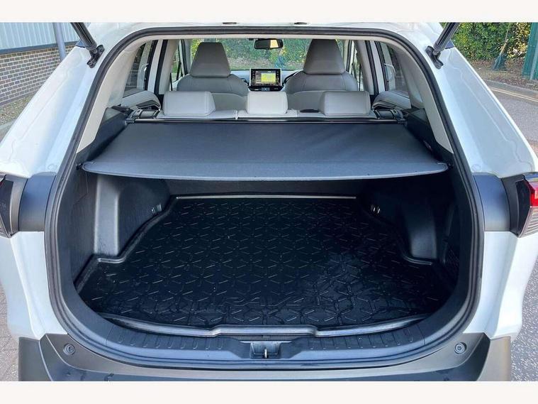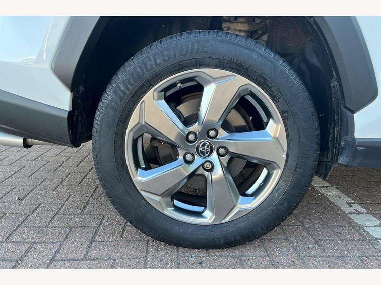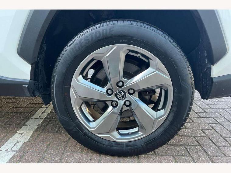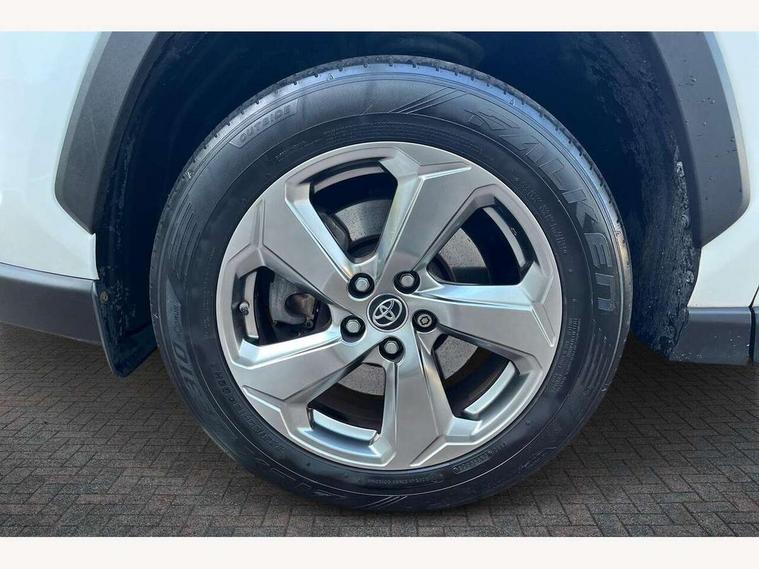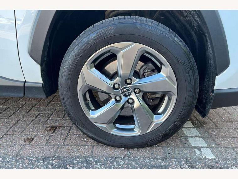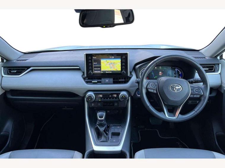 7" colour TFT display, Adaptive cruise control with lane trace assist, Adjustable speed limiter, Blind spot monitoring with rear cross traffic alert, Bluetooth system, Cyclist Detection, Drive mode selector, eCall emergency call system, ECO-driving indicator, Electric power steering, Hybrid system indicator, Lane departure warning system, Lights on warning, Low screen washer fluid warning, Night Time Pedestrian Detection, Pedestrial detection, Power boot opening and closing, Rear parking camera, Rear parking sensors, Remote boot door release in cabin, Tachometer, Touch 2 Go navigation system including 3D maps and voice control, Traffic sign recognition, Trip computer, Voice control system, Vehicle Stability Control (VSC), 6 speakers, 8" Multimedia display touch screen, Auxiliary socket for external MP3 player, DAB audio, Steering wheel mounted audio controls, Toyota touch media system, USB connection, Auto dimming interior mirror, Auto high beam, Automatic headlamp levelling, Automatic headlights, Automatically retractable door mirrors, Black roof rails, Body colour door handles, Body colour door mirrors, Body colour rear spoiler, Body coloured bumpers, Body coloured Shark-fin antenna, Door mirror puddle lights, Electric adjustable door mirrors, Emergency brake-light signal (EBS), Follow me home headlights, Front fog lights, Headlight cleaners, Heated door mirrors, LED daytime running lights, LED High mounted stop lamp, LED rear lights, Meshed shape upper front grille, Power front windows, Power rear windows, Privacy glass, Projector LED headlights, Rear screen wiper - intermittent, Rear windscreen defogger, Silver front under-run, Silver rear under-run, Trailer sway control, Turning signal integrated indicators in door mirrors, Windscreen wiper de-icer, 3 rear headrests, 60/40 split fold rear seat back, Boot light, Clean air filter, Driver and front passenger personal light, Driver and front passenger Whiplash Injury Lessening seats, Driver and passenger sunvisors with illuminated vanity mirrors, Driver seat memory function, Dual sided deck board in boot, Dual zone automatic air conditioning, Floor mats, Folding rear centre armrest, Front and rear bottle holders, Front centre armrest, Front footwell lights, Front headrests, Front seat and rear pockets, Front/rear roof mounted assist grips, Grey roof lining, Heated driver and front passenger seats, Heated steering wheel, Isofix child seat preparation, Leather gear shift with chrome surround, Leather upholstery, Light blue ambient lighting on front cupholders and open tray, Manual telescopic and tilt 3-spoke leather steering wheel with Chrome insert, Manually reclining and sliding front passenger seat, Pollen filter, Power height-adjustable sliding reclining and lumbar support for driver seat, Rear coat hooks, Rear door armrests, Rear passenger air vents, Reclining rear seats, Satin chrome interior door handles, Sunglasses holder, Parking pack - Rav4, 3x3 point rear seatbelts, ABS/EBD, Adjustable front driver and passenger seat belt extender, Brake assist function, Child proof door locks, Collision mitigation braking system, Driver/Front Passenger airbags, Driver/front passenger side airbags, Drivers knee airbag, Electronic parking brake, Electronic Stability Programme (ESP), Emergency brake light system (EBS), Front and rear curtain airbags, Front and rear seatbelt reminder, Hill start assist, Passenger airbag cut-off device, Seatbelt pretensioners with load limiters, Traction control, Tyre pressure warning, Alarm/immobiliser, Glass-breaking alarm sensors, Light - on and Key in reminder, Remote central locking, Smart entry + Smart start, Speed sensitive auto door locking, Tilt detection sensors, Piano black centre console with silver insert, Soft-touch black lower dashboard, Soft-touch black upper dashboard with silver insert, Full size spare wheel,