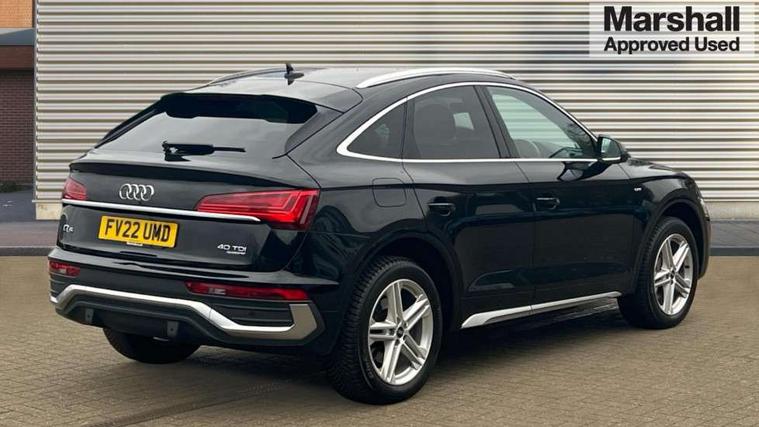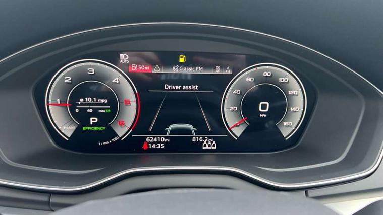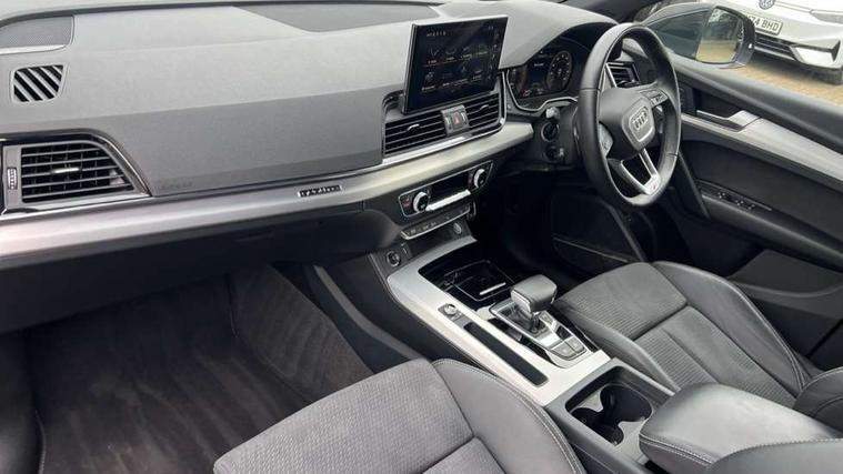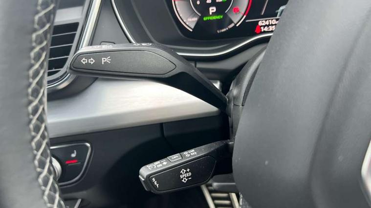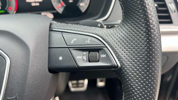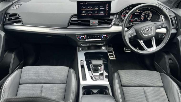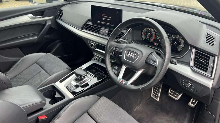 Audi connect safety and service (e-call), Audi connect with Amazon Alexa Integration, Audi drive select, Audi virtual cockpit plus with 12.3" screen and three different layout designs, Audi wireless smartphone interface, Automatic start-stop system with coasting functionality and efficiency programme, Bluetooth interface, Electro - mechanical power assisted steering, MMI navigation plus with 10.1" touch screen, Power tailgate, Reversing camera, Service interval indicator, Voice control system with Audi hotword activation "Hey Audi", Diesel particulate filter, Quattro on demand, S line sports suspension, 2 x USB charging port with aux input socket, DAB Digital radio, Acoustic windscreen, Aluminium roof rails, Audi matrix LED headlights with dynamic front and rear indicators, Auto dimming door mirrors, Auto dimming rear view mirror, Automatic headlights and windscreen wipers, Body colour door mirrors, Body colour rear diffuser with matt aluminium silver surrounds, Body colour underbody protection, Chrome plated exhaust trims, Daytime running lights, Door sills in Selenite silver, Electric adjustable/heated/folding door mirrors, Front air inlet surrounds in aluminium, Front and rear electric windows, Front radiator grille in honeycomb design, Headlight washers, High level LED brake light, Lower bumpers painted in contrast Manhattan grey, Rear chrome trim strip below lights, Rear privacy glass and rear side windows, Rear side wing doors, Rear wiper, Roof bars, S Line badges on the front wings, S Line front and rear bumpers, S Line rear spoiler, S Line side skirts, 3 rear headrests, 40:20:40 split folding 3 rear bench seat in 2nd row with rear centre armrest, Black cloth headlining, Comfort front centre armrest, Contrast stitching on seats, steering wheel and gear lever gaiter, Deluxe 3 zone electronic climate control, Front head restraints, Front/rear floor mats, Gear lever in black leather, Heated front seats, Height/reach adjustable steering column, Illuminated door sill trims with S logo, ISOFIX child seat mounting and top tether, Manual seat adjustment with 4-way electric lumbar support, Removable luggage compartment floor, Single front passenger seat, Stainless steel pedals, Sunvisors with vanity mirrors, Trunk roller cover, High gloss pack - Q5, LED interior light pack - Q5, 3 point seatbelts on all seats, 6 airbags - Driver, front passenger, curtain and side airbags, Electrically operated child locks on rear doors, Electromechanical parking brake, Electronic stabilisation control including ABS, ASR and EDL, Front passenger airbag deactivation, Hill descent control, Hill hold assist, Multi collision brake assist, Pop-up bonnet for pedestrian protection, Pre sense city, Seat belt force limiter, Seatbelt monitoring, Tyre pressure warning, Warning triangle and first aid kit, Anti theft alarm, Anti-theft wheel bolts, Keyless Go access/ignition system, Remote central locking, Matt brushed aluminium inlays,