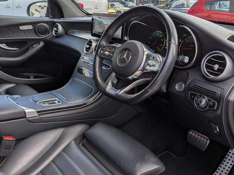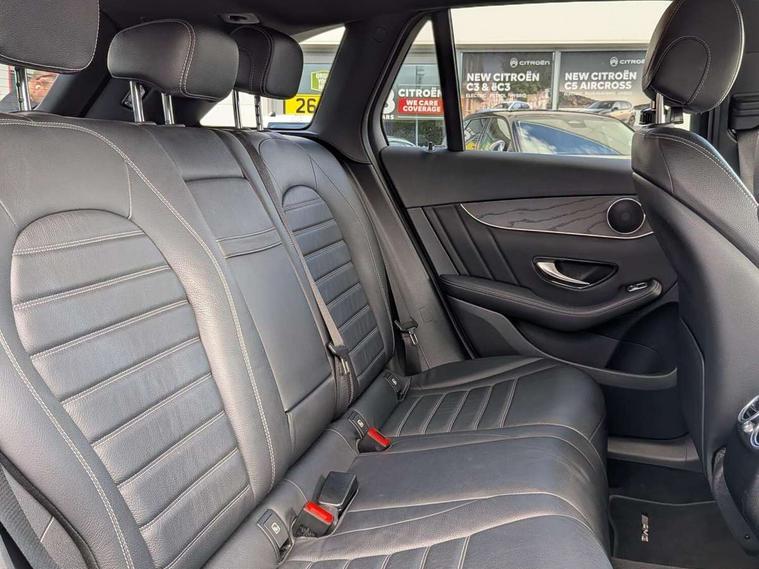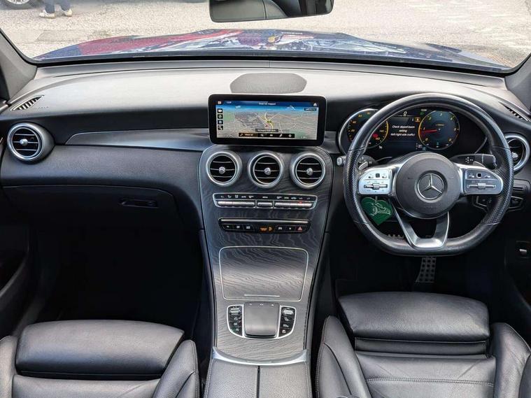 Attention assist, Bluetooth interface for hands free telephone, Collision prevention assist plus, Cruise control with speedtronic variable speed limiter, Direct steer speed sensitive steering, DYNAMIC SELECT with a choice of driving modes (ECO, Comfort, Sport, Sport+ and Individual), Easy pack automatic powered tailgate, ECO start/stop function, Hard disk navigation, Hey Mercedes Voice activation, Instrument cluster with12.3-inch digital instrument cluster display. High resolution instrument cluster screen with choice of three display styles, MBUX augmented reality for navigation, MBUX Interior assistant, Mercedes connect me with remote online services, Multi function trip computer, Outside temperature display, rear seatbelt status indicator, Parktronic system with rear cross traffic alert and drive away assist, Remote boot release, Reversing camera, Service indicator (ASSYST), Smartphone integration with Apple CarPlay and Android auto, Traffic sign assist, Wireless charging, 4MATIC permanent four wheel drive, 66 litre fuel tank, 9G TRONIC plus automatic transmission with steering column gear selector, DIRECT SELECT steering wheel gearshift paddles, Diesel particulate filter, Sports suspension tuned for improved handling and driving dynamics, MBUX multimedia system with DAB digital radio and touchpad including satellite navigation, Media display 10.25-inch touchscreen display, Mercedes Benz sound system (225w) includes mid-range sound system, Pre installation for Mercedes Benz Link, USB ports x 2 in centre console, Adaptive brake lights, Aluminium roof rails, AMG bodystyling - AMG front apron with sporty air intakes and chrome trim element, AMG diffuser-look rear apron with insert in black, Body colour door mirrors, Body coloured bumpers, Electric windows one touch open/close, Electrically adjustable and heated door mirrors, Front, side and rear exterior chrome trim, Headlamp assist automatic headlamp activation, LED tail lamp, Motor way mode function and locator lighting, Multi beam LED headlamps with 84 indiviually control LED, daytime running lamps, Active Light, cornering light, enhanced fog lamp, adaptive Highbeam Assist, Privacy glass with dark glass from B pillar backwards, Radiator diamond grille, Rain sensor windscreen wipers, Range adjustable headlights, Rear wiper, Running boards, Tinted glass all round with single layer safety glass, Two chrome plated tailpipe trim elements, 2 way rear head restraints, 3-spoke multifunction sport AMG steering wheel in black nappa leather with flattened bottom section, chrome insert and perforated leather in grip area, 40:20:40 split folding rear seats, Ambient lighting, AMG floor mats with edging and embroidered AMG lettering, AMG sports seats, Artico man-made leather upper dashboard with contrast topstitching, Automatic child seat recognition sensor, Black roof lining, Dividing net - rear, Double cup holder in centre console, Easy-pack removable load compartment cover, Front armrest with storage box, Front door sills with Mercedes Benz lettering, Front head restraints, Front seats with electric adjust (backrest, height and seat cushion inclination) with 4 way electric lumbar support and manual cushion depth adjust, Heated front seats, Height/reach adjustable steering column, Illuminated and lockable glove compartment, Leather upholstery, Rear top tether child seat ISOFIX attachment, Sports pedals with stainless steel surfaces and rubber studs, Steering wheel with touch control buttons, THERMOTRONIC 3 zone automatic climate control, Interior lighting pack - GLC, Mirror pack - GLC, Storage pack - GLC, 3 rear 3 point seatbelts, Active bonnet, Adaptive brake system with HOLD function and brake drying in the wet, ASR, Black seat belts, Brake calipers with Mercedes-Benz lettering + perforated brake discs, Child proof door locks, Dual-stage airbags - driver and front passenger, driver knee bag and window bags for driver, front passenger and rear passengers, Electronic parking brake, Electronic stability programme (ESP) with curve dynamic assist and cross wind assist, Front and rear seatbelt reminder, Front passenger seat occupancy sensor, Hill hold function, Tyre pressure monitoring system, Warning triangle and first aid kit, Alarm system/interior protection/immobiliser, Automatic door locking, KEYLESS-GO starting function, Remote central locking, Open pore black ash wood trim, 20" AMG multi spoke design alloy wheels painted in titanium grey with high sheen finish, Run flat tyres,