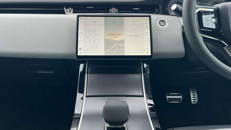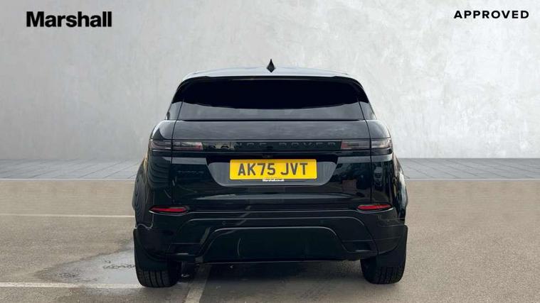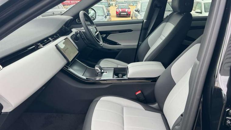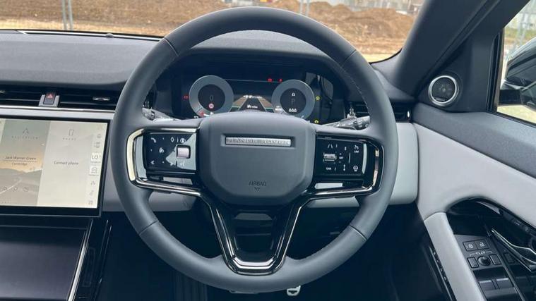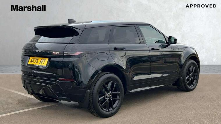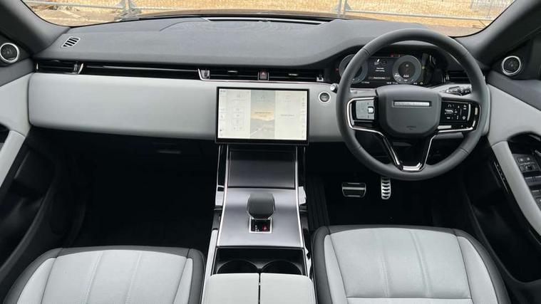 11.4" touch screen, 3D 360 degree surround camera with wade sensing, Adaptive cruise control, Android Auto, Apple car play, Blind spot assist, Bluetooth connectivity, Brake pad wear indicator warning light, Driver condition monitor, eCall emergency system, Eco mode, Electronic power assisted steering (EPAS), Front and rear parking aid, InControl remote, Interactive driver display, Land Rover InControl apps, Lane keep assist, Pivi pro connected includes diamond pivi variant, smart settings, connected navigation pro, nuance speech licence, Powered tailgate/boot lid, Rear collision monitor, Rear traffic monitor, Tailgate, Traffic sign recognition with adaptive speed limiter, Voice control system, Wireless device charging, All terrain progress control, Electric rear axle drive, Home charging cable, Large fuel tank, Passive suspension, Public charging cable, Terrain Response 2, Digital Audio Broadcast radio-DAB, Meridian sound system with 400W subwoofer and 11 speakers, Steering wheel mounted controls, Acoustic laminated windscreen, Auto dimming interior rear view mirror, Auto headlights, Auto high beam assist, Automatic headlight levelling, Black contrast roof, Electric windows with one touch open/close and anti trap, Fixed panoramic sunroof with powered sunblind, Flush deployable exterior door handles, Front and rear recovery eyes, Heated rear window with timer, Heated washer jets, Heated windscreen, LED headlights with signature DRL and LED tail Lights, Metallic paint, Power fold, auto-dimming, heated door mirrors with approach lights and auto dimming driver side, Privacy glass, Rain sensing windscreen wipers, Rear animated directional indicators, Rear fog lights, Rear side wing doors, Rear wiper, Tailgate spoiler, Third brake light, Winter wiper park position, 12 way driver memory and 10 way passenger electric front seats with 2 way manual headrest + 4 way lumbar support, 40:20:40 split folding rear seats with centre headrest and armrest, Bright metal pedals, Cabin lighting, Carpet mats, Chrome tread plates with range rover branding Includes stainless steel loadspace scuff plate with etched graphic, Customer configurable single point entry, Front and rear cupholders, Grained Leather upholstery, Heated front seats, Heated steering wheel, Isofix system on outer rear seats, Manually adjustable steering column, Overhead lighting console, Overhead stowage for sunglasses, Passive front head restraints, Rear air vents, Rear head restraints, Satin chrome gearshift paddles, Single passenger seat, Standard steering wheel with Moonlight Bezel, Sunvisors with illuminated vanity mirrors, Twin sliding front centre armrest, Two zone climate control, Black exterior styling pack - Evoque, Power socket pack 2 - Evoque, 3 rear 3 point seatbelts, Anti-lock braking system (ABS), Black brake calipers, Brake hold function, Customer configurable autolock, DSC - Dynamic Stability Control, Electronic brake force distribution, Electronic parking brake, Electronic traction control, Emergency braking, Front and rear seatbelt reminder, Hill descent control, Hill launch assist, Low traction launch, Occupant protection assist, Passenger seat occupant detector, Power operated child locks, Roll stability control, Six airbags - Driver and passenger airbags/driver knee airbag/front side airbag and curtain airbags, Torque vectoring brake, Tyre pressure monitoring system, Alarm, Immobiliser, Intrusion sensor, Keyless entry, Locking wheel nuts, Secure tracker pro, Black brushed aluminium finisher, 19" gloss black alloy wheels - Style 5136, All season tyres, Tyre repair system,