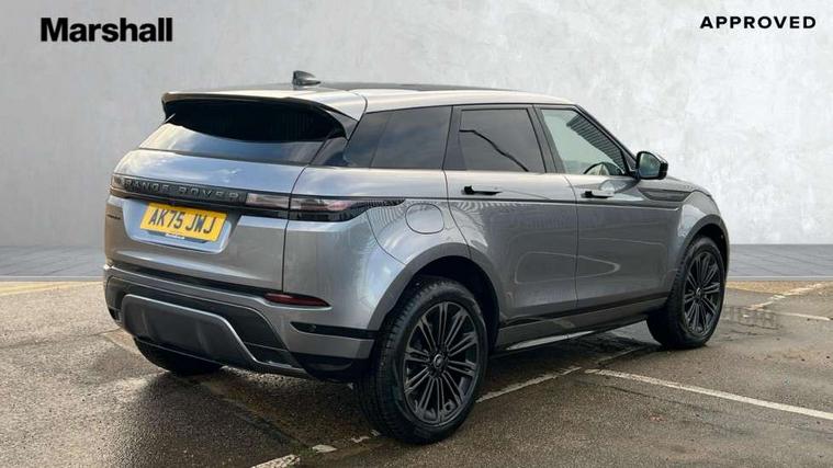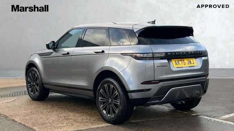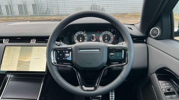 11.4" touch screen, 3D 360 degree surround camera with wade sensing, Adaptive cruise control, Android Auto, Apple car play, Blind spot assist, Bluetooth connectivity, Brake pad wear indicator warning light, Driver condition monitor, eCall emergency system, Eco mode, Electronic power assisted steering (EPAS), Front and rear parking sensors with auto brake, InControl remote, Interactive driver display, Land Rover InControl apps, Lane keep assist, Pivi pro connected includes diamond pivi variant, smart settings, connected navigation pro, nuance speech licence, Powered tailgate/boot lid, Rear collision monitor, Rear traffic monitor, Tailgate, Traffic sign recognition with adaptive speed limiter, Voice control system, Wireless device charging, All terrain progress control, Diesel exhaust fluid (DEF) large tank, Efficient Driveline, Large fuel tank, Passive suspension, Terrain Response 2, Digital Audio Broadcast radio-DAB, Steering wheel mounted controls, Acoustic laminated windscreen, Auto headlights, Auto high beam assist, Automatic headlight levelling, Electric windows with one touch open/close and anti trap, Flush deployable exterior door handles, Front and rear recovery eyes, Heated rear window with timer, Heated washer jets, Heated windscreen, LED headlights with signature DRL and LED tail Lights, Power fold, auto-dimming, heated door mirrors with approach lights and auto dimming driver side, Rain sensing windscreen wipers, Rear animated directional indicators, Rear fog lights, Rear side wing doors, Rear wiper, Side repeater indicators in mirror, Tailgate spoiler, Third brake light, Winter wiper park position, 12 way driver memory and 10 way passenger electric front seats with 2 way manual headrest + 4 way lumbar support, 40:20:40 split folding rear seats with centre headrest and armrest, Ambient interior lighting, Bright metal pedals, Carpet mats, Chrome tread plates with range rover branding Includes stainless steel loadspace scuff plate with etched graphic, Customer configurable single point entry, Front and rear cupholders, Heated front seats, Heated steering wheel, Isofix system on outer rear seats, Manually adjustable steering column, Overhead lighting console, Overhead stowage for sunglasses, Passive front head restraints, Rear air vents, Rear head restraints, Satin chrome gearshift paddles, SE Grained leather upholstery, Single passenger seat, Standard steering wheel with Moonlight Bezel, Sunvisors with illuminated vanity mirrors, Twin sliding front centre armrest, Power socket pack 2 - Evoque, 3 rear 3 point seatbelts, Anti-lock braking system (ABS), Brake hold function, Customer configurable autolock, DSC - Dynamic Stability Control, Electronic brake force distribution, Electronic parking brake, Electronic traction control, Emergency braking, Front and rear seatbelt reminder, Hill descent control, Hill launch assist, Low traction launch, Occupant protection assist, Passenger seat occupant detector, Power operated child locks, Roll stability control, Six airbags - Driver and passenger airbags/driver knee airbag/front side airbag and curtain airbags, Torque vectoring brake, Tyre pressure monitoring system, Alarm, Immobiliser, Intrusion sensor, Keyless entry, Locking wheel nuts, All season tyres,