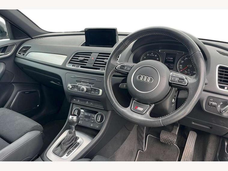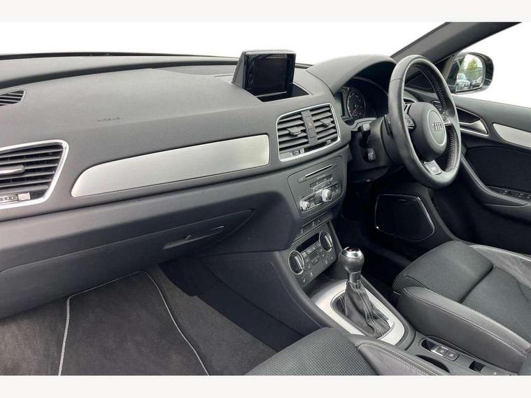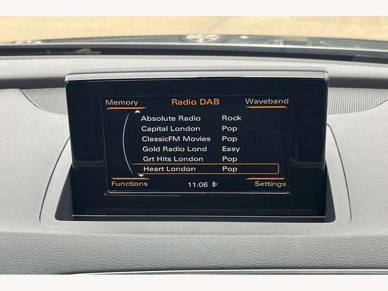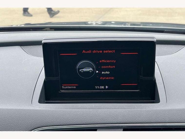 6.5" colour display screen, Audi drive select, Cruise control, Electro-mechanical PAS, Low washer fluid indicator, MMI - Multi Media Interface control system, On board computer, Remote electric boot opening/closing, Service interval indicator, Voice control system, Dynamic suspension, Audi music interface, DAB digital radio module, Acoustic windscreen, Aluminium window surround, Auto dimming rear view mirror, Body colour door mirrors, Body coloured bumpers, Chrome exhaust tailpipe, Coming home function, Door mirror integrated indicators, Front and rear electric windows, Front fog lights, Front lip spoiler, Heated windscreen washer jets, LED daytime running lights, LED headlights with headlight washers, LED rear lights, Light and rain sensor for auto activation of lights and windscreen wipers, Loading sill protector in stainless steel, Rear diffuser with platinum insert, Rear wiper, S Line body styling, Sunband for windscreen, 12V socket in rear centre console, 3 spoke multi-function Q design steering wheel with paddle shift, Aluminium door sill trims, Black cloth headlining, Door sill trim strips, Dual zone climate control, Electric front lumbar adjustment, Front and rear headrests, Front and rear velour floor mats, Front centre armrest with storage compartment and angle adjustment, Front sports seats, Height/reach adjust steering wheel, ISOFIX on front passenger and rear outer seats, Jack and tool kit, Perforated leather gearknob, Retractable luggage cover, Split fold rear seat, Storage compartment and 12V socket, Under floor storage in luggage area, 3x3 point rear seatbelts, ABS+Electronic Brake force Distribution, Curtain airbags, Driver and passenger airbags, Driver and passenger side airbags, EDL + ASR, Electrically operated child locks on rear doors, Electromechanical parking brake, ESP, First aid kit, Front passenger airbag deactivation, Head airbags, Seatbelt warning light, Tyre pressure monitoring system, Warning triangle, Locking wheel bolts, Remote central locking, Thatcham category 1 alarm + immobiliser, Matt brushed aluminium fascia and door trim inlays,