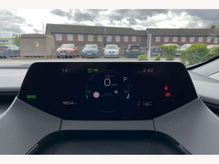 12.3" multimedia display screen, 7" Multi information screen, Acceleration suppression at low speed, Adaptive cruise control [ACC] switch on steering wheel, Blind spot monitor and safe exit assist, Bluetooth connectivity, Digital speedometer, Driver monitoring camera, Dynamic guide lines on reversing camera, eCall emergency call system, Emergency driving stop system, Emergency steering assist with active support and pre collision system, Front Cross Traffic Alert, Hybrid system indicator, Intelligent adaptive cruise control, Intelligent parking sensors front and rear with rear pedestrians, Lane change assist, Lane trace assist, Multi information display switches on steering wheel, MyT connected services, PAS, Power tailgate, Pre collision system with intersection detection, Precaution Illumination on dashboard ambient light, Proactive driving assist (PDA), Push button start, Rear cross traffic alert with brake assist, Remote boot door release in cabin, Reversing camera, Road sign assist - RSA, Safe exit assist, Smart entry and push button start, Smart voice assist, Speed limiter switch on steering wheel, Speed limiter with road sign assist, Telephone switches on steering wheel, Touch 2 Go navigation system, Toyota smart connect multimedia system, Voice recognition, Wireless charger, Wireless Smartphone integration incl Apple CarPlay, 3.3 kW Standard charger, Fast charger 32A Mennekes cable, Vehicle Stability Control (VSC), 2 USB-C connectors front, 2 USB-C connectors rear, 2x USB sockets in front armrest, 6 speakers, DAB Radio (Digital Audio Broadcasting), Road events, Anti-jam protection on power windows, Auto headlights, Auto up and down function on power windows, Auto wipers, Automatic high beam, Automatic rear flashing hazard lights, Black door moulding, Boot door release with push button, Digital rear view mirror with built-in cleaning system, E-switch operated rear door handles, Electric heated door mirrors, Follow me home headlights, Gloss black surround on lower front grille, Gloss black wheel arch moulding, Grille shutter, Indicators integrated on door mirrors, Infrared filter on windshield, LED daytime running lights, LED Headlights, LED High mounted stop lamp, LED rear combination lights, LED rear light guide, LED turning signal with DRL integration, Manual front door handles, Manual headlight levelling, Noise reduction layer on front windows, Noise reduction layer on windscreen, Piano black rear bumper extension, Power adjustable door mirrors, Power retractable door mirrors, Privacy glass for rear window, Rear fog lights, Rear side wing doors, Rear spoiler, Rear window wiper, Rear windscreen defogger, Shark fin antenna, Silver lower front grille, UV-filter on driver and front passenger windows, Water repellent driver and front passenger windows, 12v power outlet - front, 2 cup holders in front, 2nd row rear passenger room LED light, 3 seat bench in 2nd row, 3 spoke premium animal friendly leather steering wheel, 60/40 split folding 2nd row rear seats, Adjustable rear headrests, Ambient lighting on dashboard, Assist grips front, Assist grips rear, Black insert on centre pillar, Boot 230V power outlet, Boot light, Boot underfloor storage, Charge cable bag, Driver and front passenger air ventilated seats, Driver and front passenger personal LED lights, Driver and front passenger Whiplash Injury Lessening seats, Foldable tonneau cover, Front and rear door pockets, Front head restraints, Front passenger seatback pockets, Glovebox with light, Heat pump system with humidifier, Heated driver and passenger seats, ISOFIX child restraint system, LED front room light, Luggage floor board with protection mat, Manual telescopic steering wheel, Manual tilt steering wheel, Manually reclining front passenger seat, Manually sliding front passenger seat, Memory function on driver seat, Microphone on front personal light, Mirror on driver sun visor, Mirror on passenger sun visor, Multimedia switches on steering wheel, Nanoe-X air purifier, Pollen air filter with deodorising odour eliminator, Power adjustable lumbar support on driver seat, Power height adjustable driver seat, Power reclining driver seat, Power sliding driver seat, Power window switches with satin chrome inserts, PVC gear shift knob, Rear cup holders, Rear foot ducts, Rear headrests, Remote dual zone automatic air conditioning, Satin chrome interior door handles, Single front passenger seat, Soft-touch front door armrests, Soft-touch rear door armrests, Synthetic leather upholstery, White ambient lighting in footwell, 3 point seatbelts on all seats, Acoustic vehicle alerting system, Anti lock braking system + Electronic brake force distribution, Child safety door lock, Driver and passenger central airbags, Driver and passenger front airbags, Driver and passenger side airbag, Driver knee airbag, Electronic parking brake, Front to front oncoming car and motorbike daytime detection, Passenger airbag on/off switch, Pre collision system with pedestrian, cyclist and motorbike detection, Pre-tensioners and force limiters, Rear seat reminder alert, Toyota safety sense with over the air updates, Tyre pressure warning system, Digital key, Driver power door lock, Glass-breaking alarm sensors, Immobiliser, Intrusion alarm, Intrusion sensor, Motion sensor alarm, Remote door lock, Smartphone remote door lock, Smartphone remote hazard lights system, Wheel Nuts, Metallic effect insert on dashboard, Soft-touch front door trim, 19" 10 spoke machined black alloy wheels, Tyre repair kit,