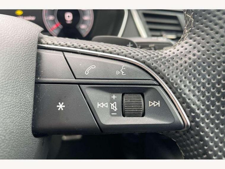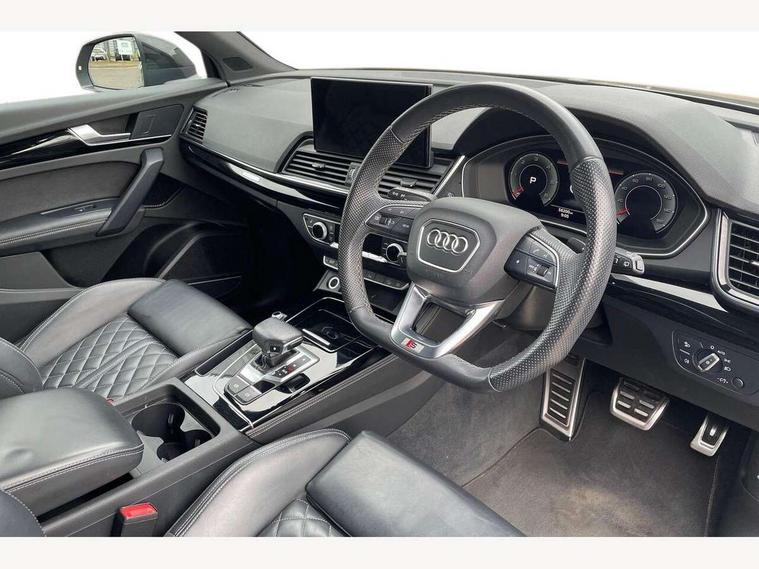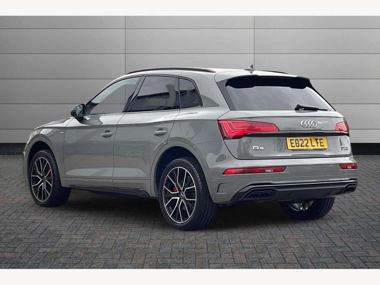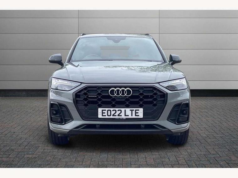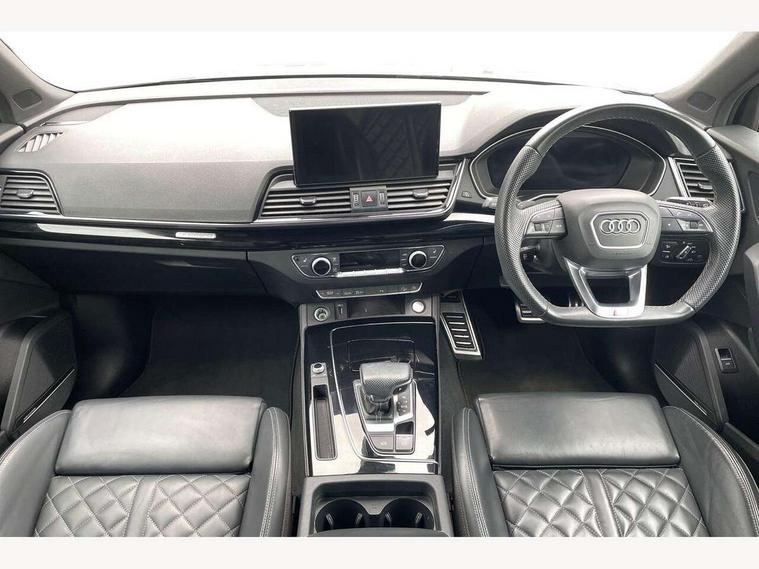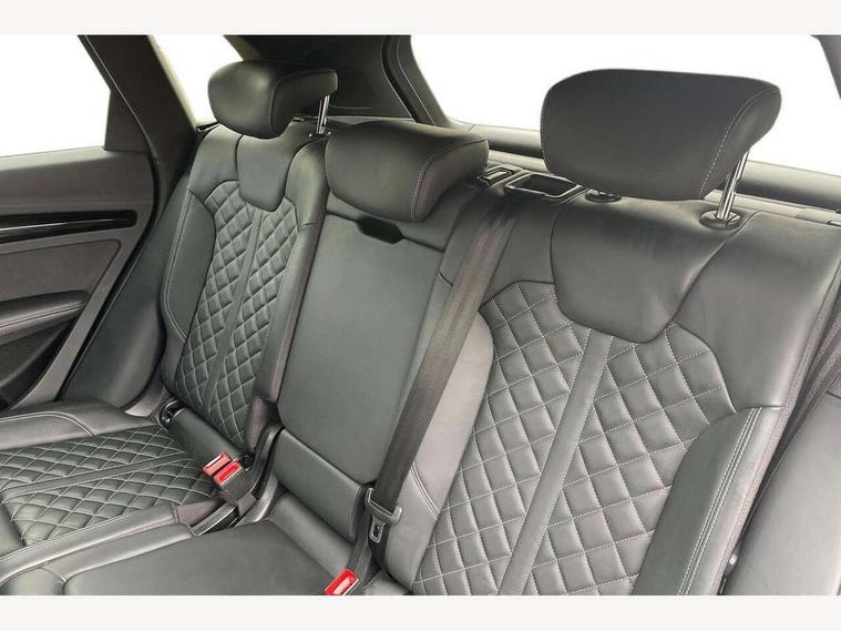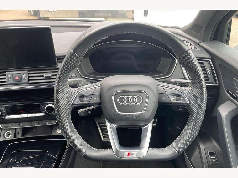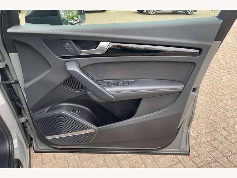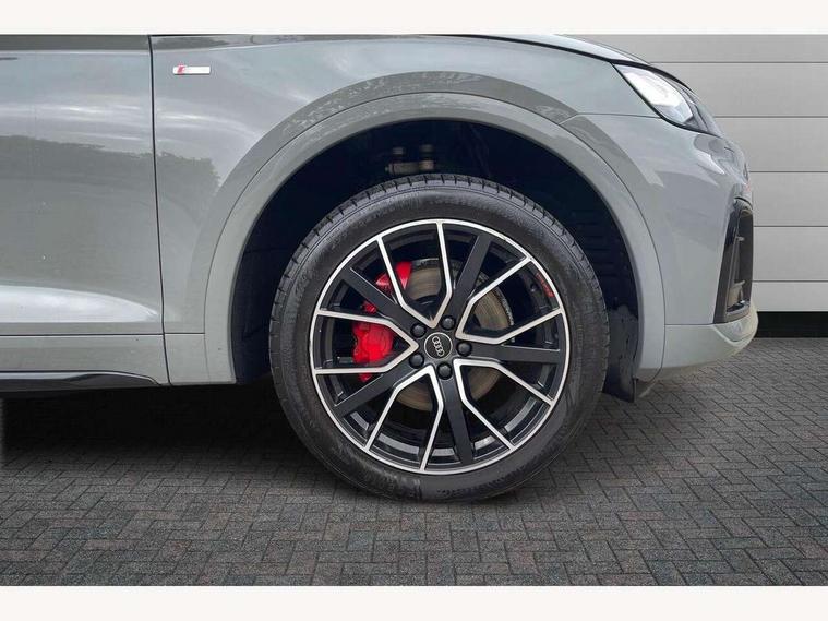 Audi connect safety and service (e-call), Audi connect with Amazon Alexa Integration, Audi drive select, Audi virtual cockpit plus with 12.3" screen and three different layout designs, Audi wireless smartphone interface, Automatic start-stop system with coasting functionality and efficiency programme, Bluetooth interface, Electro - mechanical power assisted steering, MMI navigation plus with 10.1" touch screen, Power tailgate, Reversing camera, Service interval indicator, Voice control system with Audi hotword activation "Hey Audi", Diesel particulate filter, Quattro on demand, S line sports suspension, 2 x USB charging port with aux input socket, DAB Digital radio, Acoustic windscreen, Audi matrix LED headlights with dynamic front and rear indicators, Audi rings at front and rear in black, Audi rings decal on rear doors, Auto dimming door mirrors, Auto dimming rear view mirror, Automatic headlights and windscreen wipers, Black door mirrors, Black roof rails, Body colour bumpers, Body colour underbody protection, Chrome plated exhaust trims, Daytime running lights, Door sills in Selenite silver, Electric adjustable/heated/folding door mirrors, Front air inlet surrounds in titanium black, Front and rear electric windows, Headlight washers, High gloss black B pillar trims and triangular rear door trim, High level LED brake light, Rear chrome trim strip below lights, Rear privacy glass and rear side windows, Rear side wing doors, Rear wiper, Roof bars, S Line rear spoiler, 3 rear headrests, 4 way electric lumbar support for driver and front passenger, 40:20:40 split folding 3 rear bench seat in 2nd row with rear centre armrest, Black cloth headlining, Comfort front centre armrest, Contrast stitching on seats, steering wheel and gear lever gaiter, Deluxe 3 zone electronic climate control, Electrically adjustable front seats, Fine Nappa leather upholstery with diamond pattern contrast stitching + front sport seats with S embossed logo, Front/rear floor mats, Gear lever in black leather, Heated front seats, Height adjustable front head restraints, Height/reach adjustable steering column, Illuminated door sill trims with S logo, ISOFIX child seat mounting and top tether, Rear seat bench plus, Removable luggage compartment floor, Single front passenger seat, Stainless steel pedals, Sunvisors with vanity mirrors, Black styling package - Q5 Edition 1, Extended interior upholstery pack - Q5, Extended LED Interior multi coloured Lighting Pack - Q5, 3 point seatbelts on all seats, 6 airbags - Driver, front passenger, curtain and side airbags, Electrically operated child locks on rear doors, Electromechanical parking brake, Electronic stabilisation control including ABS, ASR and EDL, Front and rear brake calipers painted in red, Front passenger airbag deactivation, Hill descent control, Hill hold assist, Multi collision brake assist, Pop-up bonnet for pedestrian protection, Pre sense city, Seat belt force limiter, Seatbelt monitoring, Tyre pressure warning, Warning triangle and first aid kit, Anti theft alarm, Anti-theft wheel bolts, Keyless Go access/ignition system, Remote central locking, Piano black finish inlay,