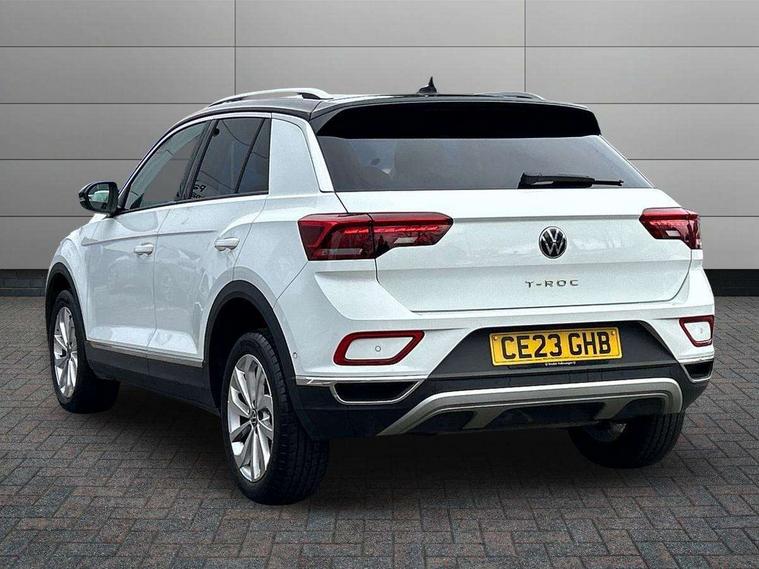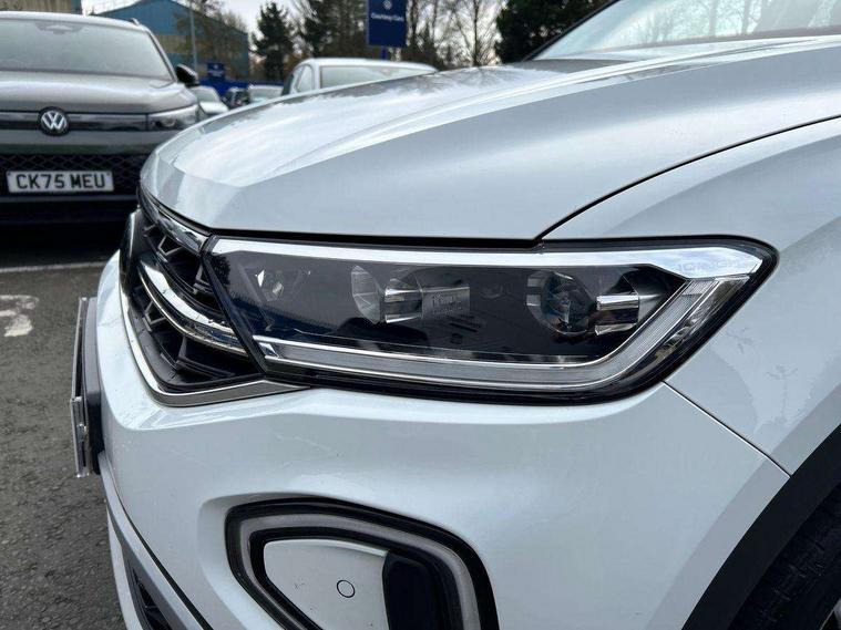 10.25" Digital cockpit pro, Bluetooth mobile phone interface, Driver alert system with fatigue detection, Driver tips and journey analysis, Dynamic road sign display, Emergency call service, Lane keeping system Lane Assist, Modified key software - reduce switch off time for key status change to Long no motion, Online services, Park assist including front and rear parking sensors, Power assisted speed sensitive steering, Service interval indicator, Tailgate/trunk lid release from outside, Think blue trainer driver tips and journey analysis, Warning sound and light for front seatbelts unfastened, Wireless app connect, Battery regeneration during braking, Front shock absorption, Rear shock absorption chassis with increased ride height, Start/stop function with battery regeneration, Diversity antenna for FM reception, Front and rear 6 speakers, Music playback - MP3, WMA and AAC files, Premium USB cable in choice of either Apple or Android smartphone compatibility, SD card slot, Simultaneous pairing of 2 compatible mobile devices, Title and cover art display, We Connect and We Connect Plus functionality, 3rd brake light, Auto dimming interior rear view mirror, Automatic hazard lights activation under emergency braking, Automatic headlight control with LED separate daytime running lights with coming/leaving home function, Body colour sports bumpers with silver metallic underbody fascia, Dynamic headlight range control with self adjusting whilst driving, Extended roof spoiler, Exterior mirrors aspherical on driver side, convex on front passenger side, External USB type C socket and charging sockets, Front windscreen wiper with intermittent wipe and 4 position delay, Heated rear window, LED Plus headlamps, LED rear combination lamps, LED rear number plate lights, LED tail lamp rear comination lamps, Light mode for poor weather, rain, fog or snow, Power windows with comfort operation and circuit breaker, Rain sensor, Rear exhaust tailpipe, Rear fog light on one side and reversing lights on both sides, Rear side wing doors, Rear wash/wipe with intermittent wipe setting, Remote electrically foldable door mirrors, puddle lights and reverse activated passenger's door mirror, 12V power socket in centre console, 3 rear head restraints, 3 seat bench in 2nd row, 4 load lashing points in luggage compartment, Air care climatronic air conditoning system with active combination filter and 2-zone temperature control, Chrome plated radiator grille inserts, air vent surrounds and light switch surrounds, Door and side trim panel with leatherette insert, Drawer under drivers seat, Front + rear carpet mats, Front centre armrest, Front comfort sports seats, Front cupholders x 2, Front footwell illumination, Instrument lighting, white adjustable panel illumination, Interior ambient lighting and surround lighting, Interior light delay, Isofix child seat preparation, Leather gearshift handle, LED interior light with switch off delay/dimmer and 2 front/rear LED reading lights, Load-through provision with cup holder when folded down ('Unsplit rear seat bench, split folding backrest, with centre armrest), Luggage compartment lighting, Non-folding front passenger seat backrest, Single front passenger seat, Storage compartment in left and right luggage area, Storage compartment in rear doors, Storage compartments in driver and front passenger doors, Sunvisors with illuminated vanity mirrors, Variable boot floor, height adjustable and removable, Driver assistance pack without proactive passenger protection - T-Roc, 3 point height adj front seatbelts + pretensioners, 3 point seatbelts in outer rear with ECE label, ABS, Child locks on rear doors, Driver and front passenger airbag with front passenger airbag deactivation, Driver and front passenger safety-optimised head restraints, Drivers seatbelt reminder, Electronic parking brake, Electronic Stability Control (ESC) inc EDL (Electronic Differential Lock) and ASR (Traction Control), Front and rear passengers curtain airbag system including front side airbags, Front assist with city emergency braking and pedestrian monitoring, Front disc brakes, Front seat side impact airbags, Predictive pedestrian protection, Rear disc brakes, Single tone horn, Tyre pressure loss indicator, Volkswagen roadside assistance, Alarm with interior protection, Anti-theft alarm system with interior monitoring, backup horn, and towing protection, Remote central locking with SAFELOCK, radio remote control with 2 remote control folding keys, Trims for alloy wheels,