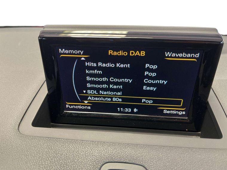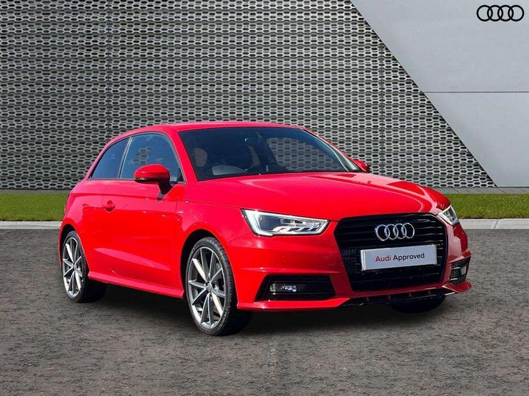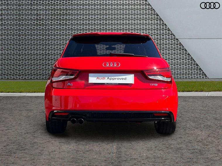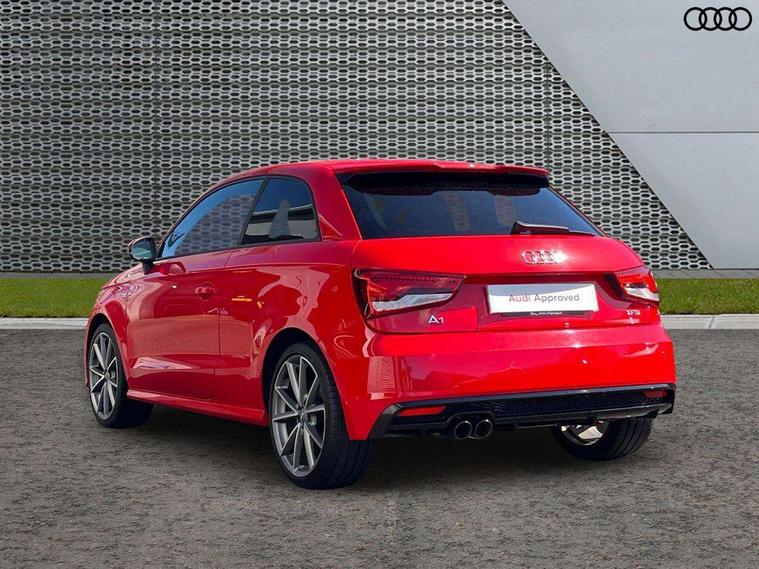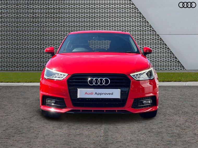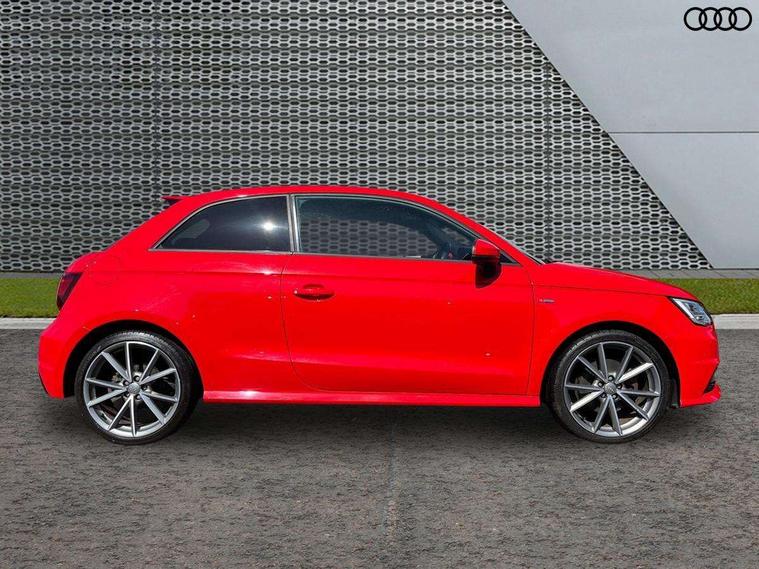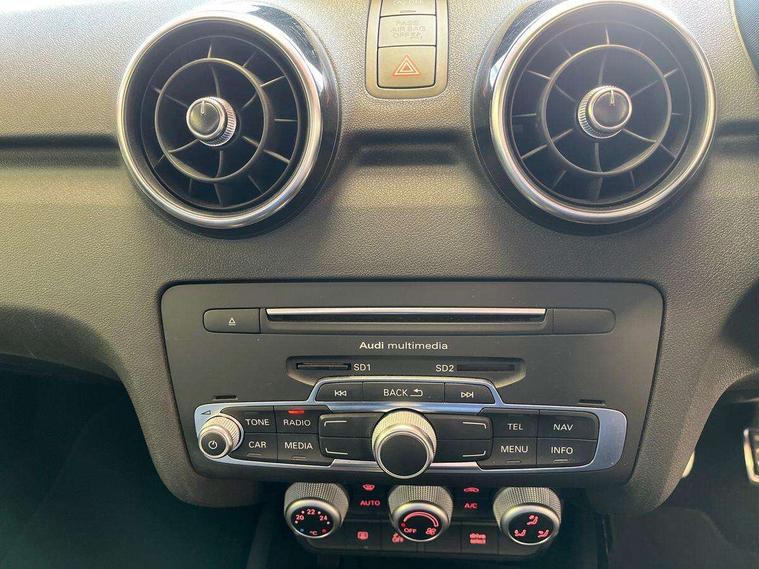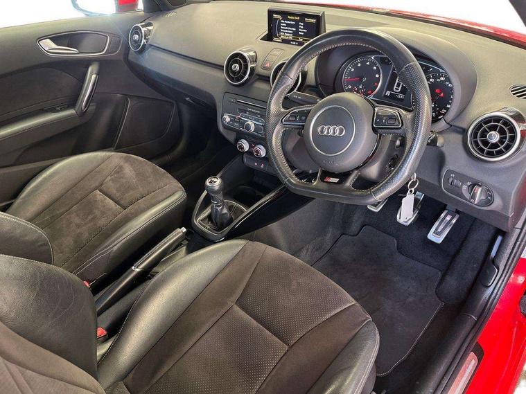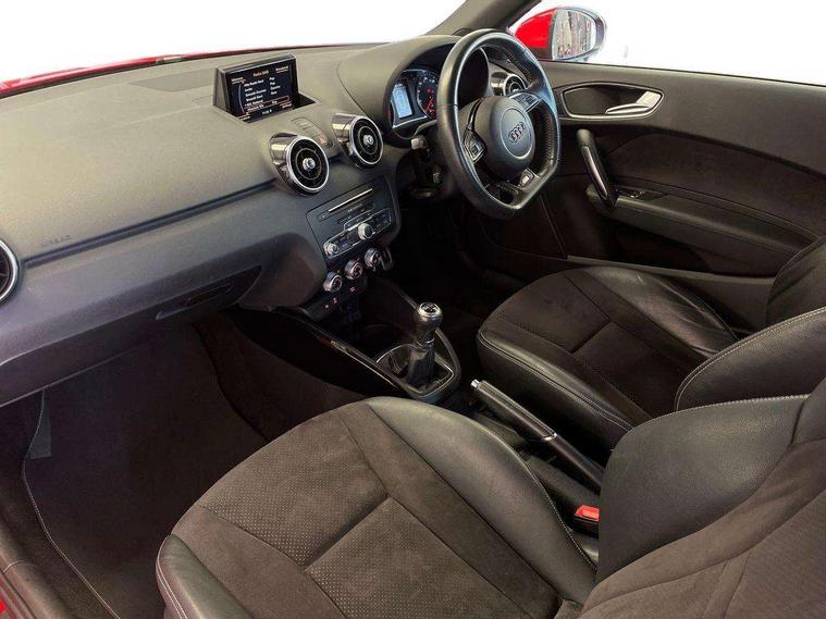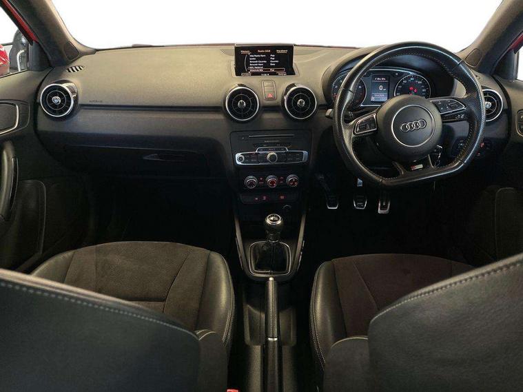 Cruise control, Driver's information system, Electro-mechanical PAS, Low washer fluid indicator, Service interval indicator, Voice control system, Additional SD card reader, Audi music interface, Bluetooth audio streaming, DAB Digital radio, Adaptive brake lights, Body coloured bumpers, Body coloured door mirrors, Electric adjustable door mirrors, Electric front windows, Front fog lights, Heat insulating glass, Heated door mirrors, Heated rear windscreen, Privacy glass, Rain and light sensors, Rear diffuser, Rear wiper, Roof spoiler, S Line body styling, Twin oval high gloss black exhaust tail pipes, Xenon plus headlights including automatic headlights, LED daytime running lights, LED rear lights, dynamic range control and headlight washers, 12V Accessory socket in centre console, 3 spoke flat bottomed multi-function leather steering wheel, Adjustable rear head restraints, Alcantara/leather upholstery, Black cloth headlining, Cupholders in centre console, Door sills trims with aluminium inlays, Electronic climate control (ECC), Front floor mats, Front head restraints, Front seats - 'Easy Entry', Front sports seats, Height adjustable front seats, Isofix attachments on outer rear seats, Jack and tool kit, Leather gear knob, Leather handbrake, Lumbar adjustment for front seats, Rake/reach adjustable steering wheel, Split folding rear seats, Stainless steel pedals, High-gloss black styling pack - A1, ABS/EBD, Brake assist function, Driver and passenger side airbags, Driver/Front Passenger airbags, EDL, ESP with ASR, First aid kit, Front and rear seatbelt reminder, Front passenger airbag deactivation, Head airbags, Height adjustable front seatbelts, Rear three point seatbelts x 2, Tyre pressure monitor, Warning triangle, Locking wheel bolts, Remote central locking with 2 remote folding keys, Thatcham category 1 alarm + immobiliser, Aluminium trim, High gloss black air vent sleeves, High gloss black centre console, Tyre repair kit,