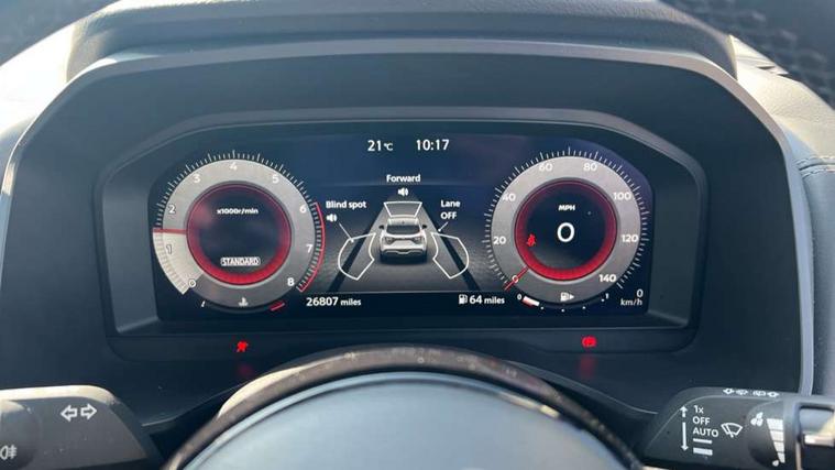 Android auto/Apple CarPlay (Wired), Blind spot warning, Drive modes (sport, normal, eco), Electric speed sensitive power steering, Emergency and breakdown call, Front and rear parking sensors, Full Digital 12.3" TFT Digital Combimeter, Google maps services - search, weather, 3D maps and Google street view, Idle stop/start system, Intelligent around view monitor, Intelligent Cruise control (ICC), Intelligent driver alert system, Intelligent forward collision warning, Intelligent lane intervention, Lane departure prevention, Lane departure warning system, Maximum speed limiter, Moving object detection, Nissan connect 12.3 inch touchscreen infotainment system, Nissan connect navigation, Push button starter, Rear cross traffic alert, Rear view camera, Remote control services - door locks, lights, horn and car locator, Telematics - notifications and connectivity services, TomTom live traffic services, Traffic sign recognition with legal speed adjustment, Trip computer, Virtual personal assistant and firmware over the air capability, Wireless apple carplay, 6 speakers, AM/FM audio system with DAB, Bluetooth audio streaming, Front USB connections (Type-A and Type-C), Rear USB charging only ports (Type-A and Type-C), Auto dimming rear view mirror, Auto rear wiper when reversing, Automatic hazard signal with emergency stop signal, Body colour mirror caps, Body coloured door handles, Bodyside mouldings, Chrome side window finisher, Door handle with button, Electric auto folding door mirrors, Electrically adjustable and heated door mirrors with LED turn indicator, Follow me home headlights, High beam assist, Intelligent auto headlights, LED daytime running lights, LED Headlights, LED rear lights, One touch front and rear electric windows with remote opening and closing, Partially body coloured bumpers, Privacy glass, Rear bumper with graphite insert, Rear reversing light (bulb lighting), Rear roof spoiler, Rear side wing doors, Rear styling plate, Shark fin antenna, Splash free rain sensing wipers, Super UV and infrared cut glass, Three blink turn signal, 12v power socket in dashboard and luggage, 2x Rear coat hooks, 3 bench rear seats in 2nd row, 3 rear headrests, 4 folding assist grip, 6 Luggage hooks - 4 on floor, 2 on side, 6-way manually adjustable driver's seat, 60/40 split folding rear seat bench, Ambient lighting around centre console, Centre console storage tray, Chrome interior door handles, Cloth monoform upholstery, Driver and front passenger sunvisors with illuminated vanity mirrors, Driver seat back pocket, Dual zone automatic climate control with pollen filter, Electrically adjustable lumbar support for driver, Front and rear door storage, Front centre console and armrest, Front cupholders x 2, Front door with bottle holders, Glovebox with light, Hard trunk cover, Height adjustable driver's seat, Height adjustable front headrests, Height adjustable passenger seat, Leather shift knob, Leather steering wheel, Luggage board system, Luggage space lighting, Manually adjustable passenger (slide recline + lifter), Multifunction steering wheel, Passenger seat back pocket, Rear armrest with 2 cupholders, Rear door bottle holders, Single front passenger seat, Soft PVC kneepad, Steering wheel switches, Sunglasses holder, Tilt/telescopic adjustable steering wheel, Two rear isofix child seat anchorage points with top tether, Welcome light and console tray ambient lighting, 3x3 point rear seatbelt pretensioners + load limiters, ABS with EBD and brake assist, Active brake limited slip, Auto hold function, Child locks on rear doors, Curtain and front side, far side airbags, Driver and passenger airbags, Driver, passenger and 2nd row rear seat belt reminder, Electronic parking brake, Front seatbelt pretensioners + load limiters, Height adjustable front seatbelts, Hill start assist, Intelligent blind spot intervention, Intelligent front emergency braking with pedestrian, cyclist recognition and junction assist, Intelligent rear automatic braking, Tyre pressure monitoring system, Vehicle dynamic control, Capless fuel filler, Engine immobiliser, Intelligent Key, Remote central door locking with deadlocking, Thatcham Cat.1 alarm, Interior instrumental panel B finisher, 18" Diamond cut alloy wheels, Tyre puncture repair kit,