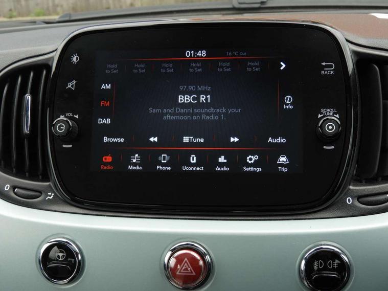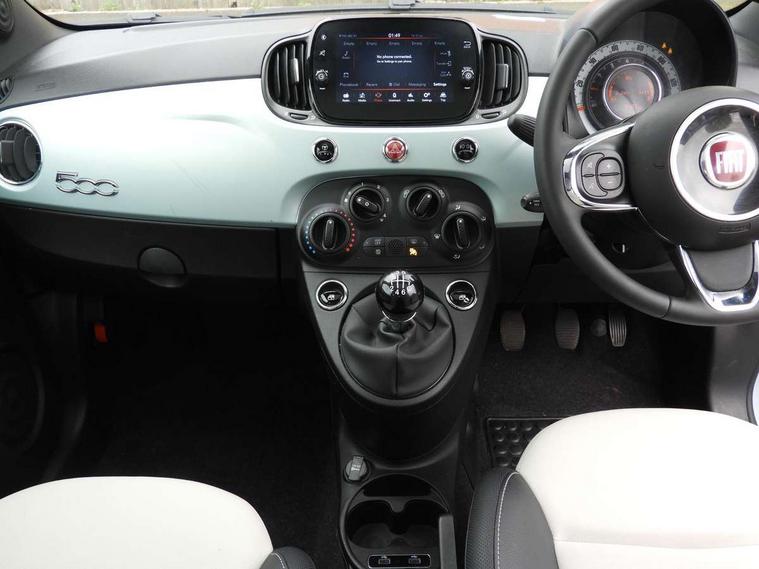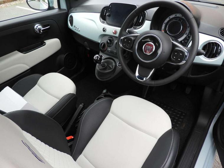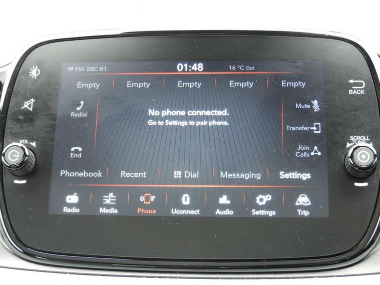 Apple car play/Android Auto, Cruise control, E-call, External temperature gauge, Power assist steering, Rear parking sensor, Speed limiter, Stop/start system, Trip computer, 4 speakers, 7" HD Touchscreen Radio, Bluetooth, USB and DAB, Rear speakers, 3rd brake light, Auto headlights, Body colour bumpers, Body coloured electrically adjustable door mirrors, Chrome plated exterior door handles, Dolcevita badge on fender, Dusk and rain sensors, Electric front windows, Fixed glass sunroof with sunblind, Front fog lights, Halogen headlamps, Heat insulated glass, Heated rear windows with wash wipe, LED daytime running lights, Rear side wing doors, Rear wiper, 1 passenger grab handle, 2 seat bench in second row, 50/50 split folding rear seats with height adjustable rear headrests, Air conditioning, Auxilliary 12V power socket, Chrome kit, Front headrests, Height adjustable drivers seat, Height adjustable steering wheel, Isofix child seat preparation, Single front passenger seat, Techno leather steering wheel with audio controls, 7 airbags - Driver, passenger, side, window and drivers knee airbags, ABS/EBD, ESC + ASR/MSR + HBA + Hill holder, Manual passenger airbag deactivation function, Traction control, Tyre pressure monitoring system, Automatic door locking, Immobiliser, Locking fuel filler cap, Remote central locking, 15" Alloy wheels,
