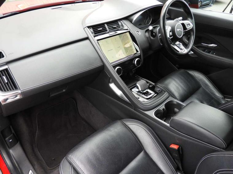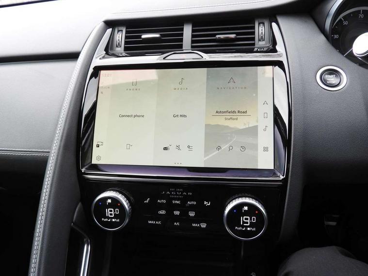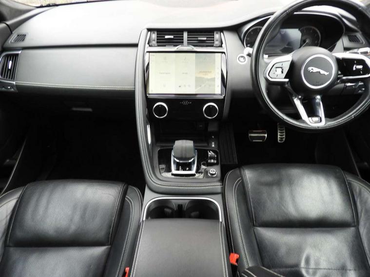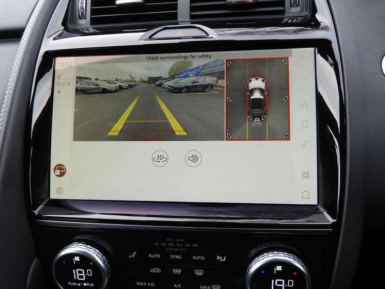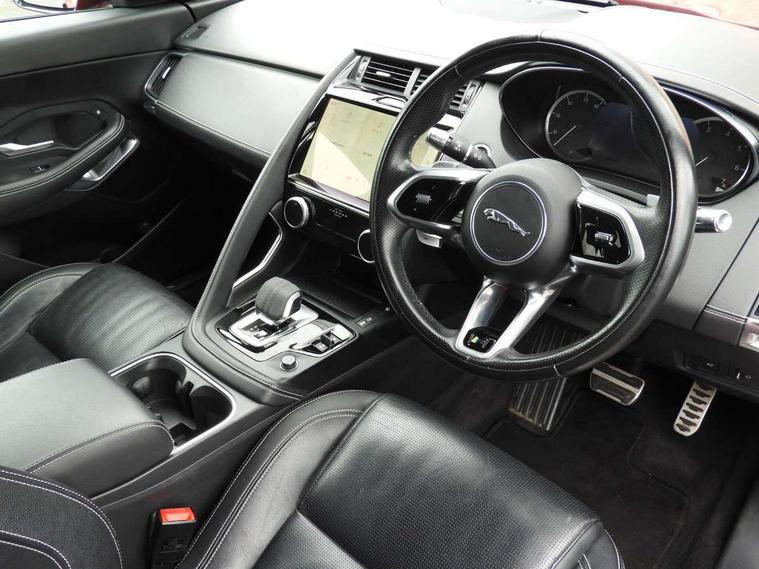 11.4" touchscreen with central ICP, 3D 360 degree surround camera with rear camera wash, Android Auto, Apple car play, Driver condition monitor, Electric power assisted steering, Front and rear parking aid, InControl remote, Jaguar drive control with adaptive surface response, Jaguar Toggle sport shift selector, Lane keep assist, Outside temperature gauge, Pivi pro connected infotainment system with smart settings and navigation pro, Traffic sign recognition with adaptive speed limiter, Trip computer, Voice control system, Efficient Driveline, Large fuel tank, Passive suspension, AM/FM DVD MP3 radio, Bluetooth connectivity including audio streaming, DAB digital audio broadcast, Body coloured side sills, Chrome side window surrounds, Dark satin grille tips, Electric front/rear windows with one touch/auto up/down, Embossed leaper for grained and windsor leather, Front fog lights, Heated washer jets, Heated windscreen, Metal load space scuff plates, No badges, R Dynamic badge, R Dynamic body colour bumpers, Rain sensor windscreen wipers, Twin tailpipes with finishers, 3 rear head restraints, Bright metal pedals, Carpet mats, Enhanced ambient lighting, ISOFIX on outer rear seats, Multifunction steering wheel, R-Dynamic branded leather steering wheel, Satin chrome gearshift paddles, 3x3 point rear seatbelts, ABS, All surface progress control (ASPC), DSC - Dynamic Stability Control, Electronic brake force distribution, Electronic parking brake, Emergency brake assist, Emergency braking, Front airbags with passenger seat occupant detector, Front and rear curtain airbags, Front and rear seatbelt reminder, Front side airbags, Hill start assist, Low friction launch, Power child locks, Torque vectoring brake, Tyre pressure monitoring system, Intrusion sensor and alarm, Locking wheel nuts,