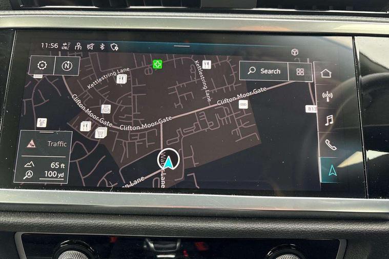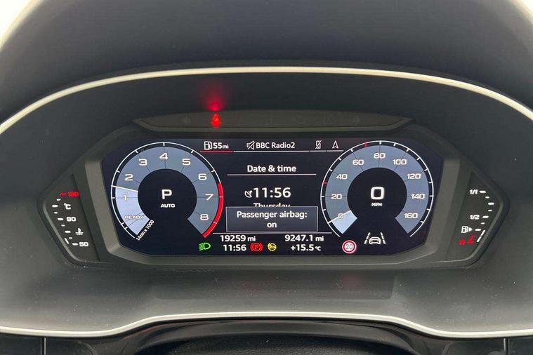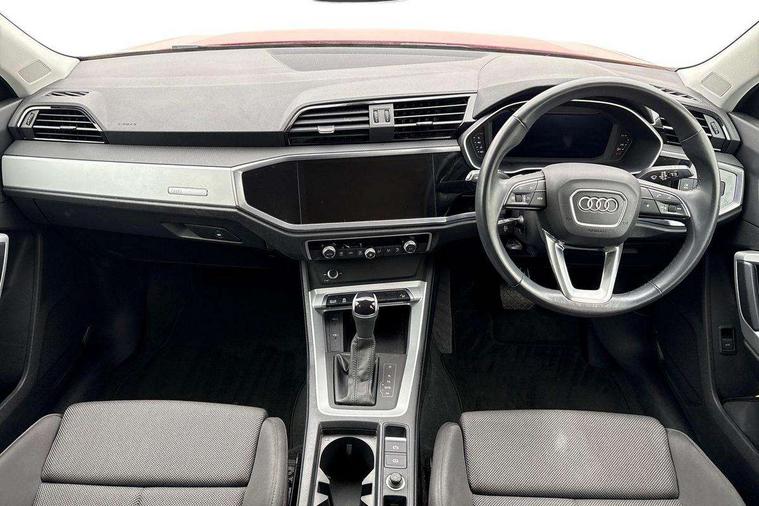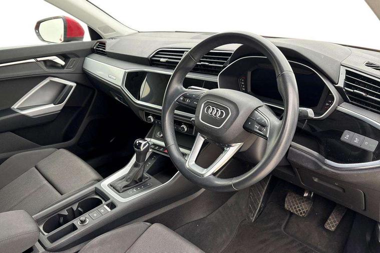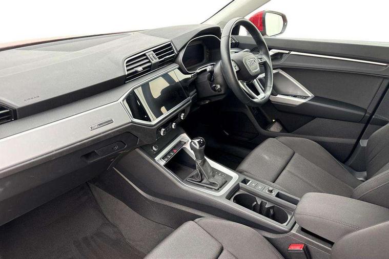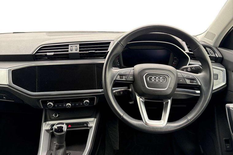 Audi drive select, Audi lane departure warning, Audi Virtual Cockpit - 10.25" display, Bluetooth interface, Camera based traffic sign recognition, Legal emergency call, MMI Navigation Plus with high resolution 10.1 inch touchscreen colour display, Power operated tailgate, Progressive steering, Service interval indicator, Smartphone interface includes wireless Apple carplay/Android Auto, Start stop system with recuperation, Voice control system with natural language interaction, Sports suspension, 2 USB-C ports with charge and data functions, 6 passive loudspeakers, DAB digital radio module, Acoustic windscreen, Aluminium window trim, Auto dimming frameless rear view mirror, Bumpers and underbody protection in contrasting manhattan grey paint finish, Diffuser grille in grained matt black, Diffuser trim in manhattan grey metallic, Door sill trims with illuminated aluminium inlay, Electrically folding, adjustable and heated door mirrors with integrated LED side indicators and kerb view function for passenger side, Front and rear electric windows, Front fog lights, Front side air inlets in Manhattan grey metallic, Grille surround in aluminium silver matt, High gloss black finish B and C pillars, Honeycomb design radiator grille in matt titanium black, LED Dynamic rear indicators, LED headlights with LED daytime running lights, LED rear lights, LED third brake light, Rain and light sensors, Rear side wing doors, Rear wiper, Variable front intermittent wipers, 12V socket in rear centre console, 3 seat bench in 2nd row, 3 spoke multi-function leather steering wheel, 40:20:40 folding with manual adjustment for 60:40 forwards/backwards position and backrest angle, Dual zone electronic climate control, Front and rear floor mats, Front and rear headrests, Front and rear roof module including reading lights, Front centre armrest, Glove compartment lighting, Height and reach adjustable steering wheel, ISOFIX child seat mounting for front passenger with airbag deactivation and outer rear seat including top tether attachment point for outer rear seats, Luggage compartment light right in white, Luggage compartment sill protection in stainless steel, Lunar silver cloth headlining, Manual front seats with height adjustment, Single front passenger seat, Non smoking pack - Q3, 3x3 point rear seatbelts, 6 airbags - Driver, front passenger, curtain and side windows, Audi pre-sense front with pedestrain and cyclist recognition, Electrically operated child locks on rear doors, Electromechanical parking brake, Electronic stabilisation control including ABS, ASR and EDL, Front seatbelt reminder, Hill descent control, Hill hold assist, Pre sense basic, Seatbelt monitoring, Tyre pressure warning, Warning triangle and first aid kit, Anti theft alarm, Anti theft wheel bolts, Immobiliser, Remote central locking, Black dashboard, Detail dashboard around MMI touch colour display in glass look, black with surround in aluminium look, Micrometallic silver inlay,
