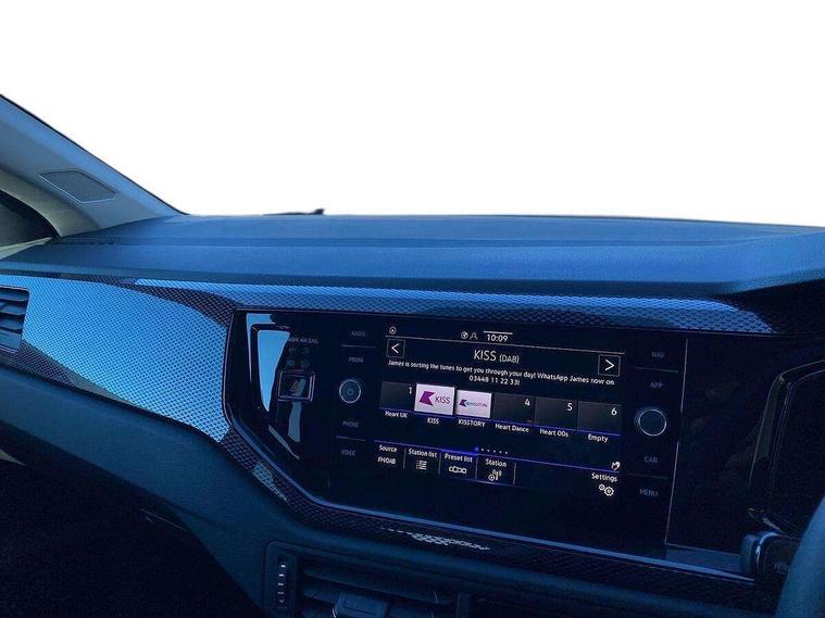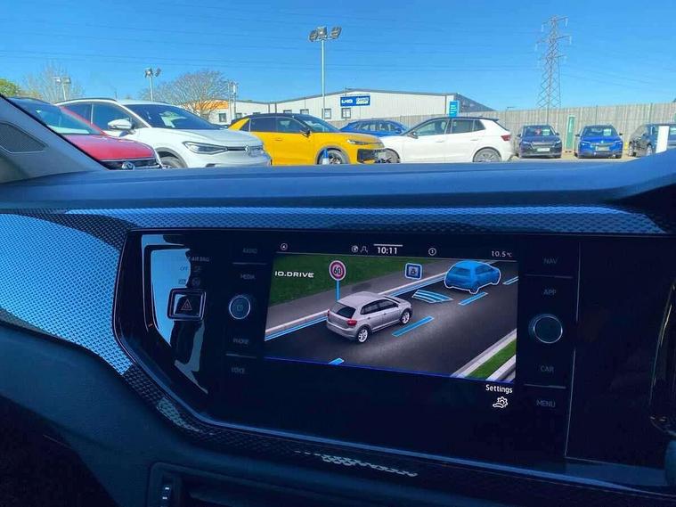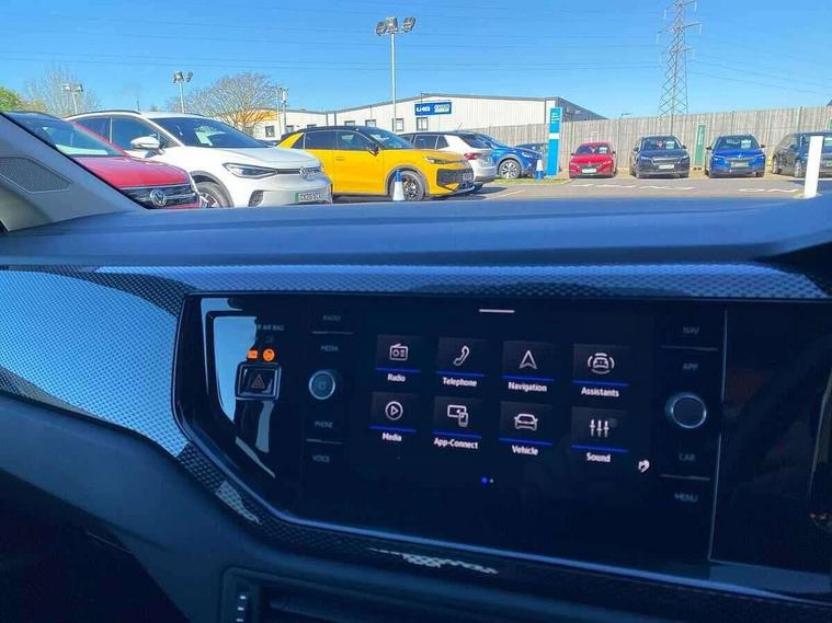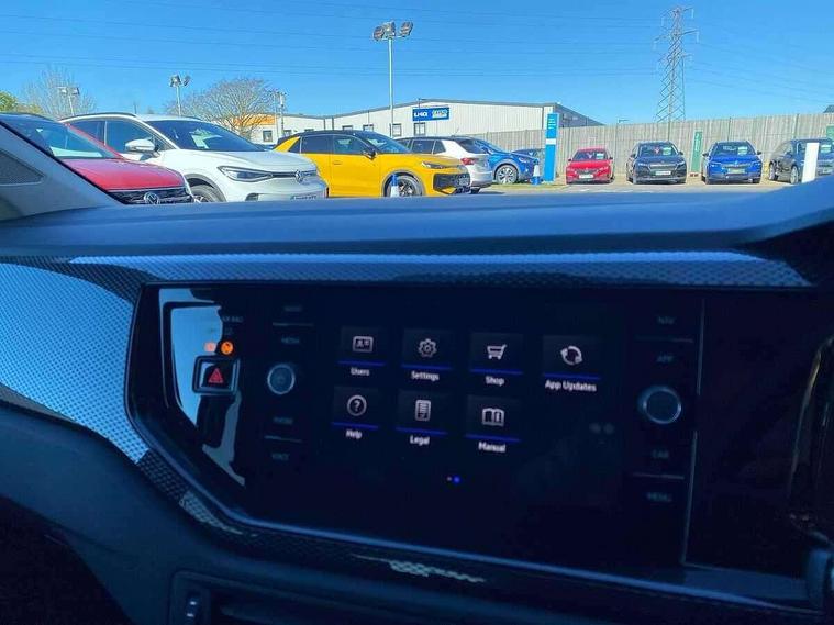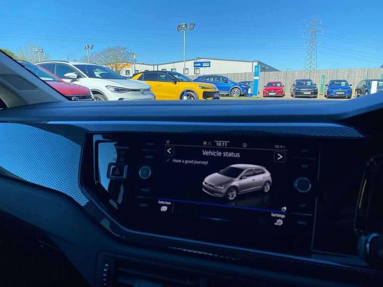 Advanced driver attention and drowsiness monitor, Bluetooth mobile phone interface, Dynamic road sign display, Emergency call service, Mobile phone preparation with inductive charging function, Multifunction front facing camera for distance control, Power assisted speed sensitive steering, Predictive adaptive cruise control without follow-to-stop and speed limiter, Preparation for navigation system with media and internet package, Preparation for We connect and We connect plus, Rear view camera, Speedo and rev counter, electronic odometer, trip, service interval display and exterior temperature gauge, Standard rear axle, Travel Assist - Lane keeping system and traffic jam assist, Travel assist including emergency assist, Trip computer, Warning signal and warning light for front and rear seatbelts not fastened, Washer fluid level indicator, Wireless app connect, Front wheel drive, Rear shock absorpion, Start-stop system with battery regeneration (recuperation - energy recovery during braking), DAB Digital radio, Diversity antenna for FM reception, Automatic dimming interior rear view mirror, Automatic headlight control with LED separate daytime running lights with coming/leaving home function, Body colour bumpers with chrome inserts, Body colour door handles, Body colour door mirrors, Electric front windows, Engine badge deletion, Headlight range adjustment, Heat insulating and laminated safety glass windshield, LED Headlights, LED rear combination lamps, Power folding adjustable/heated exterior mirrors and front passenger exterior mirror lowering function, Rain sensor, Rear electric windows, Rear fog light, Rear side wing doors, Rear tinted glass from B-pillar backwards approx 65% tinted, Rear windscreen washer and wiper with interval delay, Third brake light, 12V power socket in centre console, 2 front and 2 rear reading lights with switch off delay and dimmer, 2 USB-C ports in the front, 2 USB-C charging sockets on the center console in the rear, 3 rear head restraints, 60/40 split folding rear seat and rear seat bench not split, Carpet mats, front and rear, Ceramique roof lining, Chrome plated radiator grille inserts, air vent surrounds and light switch surrounds, Door and side trim panel, Driver and front passenger seat height adjustment, Driver/passenger sunvisors with illuminated vanity mirrors, Front centre armrest, Front seat backrest storage pockets, Front standard seats, Handbrake lever handle in leather, Hartley/Thomas cloth upholstery, Headliner in recycled material, Isofix child seat preparation easy-fit (for two outer rear seats, and front passenger seat) compatible with I-size, Leather trimmed gear knob, Luggage compartment cover, Luggage compartment lighting, Removable luggage compartment floor, Single front passenger seat, Standard climatic zones, Standard pedal cluster, Three spoke leather wrapped multifunction steering wheel with shifting paddles, Light and vision pack - Polo, 3 point height adj front seatbelts + pretensioners, 3 point seat belt for centre rear seat, 3 point seatbelts, outer rear with ECE lable, ABS, Driver and front passenger airbag with front passenger airbag deactivation, Drivers and front passengers safety optimised head restraints, ESC (Electronic stability control) + EDL (Electronic Differntial lock) and ASR (Traction control), Extended and predictive pedestrian/ cyclist protection, Front assist with autonomous emergency braking (for Adaptive Cruise Control ACC up to 130 mph), Front curtain and side airbags with center airbag, Front disc brakes, Hill hold control, Manual child lock in rear doors, Rear drum brakes, Single tone horn, Tyre pressure loss indicator, Alarm with interior protection, Anti-theft alarm system with interior monitoring, backup horn, and towing protection, Anti-theft wheel bolts, Electronic engine immobiliser, Lava stone black gloss/matt decorative inserts in dash and front door panels, 16" Torsby alloy wheels, Low rolling resistance tyres,