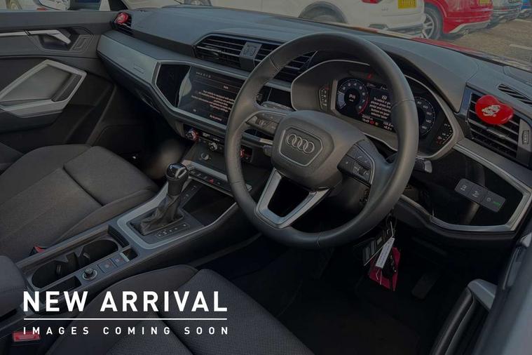 Audi drive select, Audi lane departure warning, Audi Virtual Cockpit - 10.25" display, Bluetooth interface, Camera based traffic sign recognition, Legal emergency call, MMI Navigation Plus with high resolution 10.1 inch touchscreen colour display, Power operated tailgate, Progressive steering, Service interval indicator, Smartphone interface includes wireless Apple carplay/Android Auto, Start stop system with recuperation, Voice control system with natural language interaction, Sports suspension, 2 USB-C ports with charge and data functions, 6 passive loudspeakers, DAB digital radio module, Acoustic windscreen, Aluminium window trim, Auto dimming frameless rear view mirror, Bumpers and underbody protection in contrasting manhattan grey paint finish, Diffuser grille in grained matt black, Diffuser trim in manhattan grey metallic, Door sill trims with illuminated aluminium inlay, Electrically folding, adjustable and heated door mirrors with integrated LED side indicators and kerb view function for passenger side, Front and rear electric windows, Front fog lights, Front side air inlets in Manhattan grey metallic, Grille surround in aluminium silver matt, High gloss black finish B and C pillars, Honeycomb design radiator grille in matt titanium black, LED Dynamic rear indicators, LED headlights with LED daytime running lights, LED rear lights, LED third brake light, Rain and light sensors, Rear side wing doors, Rear wiper, Variable front intermittent wipers, 12V socket in rear centre console, 3 seat bench in 2nd row, 3 spoke multi-function leather steering wheel, 40:20:40 folding with manual adjustment for 60:40 forwards/backwards position and backrest angle, Dual zone electronic climate control, Front and rear floor mats, Front and rear headrests, Front and rear roof module including reading lights, Front centre armrest, Glove compartment lighting, Height and reach adjustable steering wheel, ISOFIX child seat mounting for front passenger with airbag deactivation and outer rear seat including top tether attachment point for outer rear seats, Luggage compartment light right in white, Luggage compartment sill protection in stainless steel, Lunar silver cloth headlining, Manual front seats with height adjustment, Single front passenger seat, Non smoking pack - Q3, 3x3 point rear seatbelts, 6 airbags - Driver, front passenger, curtain and side windows, Audi pre-sense front with pedestrain and cyclist recognition, Electrically operated child locks on rear doors, Electromechanical parking brake, Electronic stabilisation control including ABS, ASR and EDL, Front seatbelt reminder, Hill descent control, Hill hold assist, Pre sense basic, Seatbelt monitoring, Tyre pressure warning, Warning triangle and first aid kit, Anti theft alarm, Anti theft wheel bolts, Immobiliser, Remote central locking, Black dashboard, Detail dashboard around MMI touch colour display in glass look, black with surround in aluminium look, Micrometallic silver inlay,