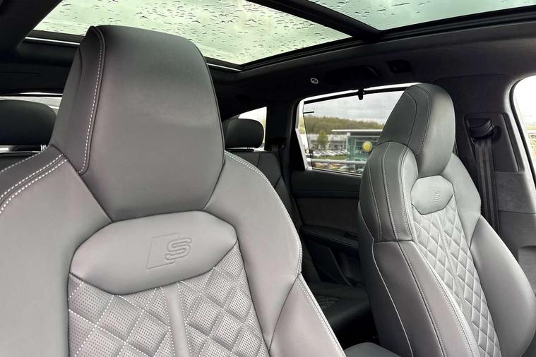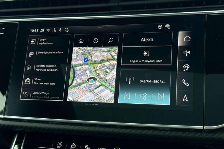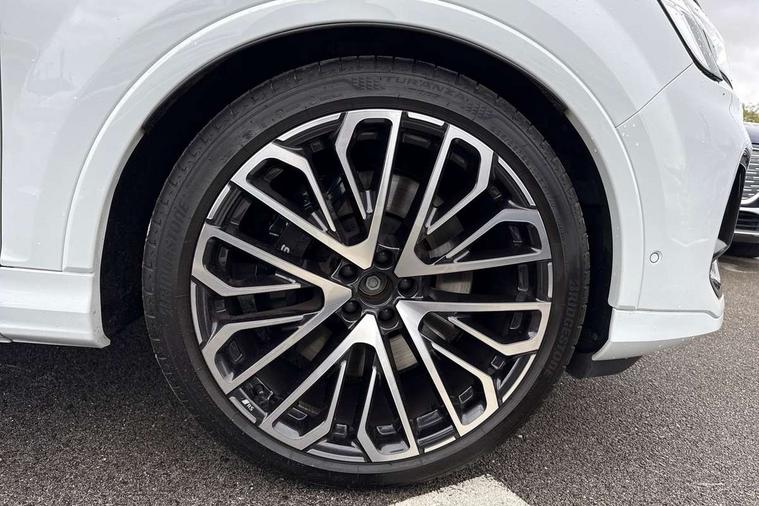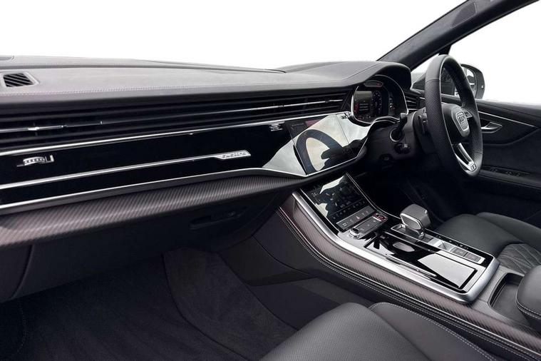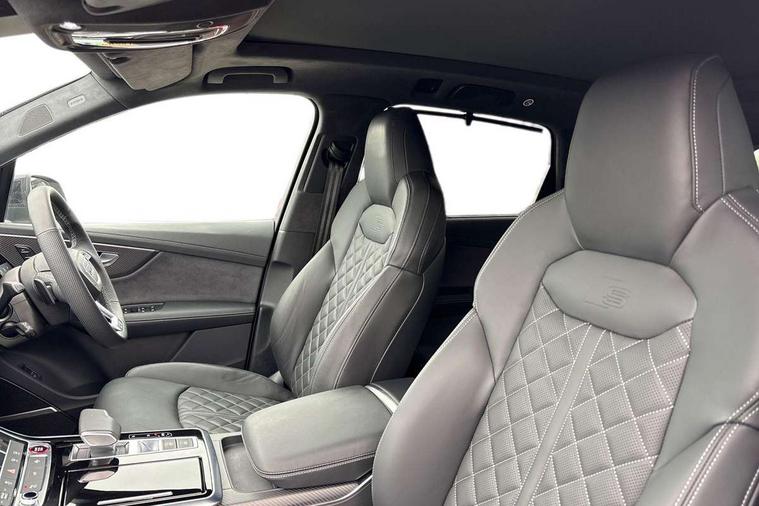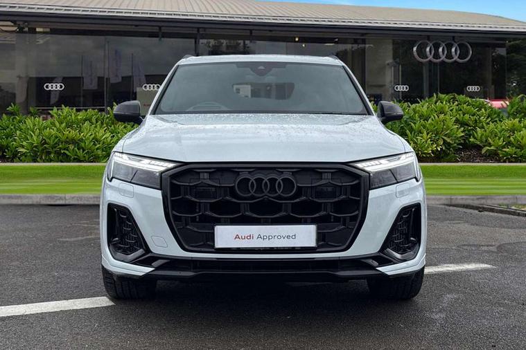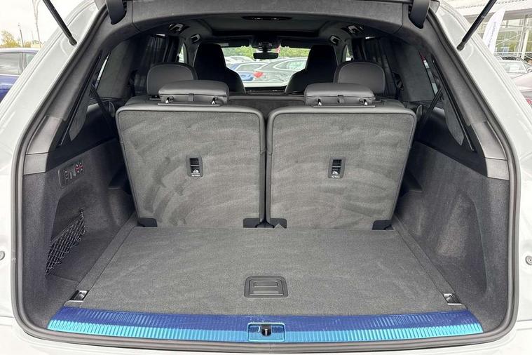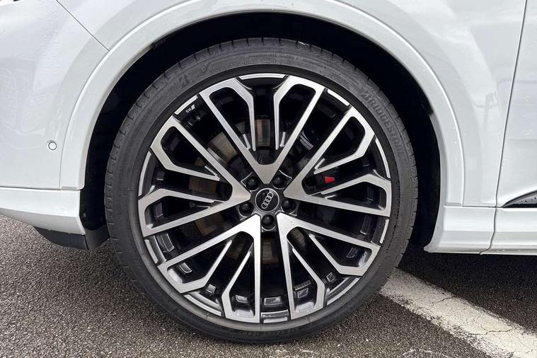 360 degree camera, Audi connect safety and service (e-call), Audi connect with Amazon Alexa Integration, Audi drive select (Auto, Comfort, Dynamic, Efficiency, Individual, Off-road and All road), Audi phone box light with wireless charging, Audi virtual cockpit plus, Bluetooth interface, Camera based traffic sign recognition, Collision avoidance assistant, Electromechanical power steering, Head up Display, MMI navigation plus with MMI touch screens includes 10.1" and 8.6" screens with haptic feedback, Natural voice recognition, Operating buttons in Matte black, Power door closure, Power operated tailgate, Smartphone interface includes wireless Apple carplay/Android Auto, Start/stop system, 48V Mild hybrid technology, 85 litre fuel tank, Electromechanical active roll stabilisation, Quattro with sport differential, S specific adaptive air sport suspension, Audi music interface - front 2 USB-C ports with charger and data functions, Bang + Olufsen premium sound system, DAB digital radio module, Adaptive windscreen wipers with integrated washer jets, Aluminium window trim, Audi Beam uses LEDs to project Audi rhombus S logo onto the ground as you exit your SQ7, Auto dimming frameless rear view mirror, Black roof rails, Digital OLED rear combination lamps, Electrically adj heated/folding + automatically dimming exterior mirrors with memory + automatic kerb side function for passenger side exterior mirror, HD Matrix LED headlights with Audi laser light, Headlight washers, Heat insulating glass in windshield, Integrated LED indications in door mirrors, LED 3rd brake light, LED daytime running lights, LED rear tail lights, Loading edge protection in stainless steel, Privacy glass - dark tinted rear and rear side windows from B-pillar backwards, Rear side wing doors, Rear wiper, 2 seat bench in 3rd row, 3 seat bench in 2nd row, 3 spoke heated leather multi-function steering wheel including paddle shift, 4 zone deluxe automatic climate control, 7 seat layout with ISOFIX points for the front passenger seat and rear passenger seat, Black carpets, Black dinamica headlining, Comfort front centre armrest, Double sun visors with illuminated vanity mirrors, Electric adjustable front seats/backrest bolsters, lumbar support, memory functionality, Electric luggage compartment cover, Electric steering wheel adjustment, Folding rear seats, Front head restraints, Front/rear floor mats, Heated front seats, Illuminated door sill trims with S logo, ISOFIX child seat mounting for front passenger seat and 2 outer rear seats with top tether child seat mounting for all 3 rear seats, Luggage compartment sill protection in stainless steel, Rear head restraints, Rear seat bench plus for the second row, with forwards/backwards sliding adjustment and backrest angle adjustment, Seat ventilation and massage function in the front, Single front passenger seat, Stainless steel pedals, Upper interior element with contrasting stitching, Valcona leather upholstery with front super sport seat S embossed logo, Black styling pack plus - Q7, City assist pack without Pre sense basic - Q7, Extended leather pack - SQ7, Multi-coloured extended LED Interior lighting pack - Q7, Technology Pack Pro S Without Advance Key - SQ7, Technology pack pro S without Audi pre sense basic - SQ7, Tour pack with swerve assist - Q7, 3 point seatbelts on all rear seats, Audi pre sense front, Child locks on rear doors, Convenience key with safelock and gesture tailgate, Driver and front passenger, front side and curtain airbags, Electromechanical parking brake, Electronic Stabilisation Control (ESC) including ABS, ASR and EDL, Extended pedestrian protection measures, Hill hold assist, Seatbelt reminder, Tyre pressure loss indicator, Warning triangle and first aid kit, Anti theft alarm with tow away protection, Anti-theft wheel bolts and wheel loosening detection, Remote central locking, Black dashboard, Tool kit, Tyre repair kit,