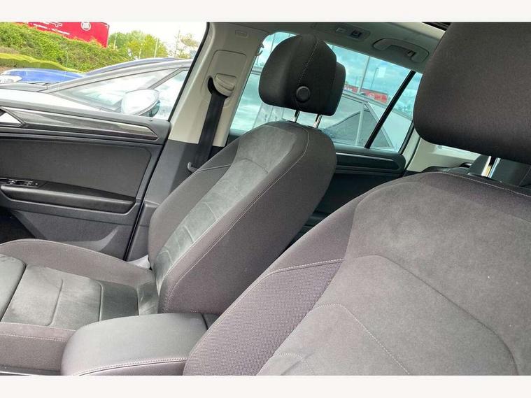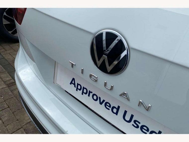 Adaptive cruise control ACC stop and go including speed limiter, App-Connect incl. App-Connect Wireless for Apple CarPlay and Android Auto, Bluetooth phone integration system, Digital Cockpit Pro - Active info display, Distance control assist, Driver alert system, Driver profile selection, Dynamic road sign display, eCall emergency call system, Electromechanical speed sensitive power steering, Engine start/stop button, Lane keeping system Lane Assist, Lights on warning, Motorised electric tailgate operated via key fob, drivers door and foot movement under tailgate, Multifunction front facing camera, Outside temperature display, Premium multifunction display with multi colour display, Remote control boot opening, Rev counter, Revision / skills operating concept travel assistant, Service interval indicator, Speed limit display, Start/stop system with regenerative braking, Tailgate/trunk lid unlocking from outside, Trip computer, Warning sound and light for doors and tailgate open, Battery regeneration during braking, XDS electronic differential lock for improved traction and handling, 2 USB-C ports in the front, 1 USB-C charging socket on the center console in the rear, Diversity antenna for FM reception, Radio, SD card slot, Simultaneous pairing of 2 compatible mobile devices, SMS functionality - read, compose and send SMS messages using touch-screen display, Title and cover art display, Aluminium door sill protectors, Auto dimming interior rear view mirror, Automatic headlight control system, Body colour door handles, Body coloured bumpers, Body coloured door mirrors with integrated indicators, Coming/leaving home lighting function, Dynamic headlight range control, Front and rear electric windows, Heated rear window, High level 3rd brake light, IQ light-Adv high beam, Dynamic light assist for LED matrix headlamp+LED separate DRL+DCL, dark red rear LED tech, Poor weather light+ cornering light, Laminated safety glass windshield, heat and sound insulating, LED rear number plate lights, Poor weather light and cornering light, Privacy glass for rear side windows and rear window, Rain sensor windscreen wipers, Rear exhaust tailpipe, Rear fog lamp, Rear side wing doors, Rear windscreen washer and wiper with interval delay, Side and rear windows in heat insulating glass, Tilting and sliding panoramic sunroof with rear panoramic sunroof, Trailer Stability Programme, Windscreen wipers/ intermittent wipe + 4 position delay, 12V outlet in center console rear and in luggage compartment, 12V outlet in front and tray, 2 cup holders in front, 2 LED front reading lights, 2 LED rear reading lights, 3 bench rear seats in 2nd row, 3 rear headrests, 4 load lashing points, 40:20:40 split folding rear seats, Air Care Climatronic 3 zone automatic climate control with enhanced air filter and controls in the rear, Backrest release for left front seat, Climate control unit rear with touch function, Door and side trim panel in foam film and woven fabric, Front + rear carpet mats, Front centre armrest, Front footwell illumination, Front seats head restraints (x-adjustment), Height adjustable front seats, Height/reach adjust steering wheel, Instrument lighting white adjustable panel illumination, Interior light with delay, Isofix Preparation 2 Rear child seats, Leather gear knob, Lockable cooled glovebox, Luggage compartment lighting, Luggage net, Rear bench seat asymetrically split folding, longitudinally movable and folding with load-through hatch and center armrest, Remote unlocking for rear seat backrest, Removable luggage cover, Removable rear headrests, Safety optimised front head restraints, Single front passenger seat, Sliding/reclining rear seats, Standard rear seat release, Storage compartment in driver's door, Storage compartment in passenger's door, Storage compartment in rear doors, Storage compartments in luggage area left and right, Storage tray on dashboard, Sun visors with illuminated vanity mirrors, Top front comfort seats, Variable boot floor, height adjustable and removable, Ambience pack - Tiguan, Chrome pack - Tiguan, Easy open and close pack with safelock - Tiguan, 3 point seat belt for centre rear seats, 3 point seat belts with seat belt pretensioners for the outer rear seats, Active bonnet, Curtain airbags for front and rear passengers, Driver/Front Passenger airbags, Drivers knee airbag, Electronic parking brake with auto hold, Electronic Stability Control with driver steering recommendation, ABS, ASR, EDL, EDTC and trailer stabilization, Front assist with autonomous emergency braking (for Adaptive Cruise Control ACC up to 130 mph), Front disc brakes, Front passenger airbag deactivation, Front side airbags, Height adjustable front 3 point seatbelts + pretensioners, Hill hold control, Manual child proof rear door locks, Pedestrian monitoring system, Power assisted brakes, Proactive passenger protection system in combination with front assist, Rear disc brakes, Rigid safety cell with front and rear crumple zones, Two tone horn, Warning sound and light for front seat belts if unfastened, Anti theft alarm system with interior monitoring, backup horn and towing protection, Anti theft wheel bolts, Central locking system with safelock radio remote control and 2 remote control folding keys, Electronic engine immobiliser, Tool kit,