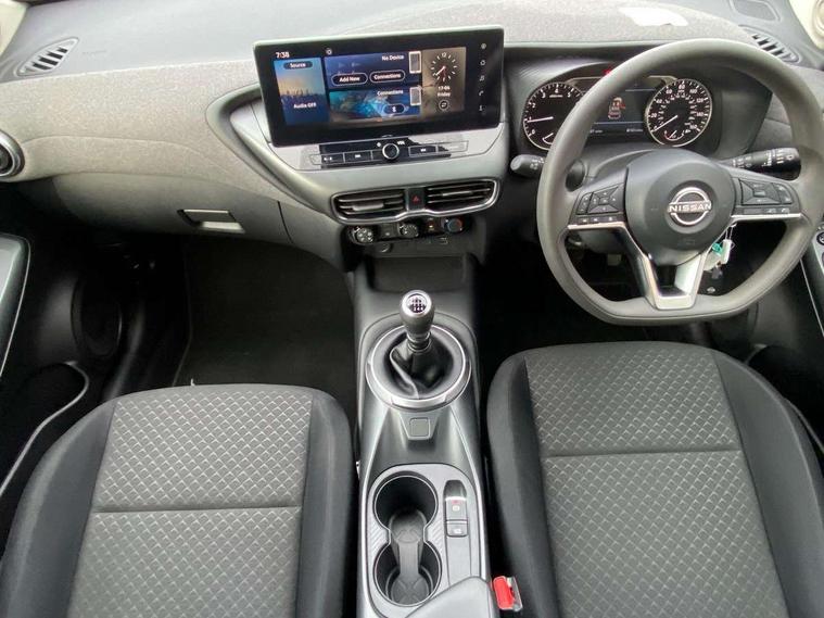 7" full colour TFT screen combimeter, Cruise control + speed limiter, Emergency and breakdown call, Idle start/stop system, Intelligent driver alert system, Intelligent lane intervention, Lane departure warning system, Nissan connect 12.3" touch screen entertainment system, Outside temperature sensor, Power Steering, Rear view camera, Traffic sign recognition, Trip computer, Voice recognition, WiFi connectivity, Wireless Apple CarPlay and Google Android auto, 2 X Rear console USB port, 4 speakers, Bluetooth system, USB, Aux-in and 12V socket, DAB Digital radio, Automatic hazard signal with emergency stop signal, Body colour door handles, Electrically adjustable door mirrors with integrated indicators, Follow me home headlights, Front and rear electric window with one touch driver window, High beam assist, LED 3rd brake light, LED daytime running lights, LED headlamps, LED rear fog lamp, LED rear lamps, Pearl black door mirrors, Rear side wing doors, Rear wiper, Roof spoiler, Shark fin roof antenna in solid Black, Three blink turn signal, 3 height adjustable rear headrests, 3 seat bench in 2nd row, 60/40 split folding rear seat, Cloth upholstery, Driver/passenger sunvisors and vanity mirrors, Front and rear cabin lights, Front armrest, Front door pockets with bottle holders, Front head restraints, Height adjustable driver's seat, Internal chrome door handles, Luggage space lighting, Monoform sporty seats, Multifunction steering wheel, Rear door bottle holders, Single front passenger seat, Smooth synthetic leather steering wheel, Telescopic steering wheel adjustment, Two cupholders in front centre console, Two rear isofix child seat anchorage points with top tether, Welcome light and console tray ambient lighting, ABS with EBD and brake assist, Active ride control, Active Trace Control, Driver and passenger airbags, Driver and passenger side airbags, Electric handbrake with auto hold function, Electronic Stability Programme (ESP), Front and rear curtain airbags, Height adjustable seatbelts, Hill start assist, Intelligent emergency braking with pedestrian and cyclist recognition, Rear door child safety locks, Seatbelt reminder for driver/front passenger and rear seats, Three 3 point rear seatbelts, Traction control, Tyre pressure monitoring system, VDC Dynamic Vehicle Control, Alarm, Immobiliser, Remote central locking, 17" Sakura Flex wheels, Tyre puncture repair kit,