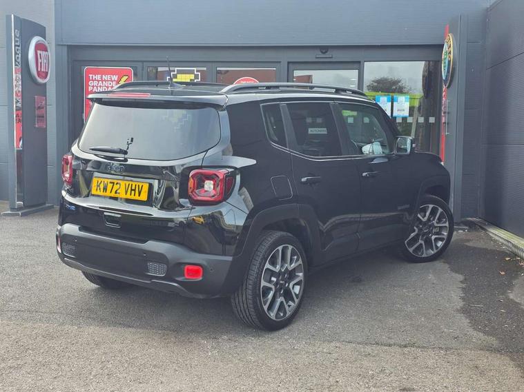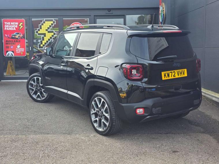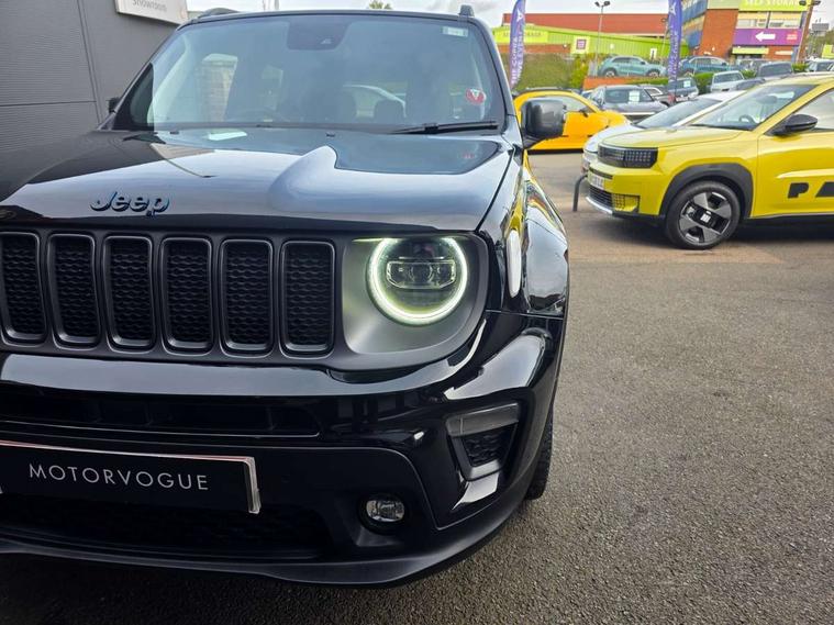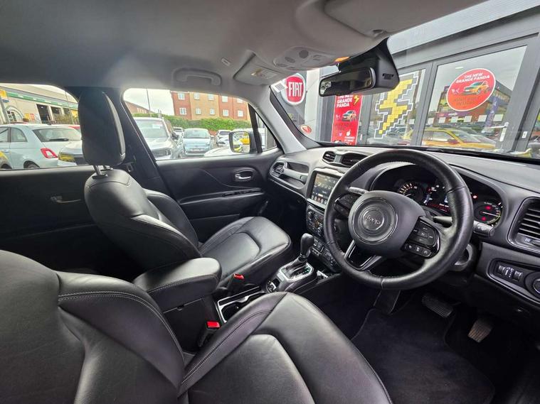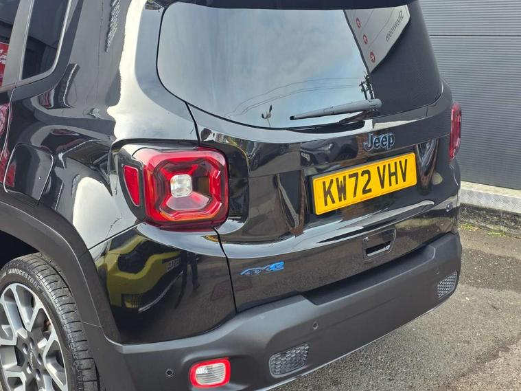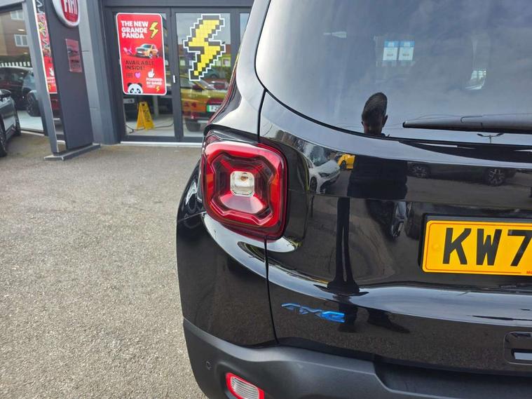 Adaptive cruise control, Apple car play/Android Auto, eCall emergency call system, Electric servo assisted steering, Forward collision warning plus with mitigation, Front parking sensors, GPS navigation, Instrument cluster with 7" colour TFT Display, Lane departure warning plus, Odometer, Radio/Navigation system with 8.4" touchscreen, Rear parking sensor, Rev counter, Selec terrain system with sport mode, Speed limiter push button on steering wheel, Tachometer, TBM connectivity EMEA, Telematic box module (TBM), Uconnect live service, 7.4 kW onboard charger, Alternator default, Battery run down protection, Battery skid plate, Electronic roll mitigation, EV/PHEV mode 2 charging cable 1, Smart alternator, 2nd row fully functional USB port, DAB digital audio broadcast, Media hub with USB and aux input, Steering wheel control with bluetooth, 3rd brake light, Acoustic components 1, Active shutter grille, Aspheric door mirrors, Auto headlights, Black lower side door cladding, Body colour door handles, Buzz model altitude S, Coastdown and run-in optimization, Day light opening Moldings, Driver & front passenger power windows with express up and down, Electric adjustable heated door mirrors, External rear view mirrors with electrical drive and defrost, Front license plate bracket, Front Towing eye, Integrated antenna, LED daytime running lights, LED fog lamps, LED Headlights, LED light for license plate, LED tail lights, Lower body side cladding, New front rails for getrag gearbox, Painted external rear view mirrors, Power rear windows, Rain sensor, Rear side wing doors, Rear wiper, Roof rails, Side repeater lamp in exterior mirrors, Solar glass, Tailgate handle, Tinted privacy glass, Towing eye brackets, Trailer sway damping, 12v power point in centre console, 12V power point in luggage area, 2 way electrical driver lumbar adjustment, 3 point rear seatbelts with load limiter, 3 rear head restraints, 3 seat bench in 2nd row, 3rd rear headrest height adjustable, Carpeted floor mats, Centre console storage, Door courtesy lamps, Door trim with vinyl door, Dual zone automatic air conditioning, Eco shift schedule, Front centre console cup holders, Front headrests, Front passenger fold forward seat with soft upholstered seatback, Front seat sliding armrest with interior storage, Heated front seats, Heated steering wheel, Interior grab handles, Interior LED lighting, Leather gear knob, Leather upholstery, Leather wrapped steering wheel, LED ambient lighting, Manually adjustable front seats - 6 way driver/4 way passenger, PTC (Positive Temp Co-efficent) heater, Removable rear parcel shelf, Single front passenger seat, Storage nets, Tilt/telescopic steering column, Tonneau cover, Wizard black bezels, Aero pack - Renegade, Renegade function pack, ABS, All speed traction control, Dual note electric horns, Dual tyre pressure, Electronic parking brake, Electronic stability control with hill start assist, Emergency brake assist, Front airbags + front seat mounted with front and rear, side, curtain airbags, Height adjustable front seatbelts, Hill descent control, Isofix universal fixture for child safety seat fastening, Next generation front airbags, Panic brake assist, Passenger airbag disable feature, Radio frequency hub module tyre pressure monitoring system, Rear door child safety locks, Removal of high tone horn, Tyre pressure monitoring display, Deadlock, Immobiliser, Premium security alarm, Remote control central locking, Safe lock (super blocking), 19" Matt Grey alloy wheels with 3 season tyres, Tyres default,