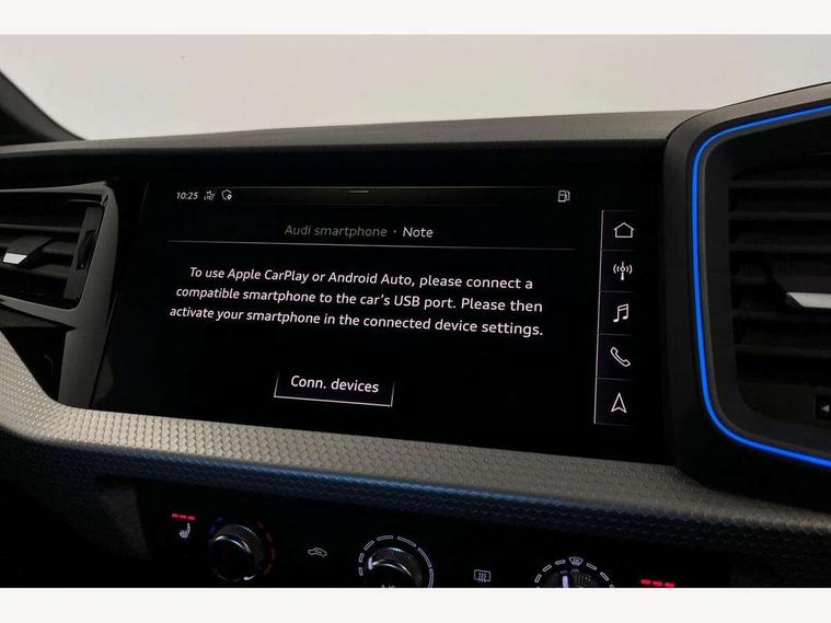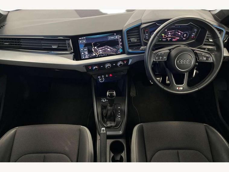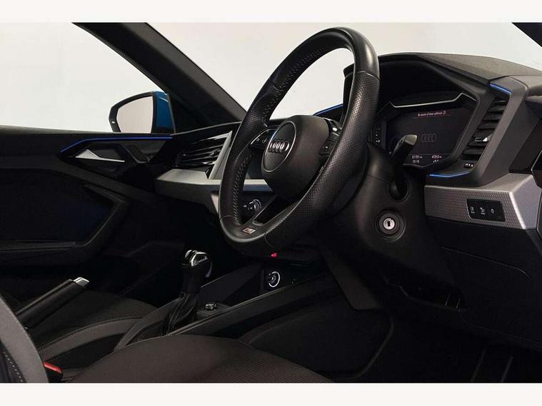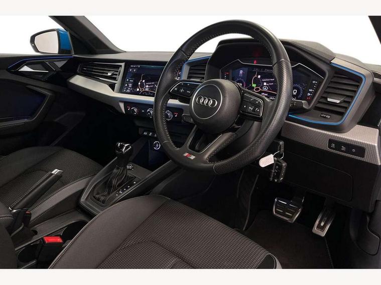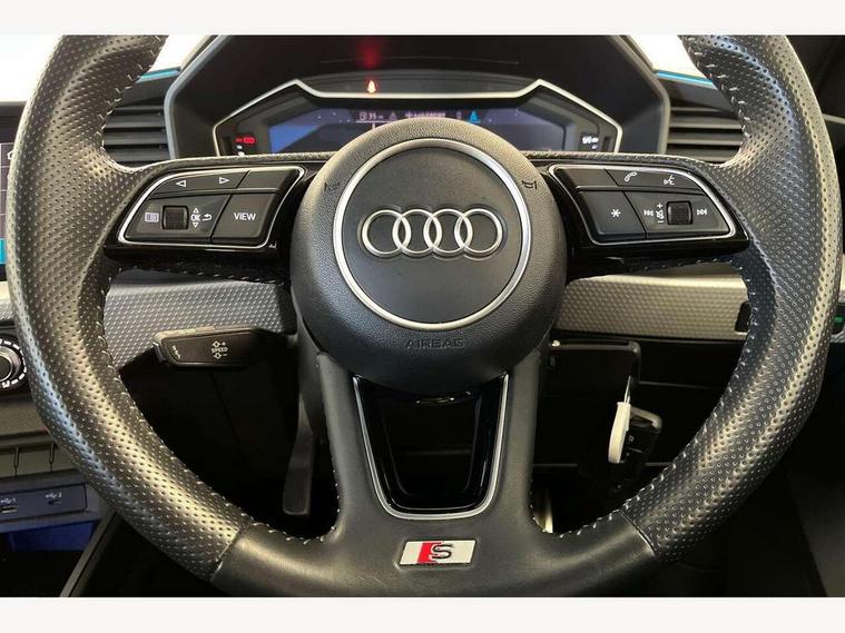 10.25" Digital instrument cluster display screen, Audi connect safety emergency and service including E-call, Audi drive select, Audi smartphone interface, Automatic start/stop system, Bluetooth interface, Driver's information system, Electromechanical power steering, Lane departure warning system, Service interval indicator, Speed limiter, Voice control system, Washer fluid level indicator, Sports suspension, 1 x SDXC card reader, 1 x USB type C and 1 USB type A charging points, Audi music interface, Bluetooth audio streaming, DAB Digital radio, MMI radio plus with 8.8" colour MMI display screen and MMI touch, Auto dimming rear view mirror, Body colour side sill mouldings, Body coloured bumpers, Body coloured door mirrors, Door sills with aluminium inlays and S Line logo, Electric front and rear windows, Front side air inlets in grained matt black and C frame in titanium black, Heat insulating glass windscreen and side windows, Heated rear windscreen, LED headlights with LED rear lights + dynamic rear indicators, Matt aluminium silver tailpipe trim, Matt black radiator grille frame, Matt platinum grey in front spoiler clip and rear diffuser clip, Rain and light sensors, Rear fog lights, Rear wiper, S line badges on front wings, S line exterior bumpers, S line roof spoiler, Side air inlet frames titanium black, Side front spoiler lips in grained matt black, 12V socket in centre console with two cup holders, 3 rear seats, Black cloth headlining, Driver and passenger seat with manual height adjust with forward and backwards adjustment, Front and rear black floor mats with contrast stitching in fine silver, Front head restraints, Height and reach adjustable steering wheel, ISOFIX child seat mounting in front passenger and rear outer seats, Leather gear knob with aluminium trim, Leatherette handbrake grip, Luggage compartment light with front and rear reading lights, Lumbar adjustment for front seats, Rear head restraints, Split folding rear seats, Stainless steel pedals, 3x3 point rear seatbelts, Audi pre-sense front with pedestrain and cyclist recognition, Brake assist function, Driver and front passenger airbag with front side and head airbags, Electronic Stability Control including ABS, EBD, ASR and EDL, Front and rear seatbelt reminder, Front passenger airbag deactivation switch, Hill hold assist, Seatbelt height adjustment for front seats, Seatbelt monitoring, Tyre pressure warning light, Warning triangle and first aid kit, Anti theft alarm, Anti theft wheel bolts and loose wheel warning, Immobiliser, Remote central locking with 2 remote folding keys, Aluminium trim for control switches, air vents and digital instrument cluster, Silver grey inlays polygon structure in diamond paint finish, Structured grey accent areas including air vents, door handle recesses and centre console in quartz paint finish,
