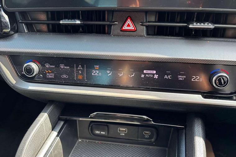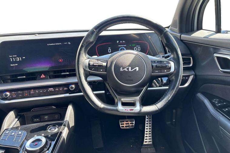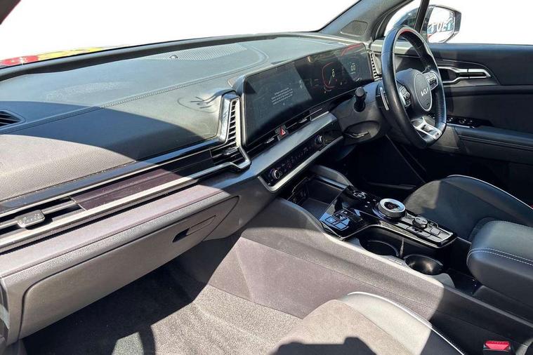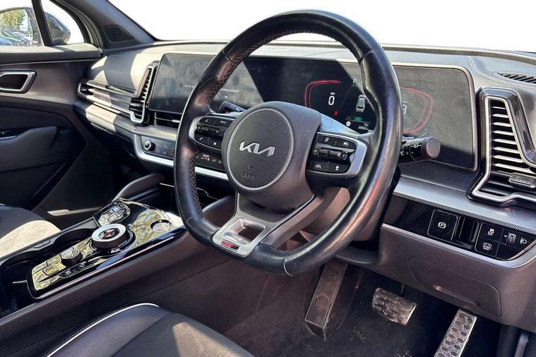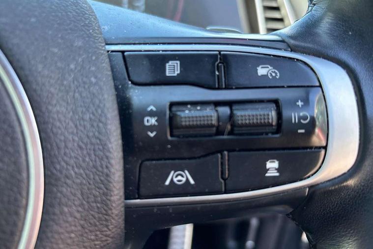 12.3" Display with navigation, 4.2" supervision colour cluster display, Apple car play/Android Auto with voice control, Drive mode selector, E-call, Forward collision avoidance assist (FCA) - city/pedestrian/cyclist/junction covering, Front and rear parking sensors, Highway Driving Assist (HDA), Intelligent speed limit assist, Kia Connect (UVO), Lane Following Assist (LFA), Lane keep assist, Low washer fluid warning, Rear view monitor, Reversing camera system integrated into centre fascia screen, Smart cruise control with stop and go functionality, Speed sensitive power steering, Trip computer, Windscreen washer level indicator, Intelligent Stop and Go, 6 speaker audio system, Bluetooth audio streaming, DAB Radio with MP3, Rear USB port, Steering wheel mounted audio controls, USB C type charging ports on centre console, USB C type charging ports on side of front seats, USB port for connection of a media device, All round electric windows with drivers and front passenger auto up/down function, Automatic headlight control system, Automatic window defogger, Backlite glass heated with timer, Body colour and black bumper with silver accents, Body colour exterior door handles, Body colour radiator upper garnish and door garnish, Electrically adjustable/heated/folding door mirrors with LED indicators, Front and rear chrome skid plates, Gloss black door mirrors, Gloss black radiator grille, Gloss black side sill and wheel arch body mouldings, Glossy black roof rack, High beam assist, Interior electrochromic mirror, LED daytime running lights, LED front fog lamps, LED headlamps (low and high beam - MFR type), LED High mounted stop light, LED rear combination lamp, Rain sensing wipers with aero blades, Rear fog lamp, Rear privacy glass, Rear side wing doors, Rear spoiler, Rear wiper, Satin finished beltline, Silver coloured inserts to bumpers, Tinted rear glass, Trailer stability assist, 12V power socket in front centre fascia and luggage compartment, 2nd row personal lamps, 3 seat bench in 2nd row, 3 x passenger assist grips, 40/20/40 split folding rear seat, All-round height adjustable headrests, Black headlining, Centre console storage box, Cupholders in rear armrest, D-Shaped sports leather steering wheel and perforated inserts with GT-Line logo, Door courtesy lamps, Drink holder at centre armrest, Driver and front passenger side sunvisors with illuminated vanity mirrors, Driver's seat manual height adjust, Drivers seat power lumbar support, Front and rear door storage, Front seat and rear pockets, Front/rear centre armrests, Gear shift indicator, Glovebox illumination, Heated front seats, Heated steering wheel, Interior door lock/unlock function, ISOFIX Child seat top tethers and anchor fixings outer rear seats, Luggage area light, Luggage area load cover, Luggage net with hooks, Metal paint interior door handles, Overhead console lamp, Paddle shift controls, Rear cabin light, Rear coat hooks, Single front passenger seat, Sports pedals, Suede leather upholstery, Three zone climate control, Tilt/telescopic adjustable steering wheel, Ventilation ducts to rear compartment, Active front headrests, All round 3-point seatbelts, Anti-lock braking system (ABS), Dual front side airbags, Dual horn, Electronic parking brake, Electronic stability control with downhill brake control, Front passenger airbag cut-off switch, Front seatbelt pretensioners + load limiters, Height adjustable front seatbelts, Hill start assist control (HAC), Impact sensing auto door unlocking, Multi collision brake assist, Rear door child safety locks, Rear seat alert system, Traction control, Twin curtain airbags, Twin front airbags, Tyre pressure monitoring system, Advanced anti-theft system including immobiliser and alarm, Door deadlocks, Engine Start/Stop Button with Smart Entry System, Locking wheel nuts, Speed sensitive auto door locking, Visible vehicle identification number, Aluminium pattern finish centre fascia and door garnish, 18" GT-Line alloy wheels, Tyre mobility kit,